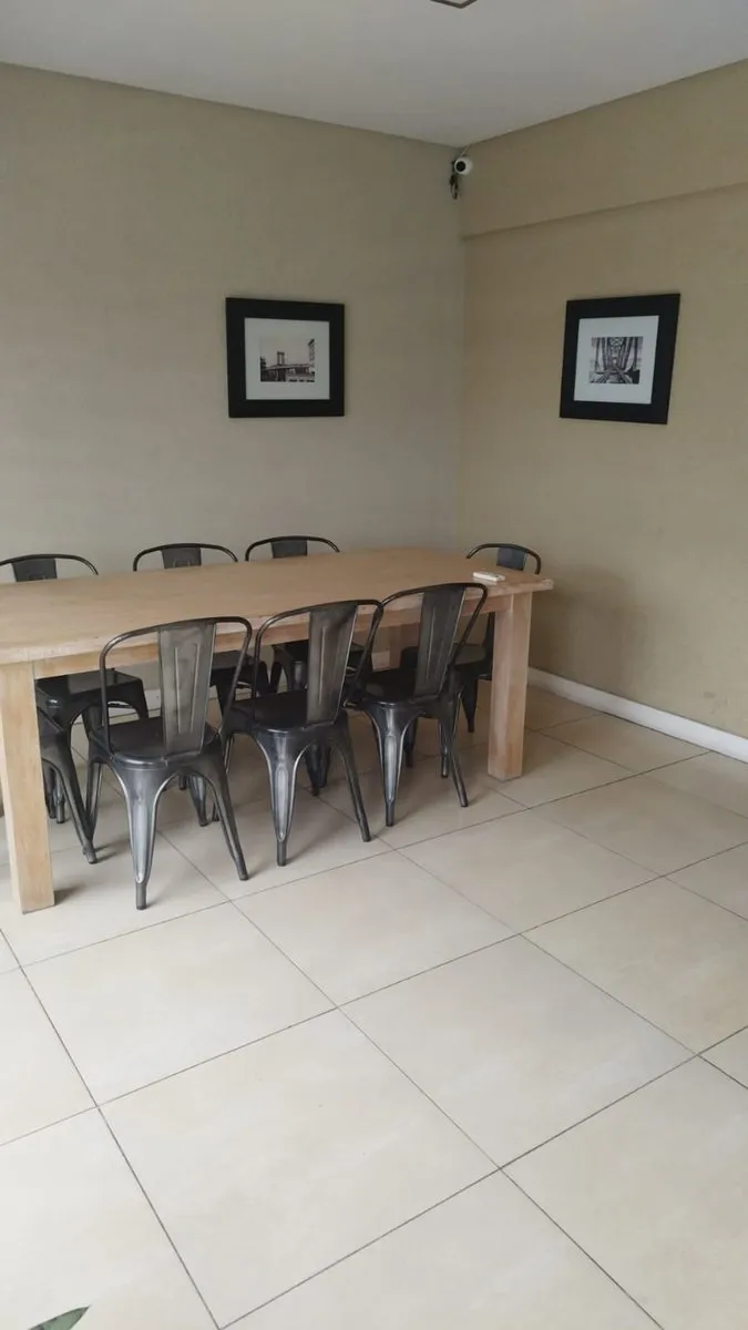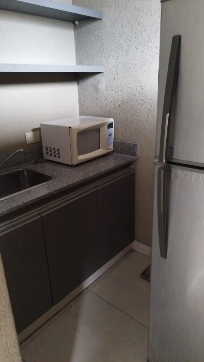 Furnished studio apartment in Saavedra on Av. Cabildo, west-facing. 31 m² total, located on the 4th floor of a 12-storey building built in 2016, with 28 m² covered and 3 m² semi-covered. The unit has a combined living-dining area with an equipped kitchen (fridge, electric oven, microwave, coffee maker, blender, kettle and toaster), a double bed, smart TV and air conditioning (cold-heat). The building includes laundry and a communal room on the upper floor, and the rental includes an assigned par