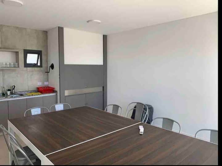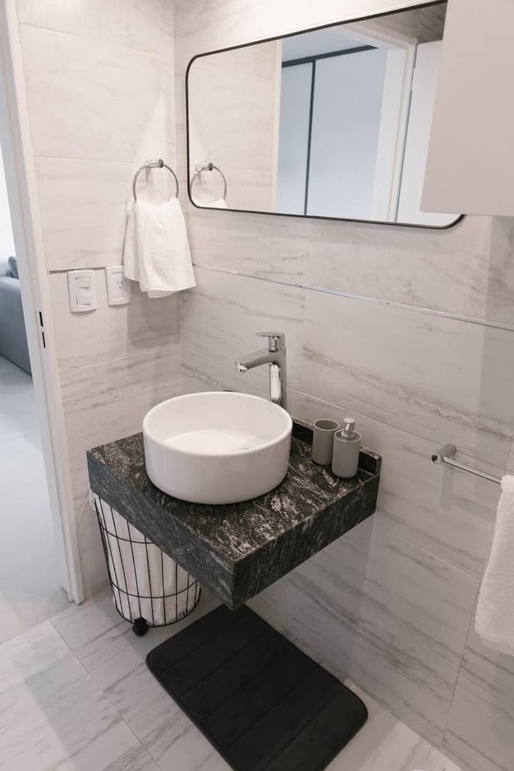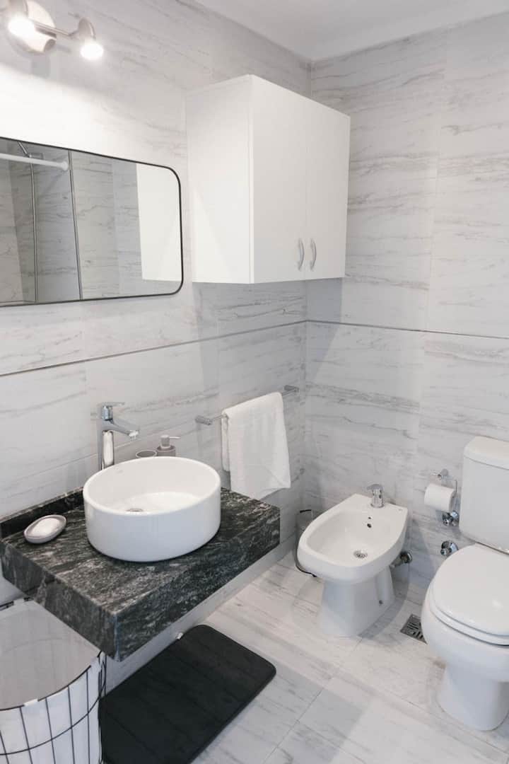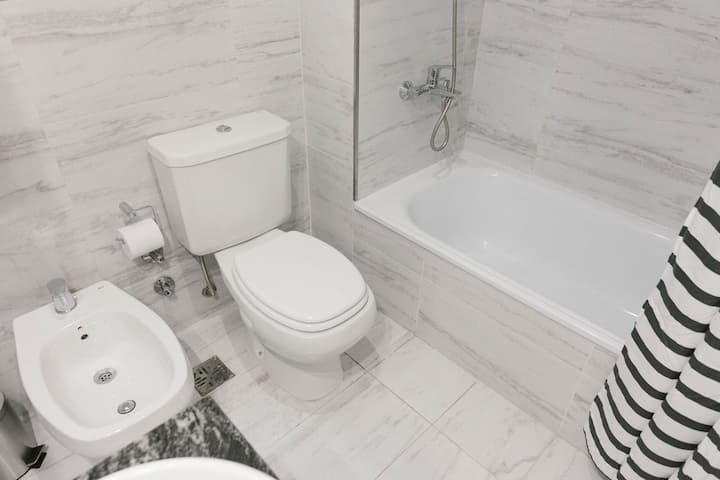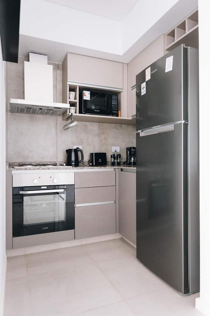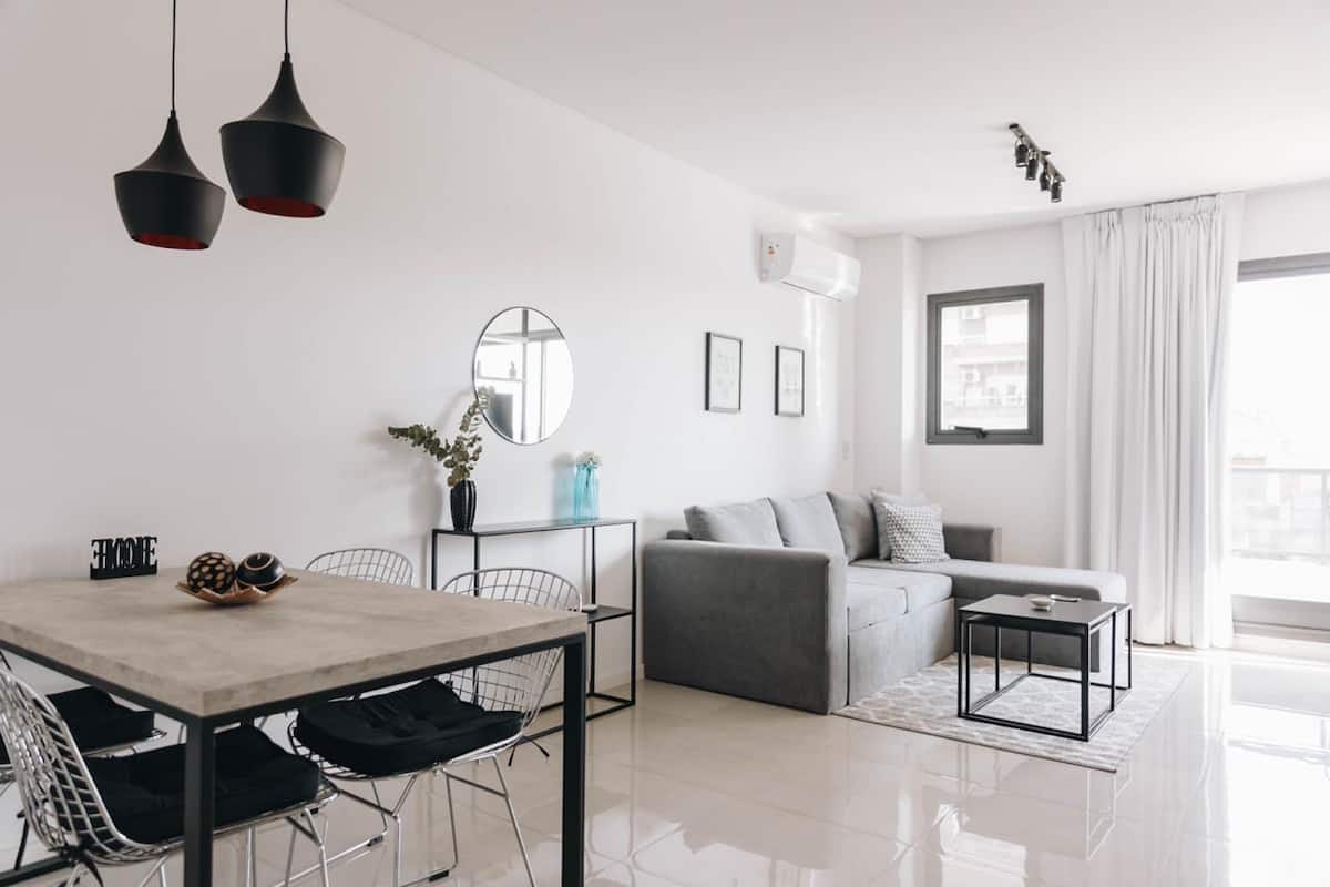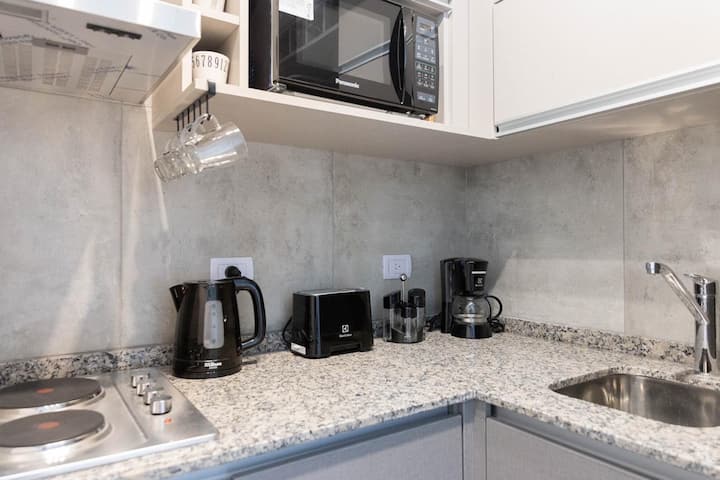Furnished studio apartment with a balcony. It has air conditioning (cold/heat), HD TV/cable and Wi-Fi, and is equipped for up to 4 people with a two-seater sofa bed and a separate sofa bed for 2. Building amenities include a solarium, gym, grill with prior reservation and an additional cost, a meeting room and a laundry area where wash and dry are available with tokens (additional cost, subject to consultation).