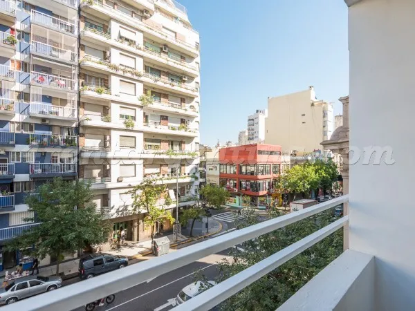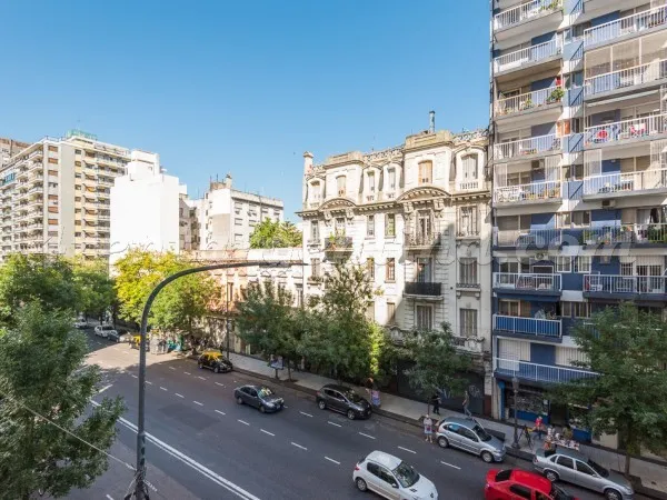 Furnished studio apartment for 3 people in Congreso, a few blocks from Facultad de Ciencias Sociales de la UBA. The unit has a double bed and a single sofa bed, a shower bathroom, and an integrated kitchen with electric hotplate (anafe) and electric oven. It includes air conditioning (cooling) and electric heating, a small front-facing balcony, Wi-Fi, cable TV, and appliances including a fridge with freezer and a microwave. Building services include a lift and stairs; pets are not allowed. The r