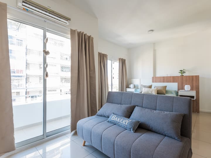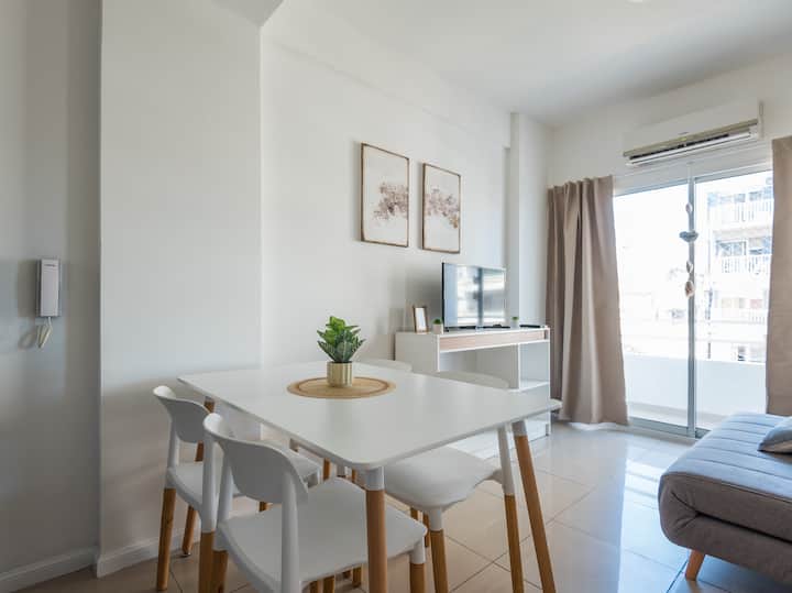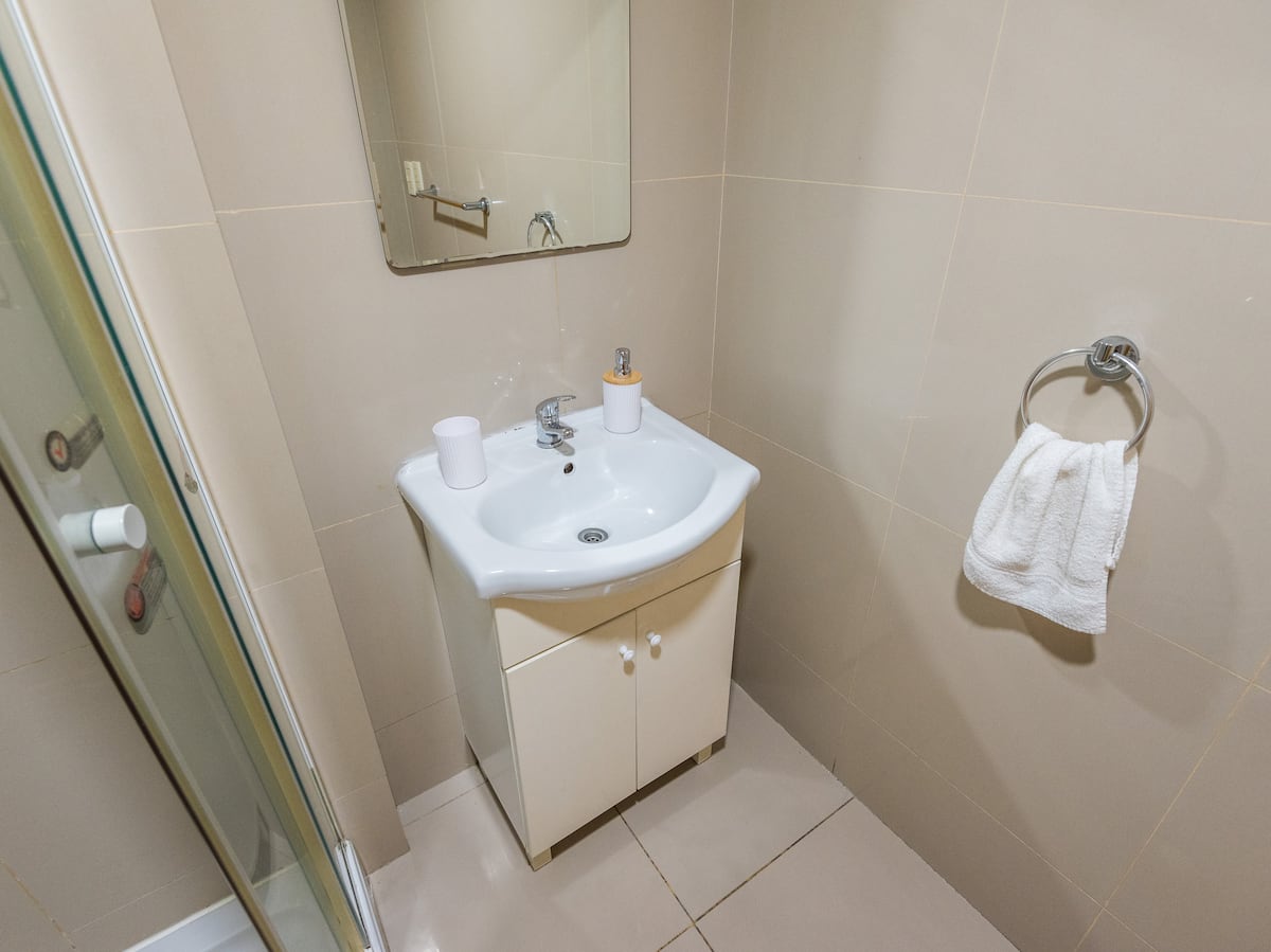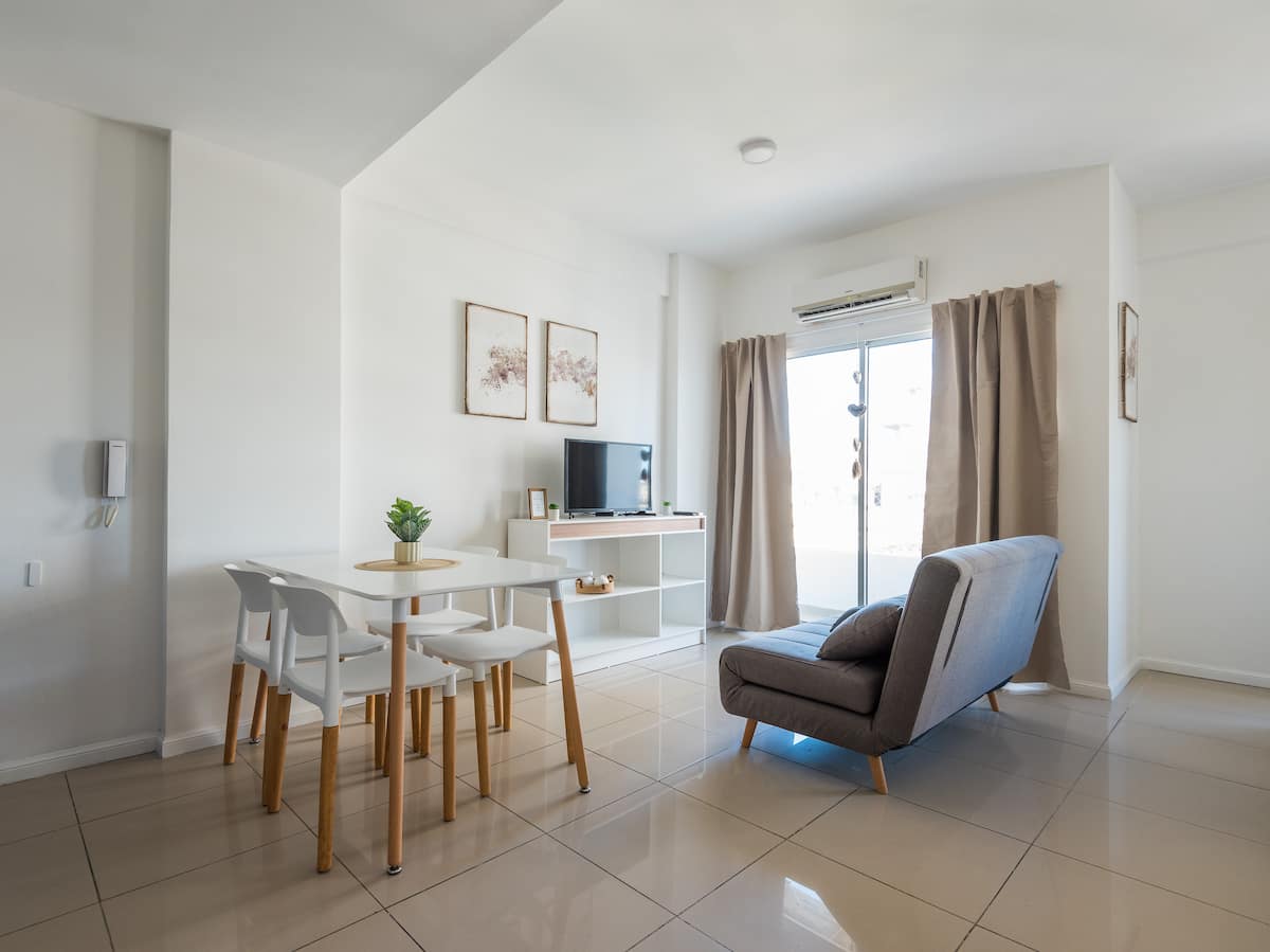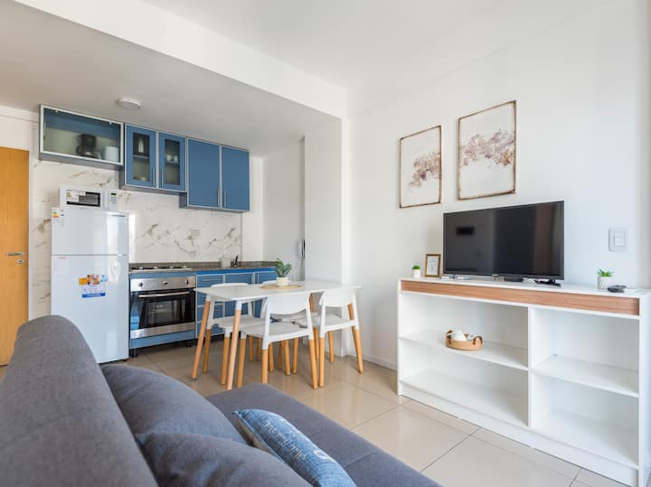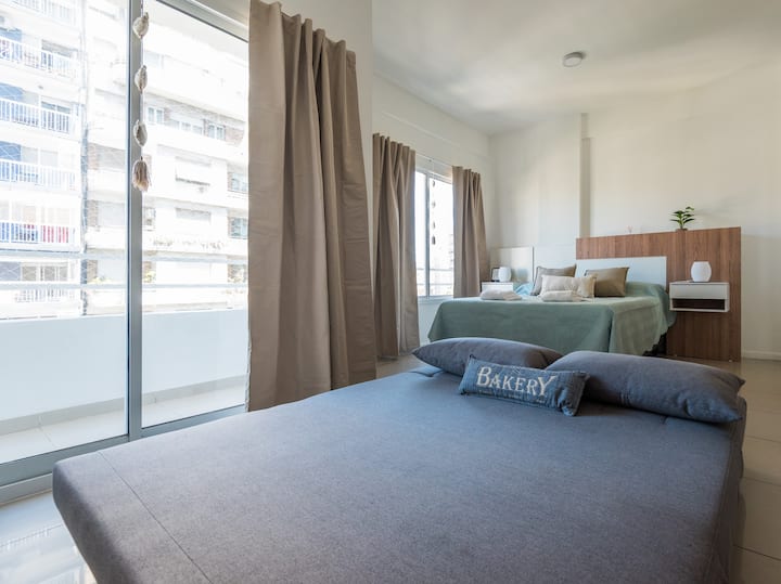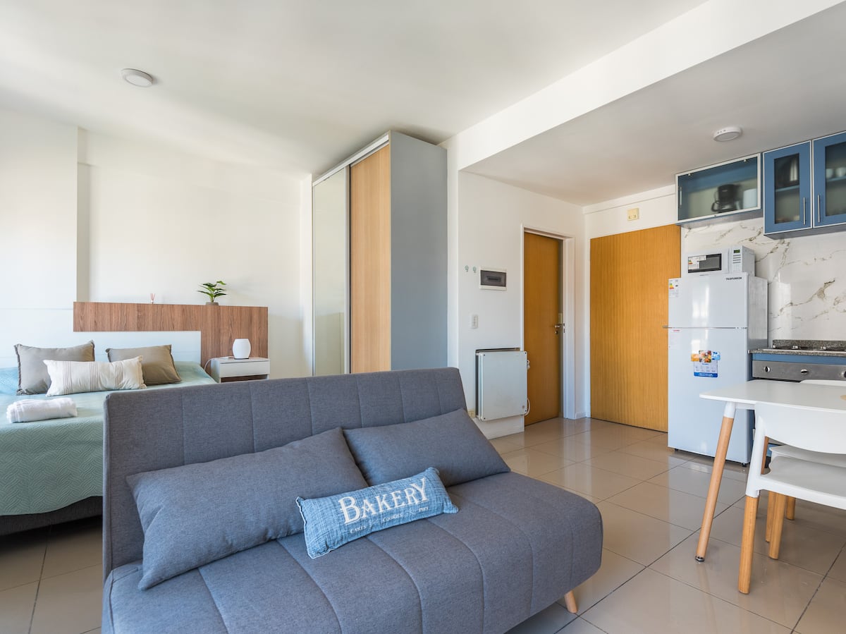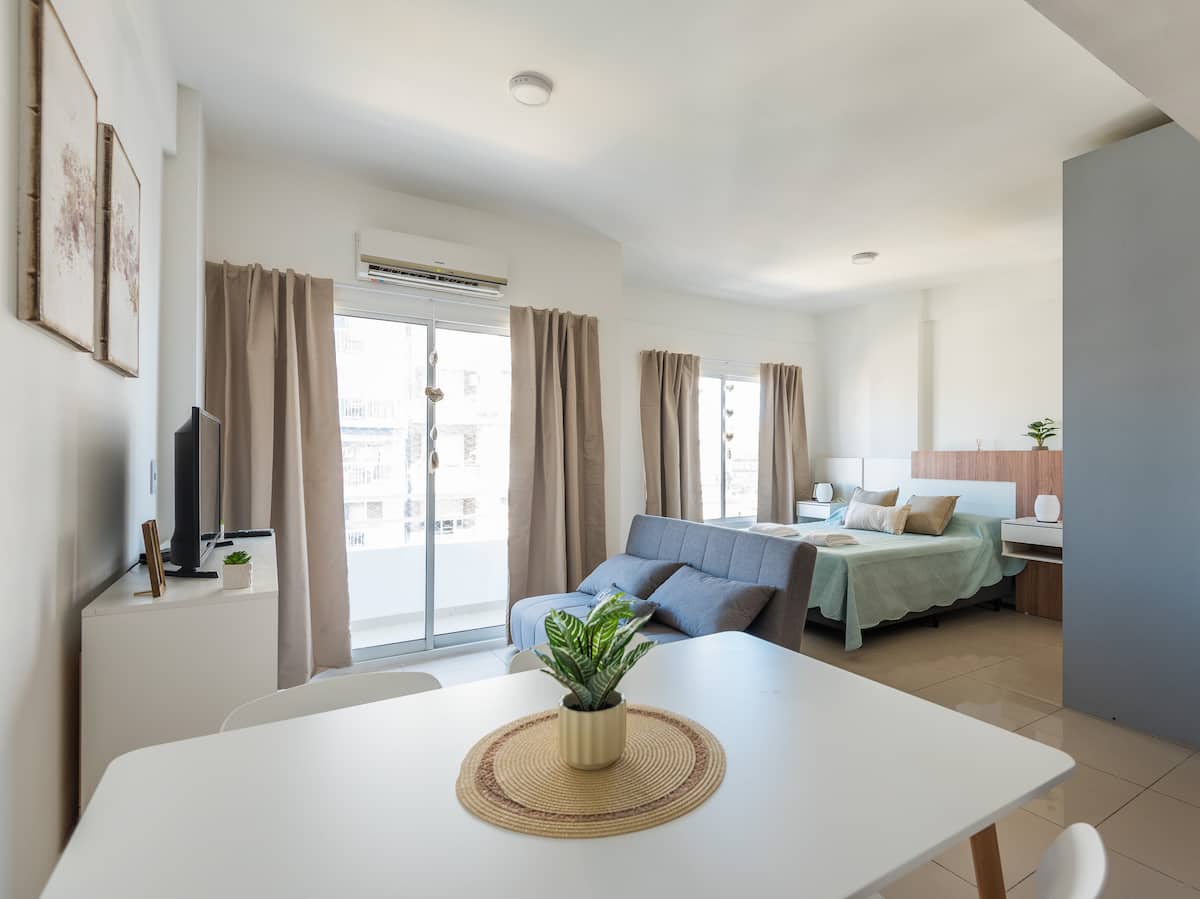Studio apartment in San Cristóbal with a balcony. Equipped with air conditioning (cold), electric heating, refrigerator with freezer, electric oven, microwave, toaster, coffeemaker, and an electric cooker. Amenities include a Smart TV, Wi-Fi internet, hairdryer, shower, iron, and ironing facilities. Elevator and stairs are available in the building.
