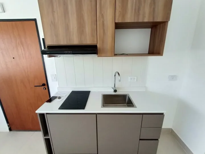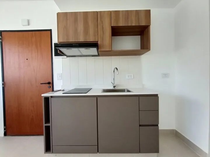 Studio apartment, brand new. Porcelain-tile flooring and an integrated kitchen with wall cabinets and base units. Electric hotplate with central hot water, space for a wardrobe, and a bathroom with an anteroom. The lease is for two years, with a quarterly rent increase based on IPC.