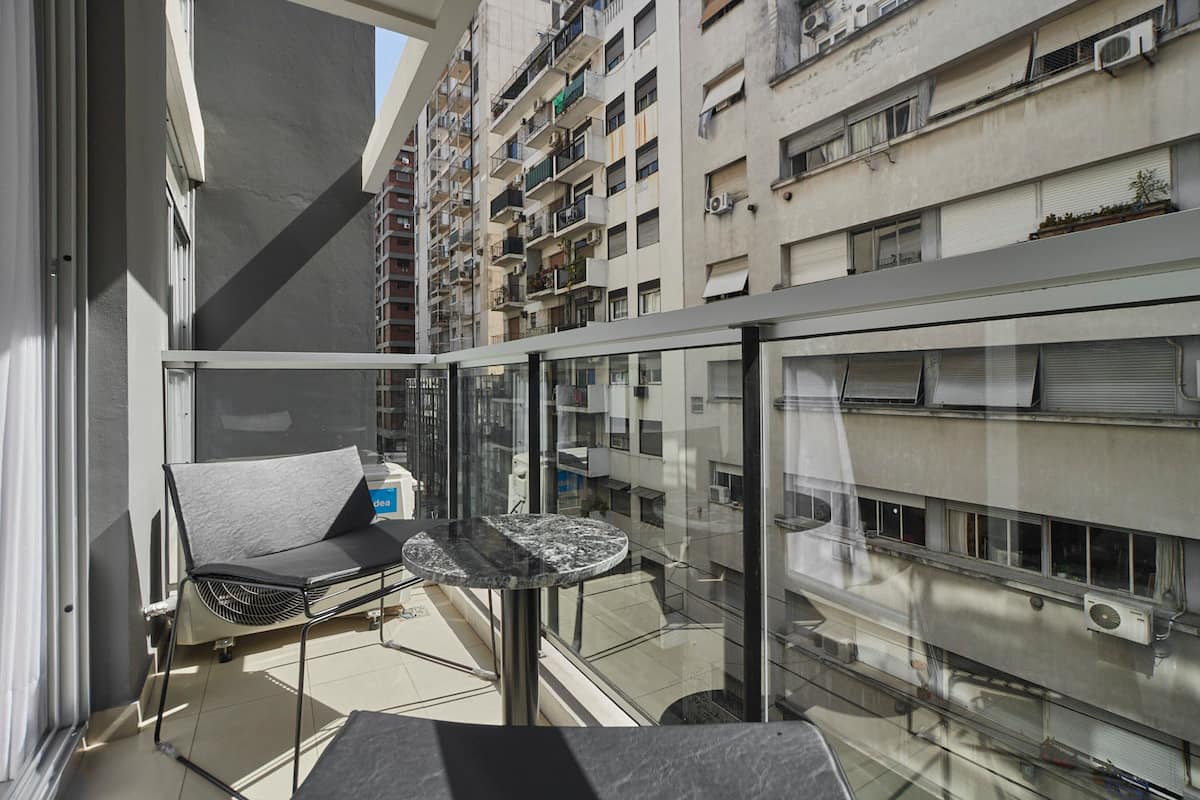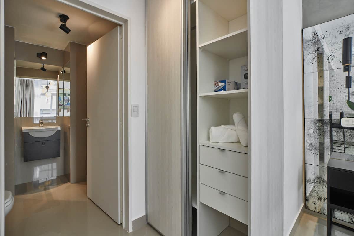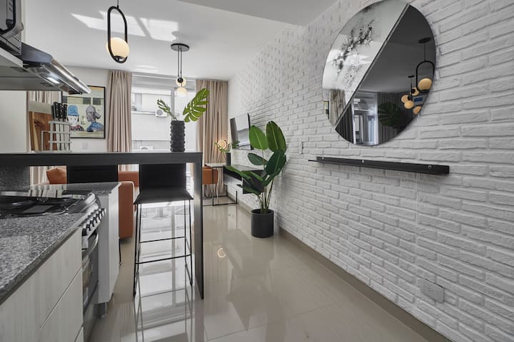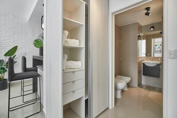 Studio apartment in San Nicolás. No-contact check-in, high-speed WiFi, Nespresso coffee and tea, 24/7 residents’ free laundry, and luggage storage in the building. Building amenities include a pool and solarium, with access via a QR code and a personalised apartment entry code.
