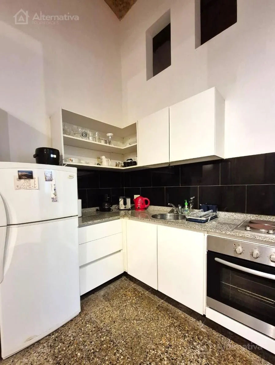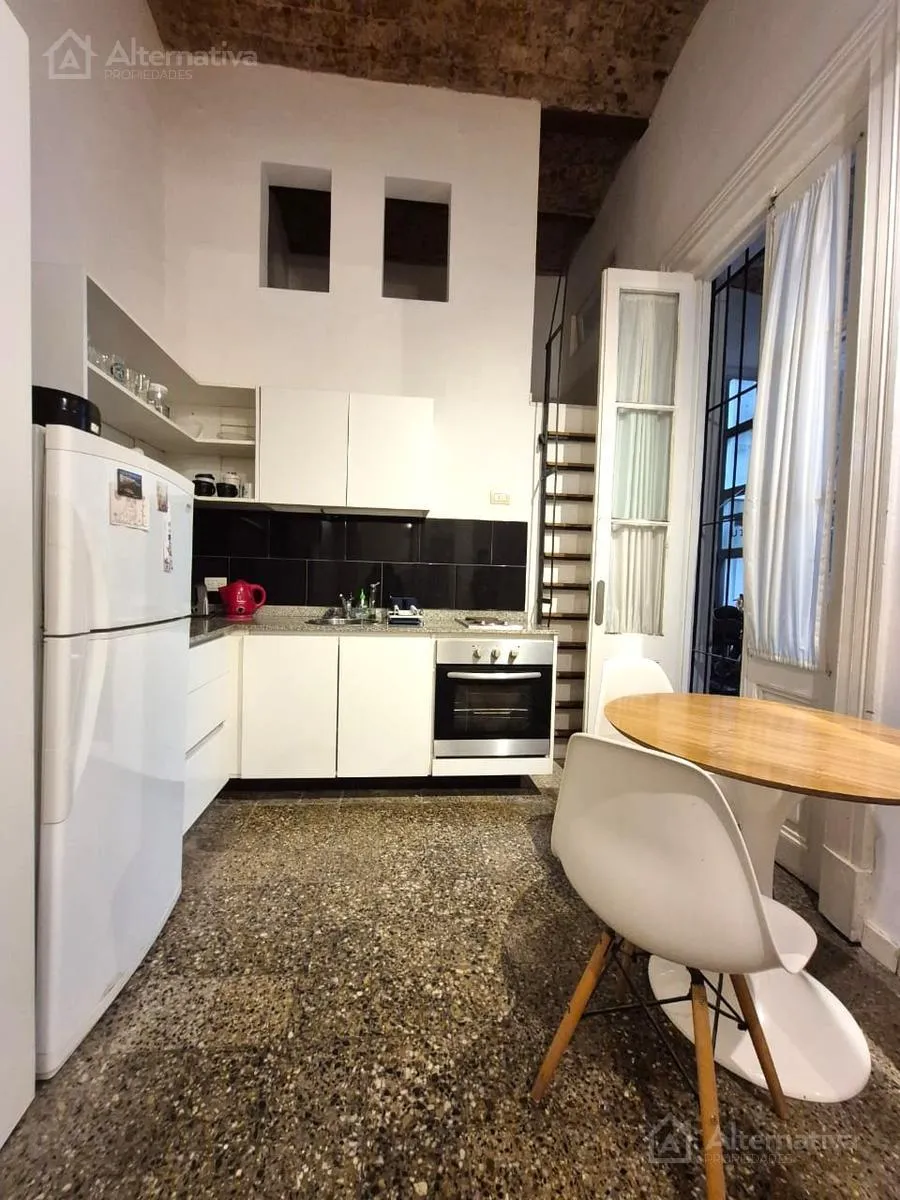 Studio apartment in San Telmo, fully refurbished. Includes a fully equipped kitchen with modern appliances, a dedicated desk area, a washer and a full bathroom. Rentals require a minimum of 3 months, up to 12 months, with renewal available. Building fees and services are included, with electricity capped, and it is delivered with bed linen and towels. Not suitable for pets.