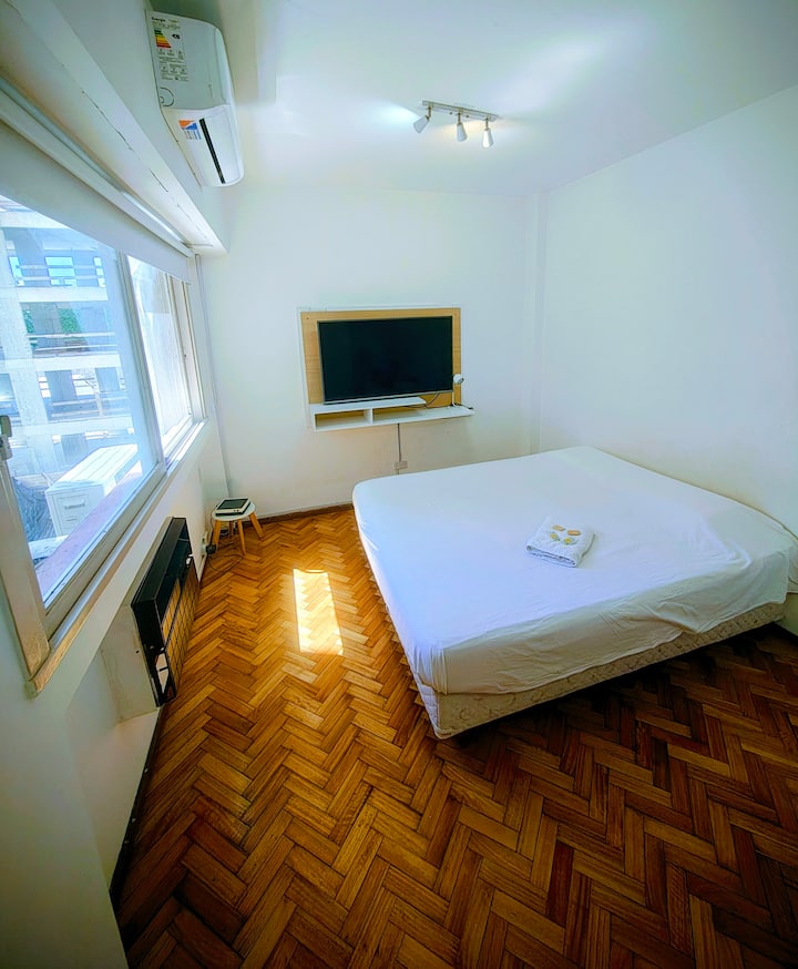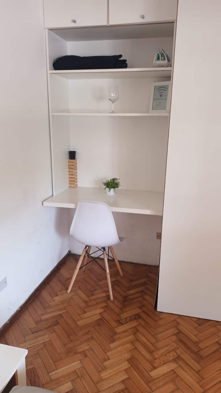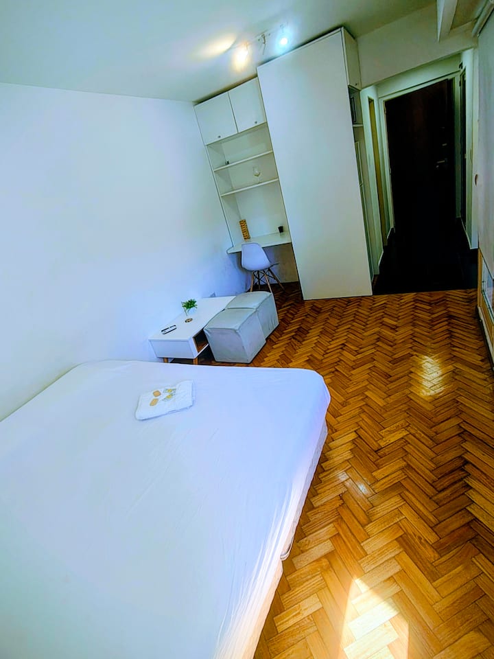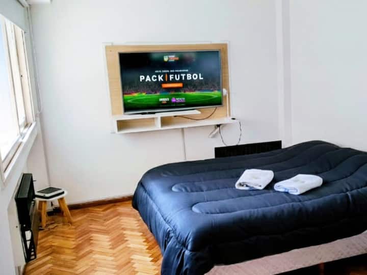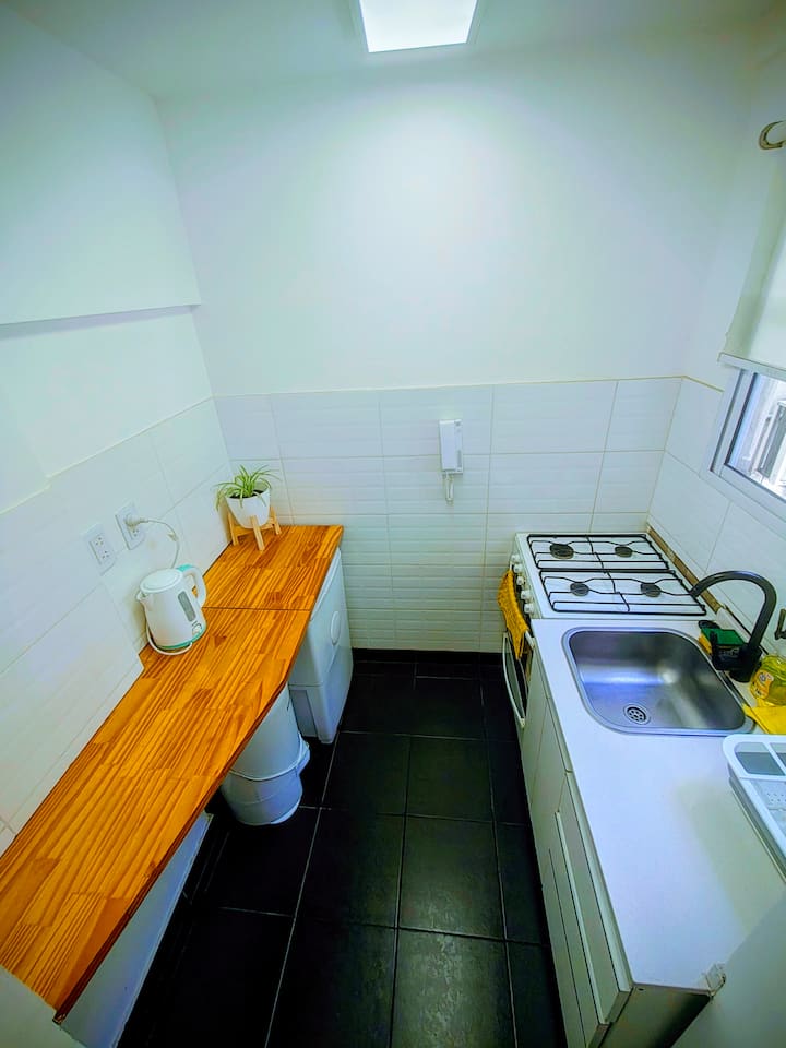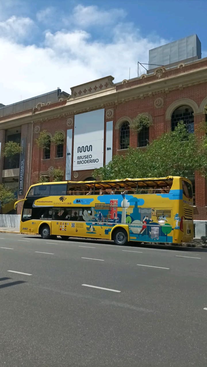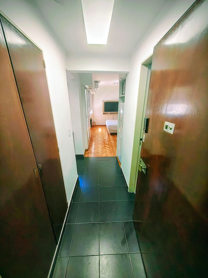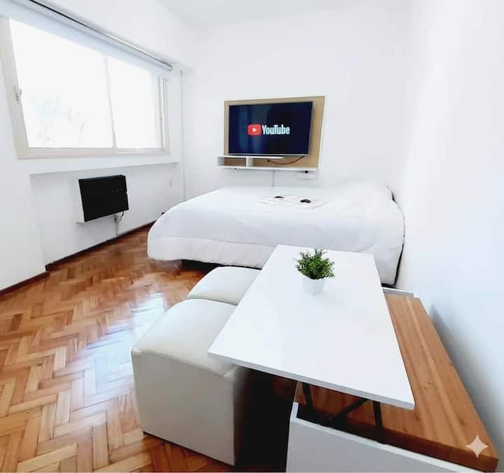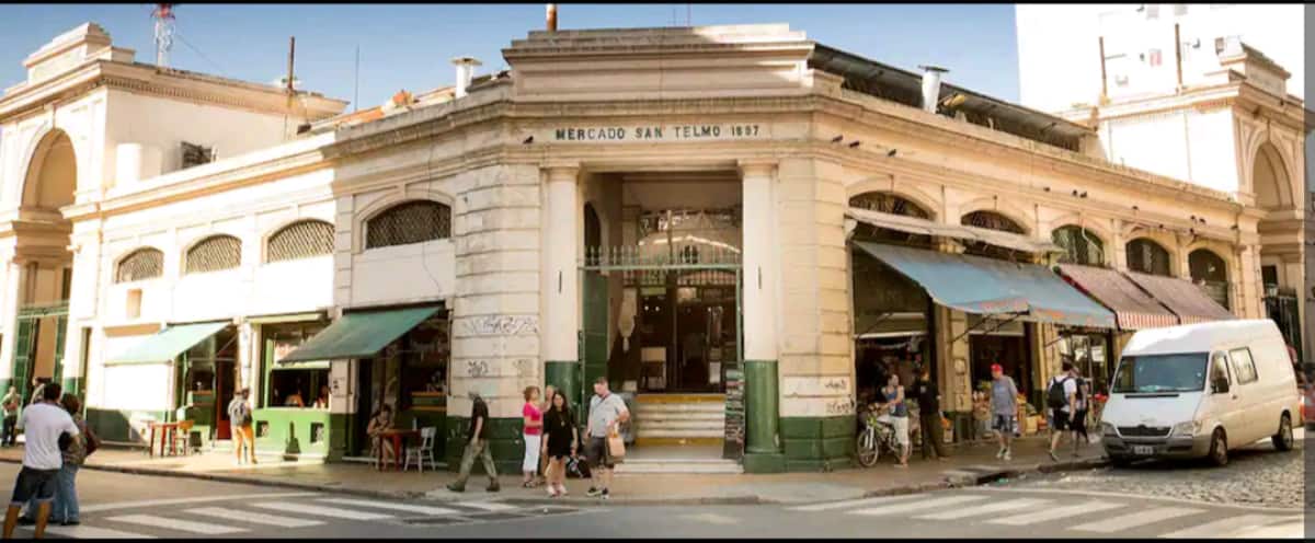 Studio apartment in San Telmo with self check-in. Includes fast WiFi, Smart TV, air conditioning, a full kitchen, and a bathroom with hot water 24 hours a day. Within walking distance of San Telmo Market, Plaza Dorrego, Puerto Madero, Boulevard Caseros, and the Paseo de la Historieta, in the Historic Center.