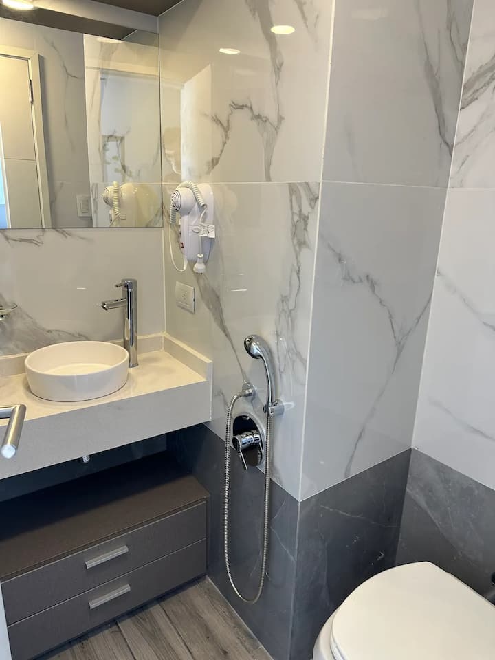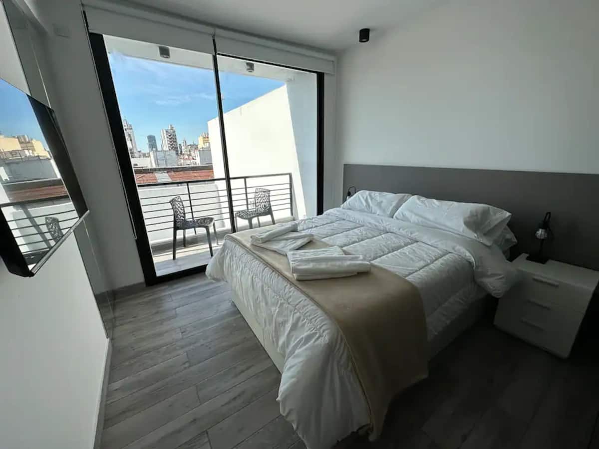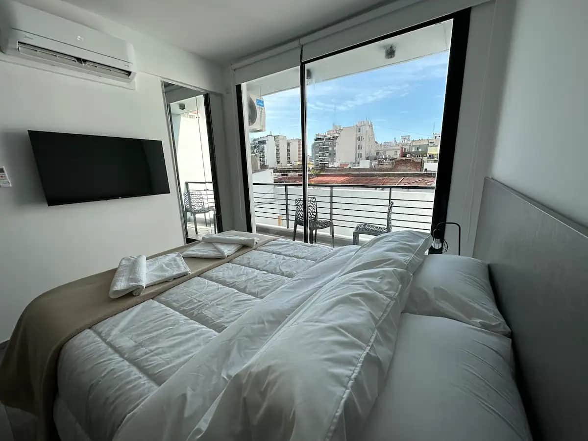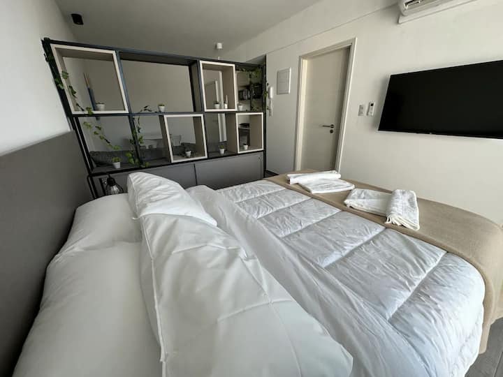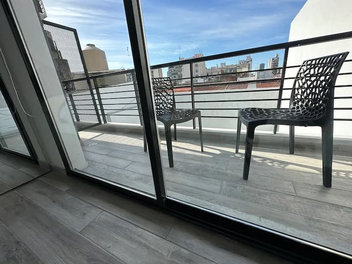 Studio apartment in San Telmo with capacity for 4 guests. Includes a queen-size bed and a sofa bed for 2, cold-heat air conditioning, full crockery, fast Wi-Fi, cable, a Smart TV and a dining table. There is a garage less than half a block away.