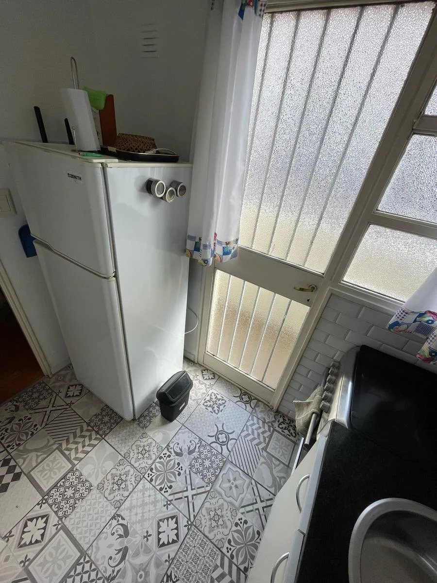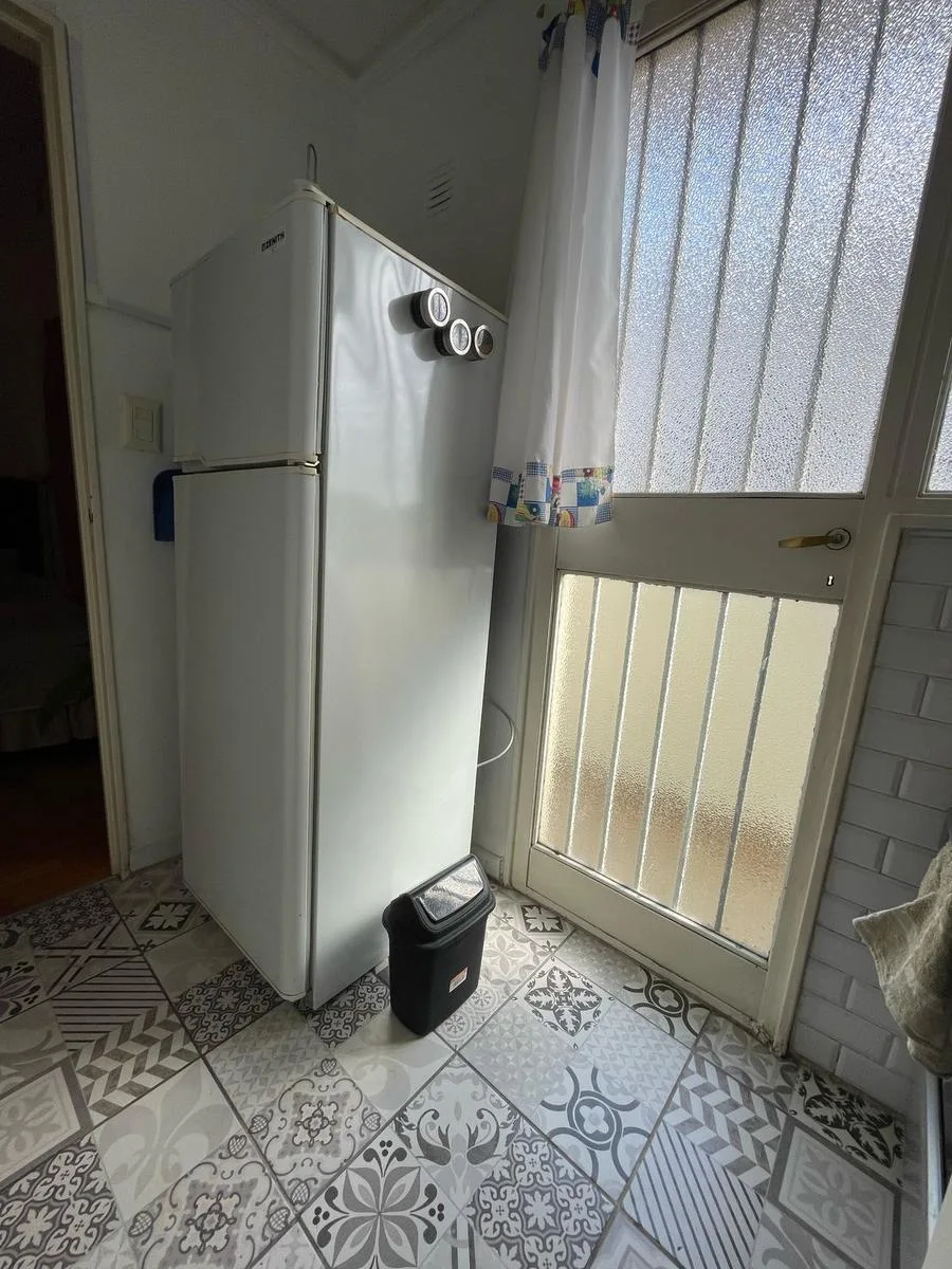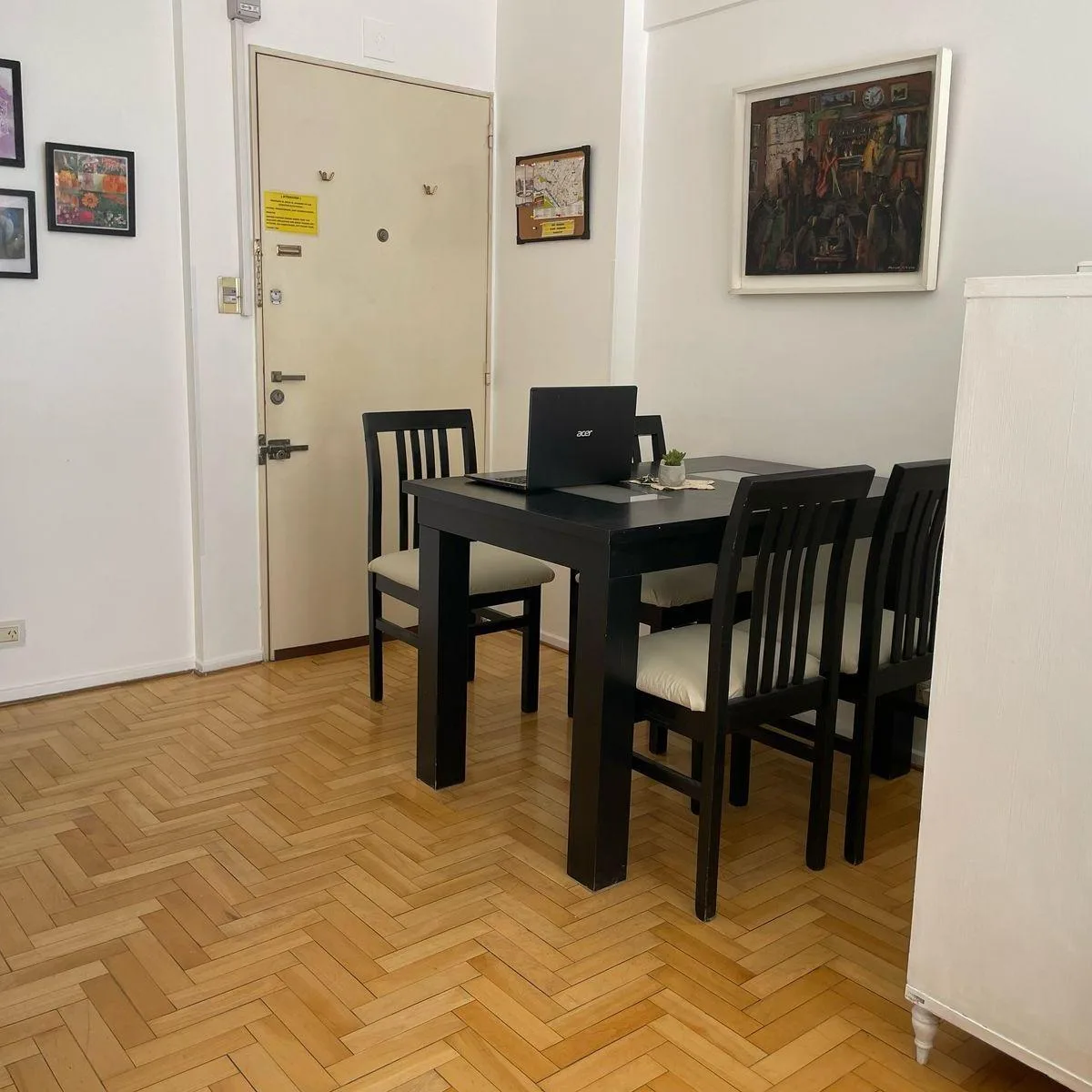 Studio apartment in San Telmo. It has a balcony with a laundry trough, a fully equipped kitchen (electric cooking appliances, coffee maker, toaster, microwave, cookware and a full set of dishes), and two single beds that can be joined to form a double bed. It also includes TV antenna, air conditioning (hot and cold), and high-speed internet. The listing states that building services are not included in the monthly amount; an additional ARS 220,000 is charged monthly and adjusted at move-in.