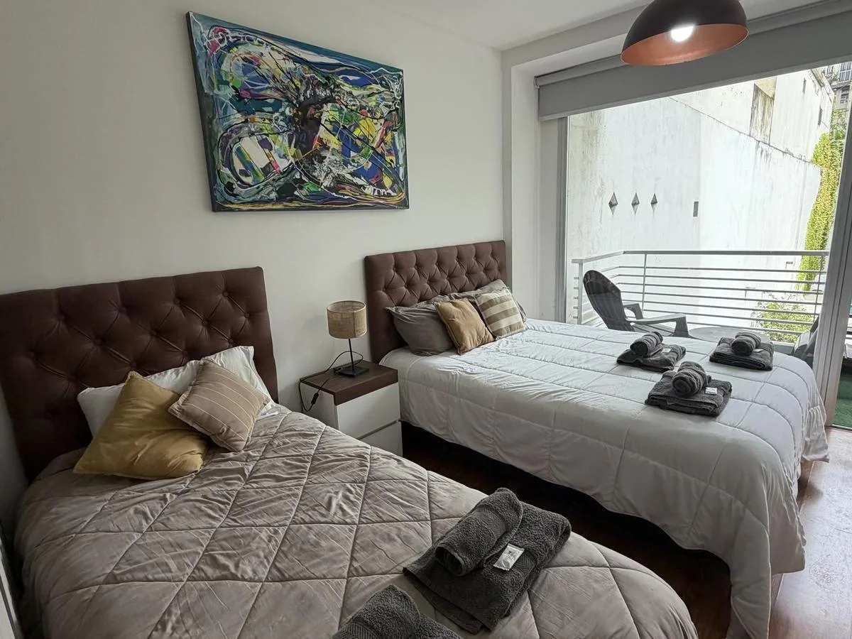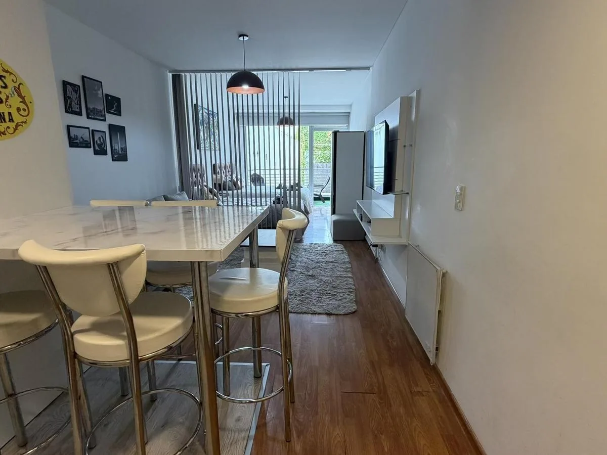 Furnished studio apartment in San Telmo, on the 1st floor, unit D, courtyard-facing. 40 m² covered, with a full bathroom and a balcony. Equipped kitchen includes a microwave, fridge and dishwasher; individual air conditioning, cable TV and WiFi are available. The building has a uncovered pool, grill area, laundry facilities, electric gates and two elevators, and offers an assigned parking space. Building fees (expensas) are not required.