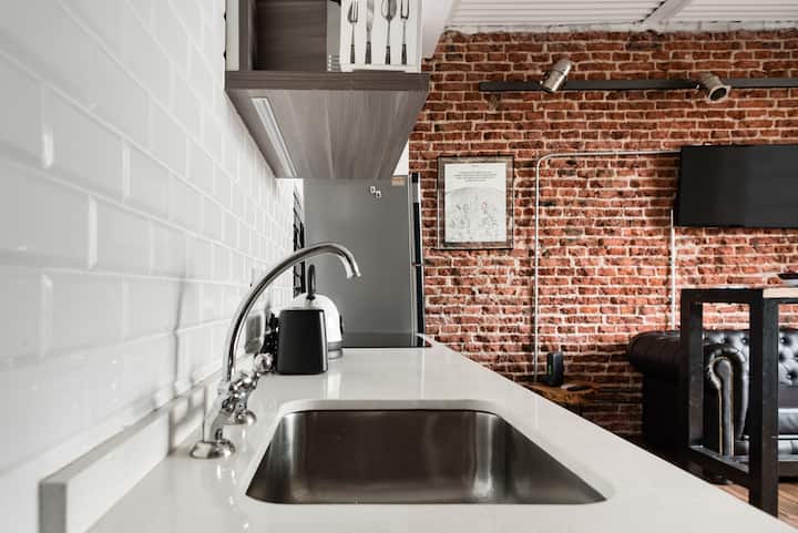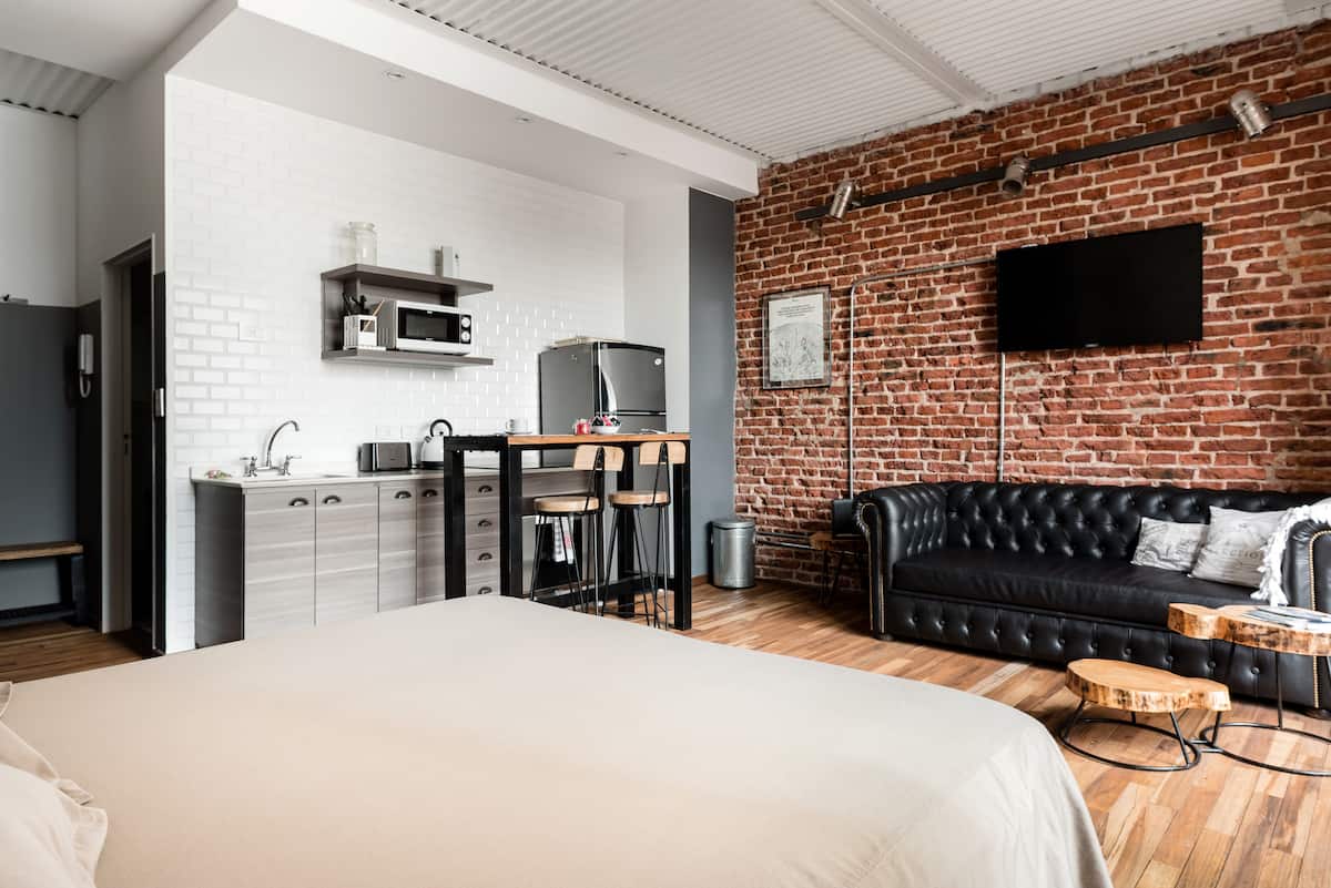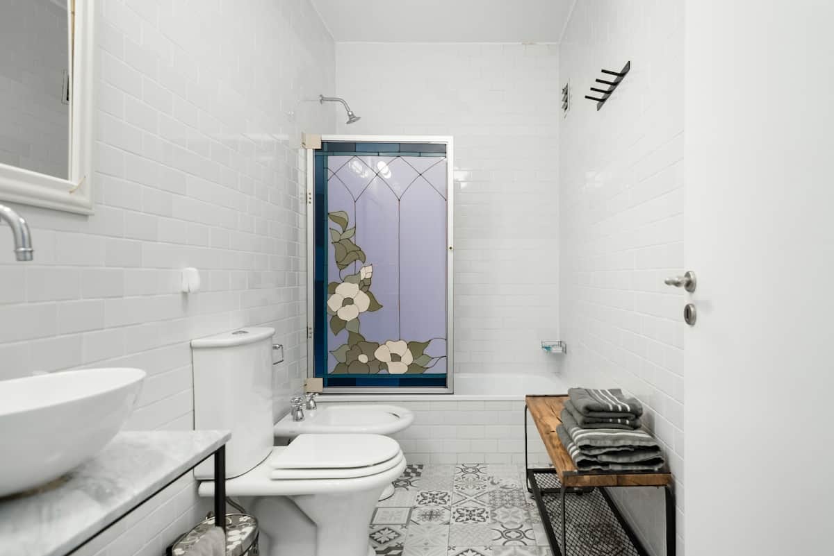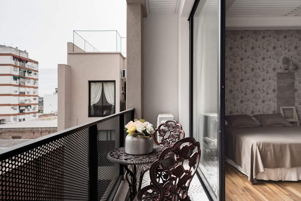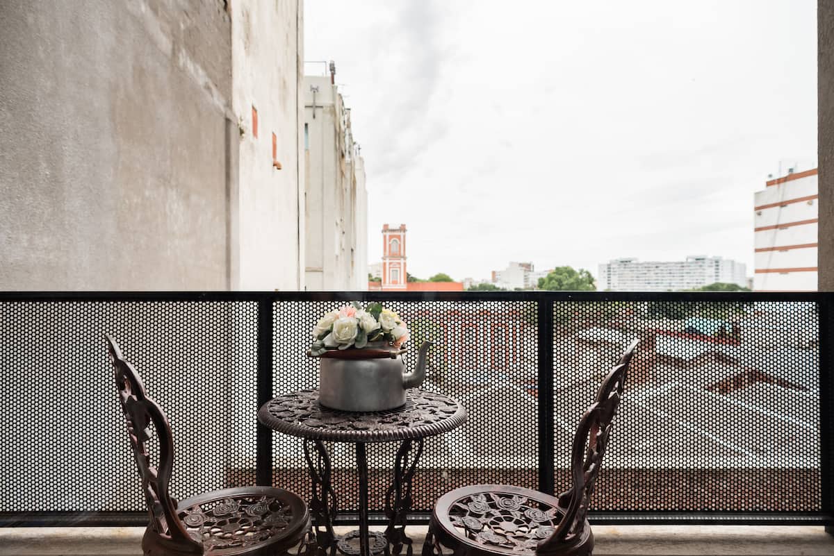 Studio apartment in a new building on Boulevard Caseros, in San Telmo. Fully furnished; an X-Queen bed can be converted into 2 single beds, with a sofa that allows for accommodation of a child, and a baby crib available if needed. The apartment includes WiFi and cable. The building has a terrace grill area, an outdoor pool and a laundry room.