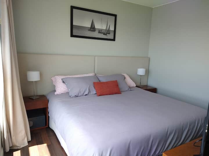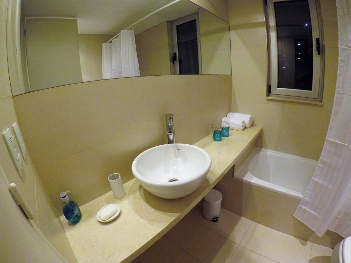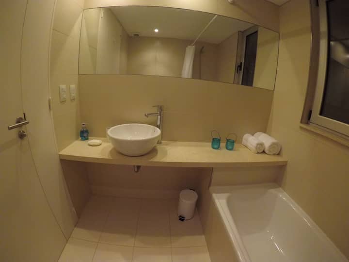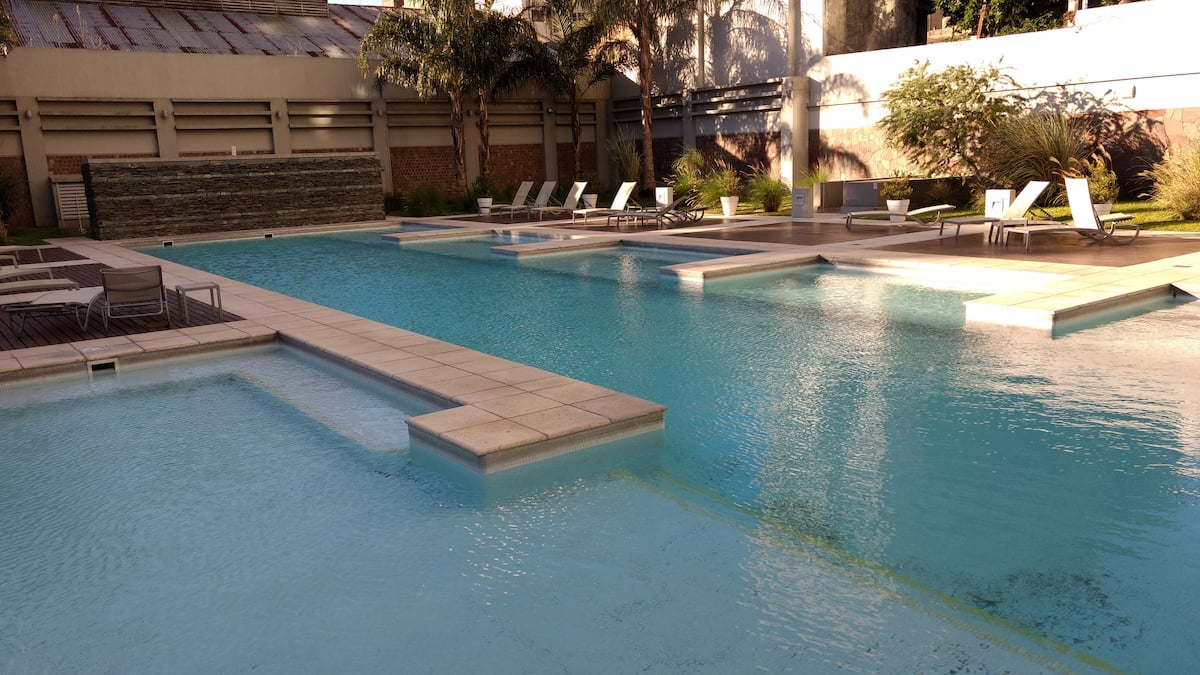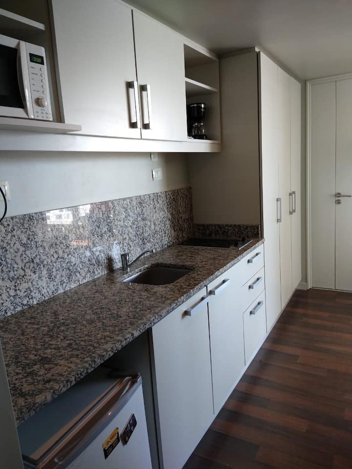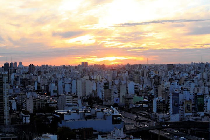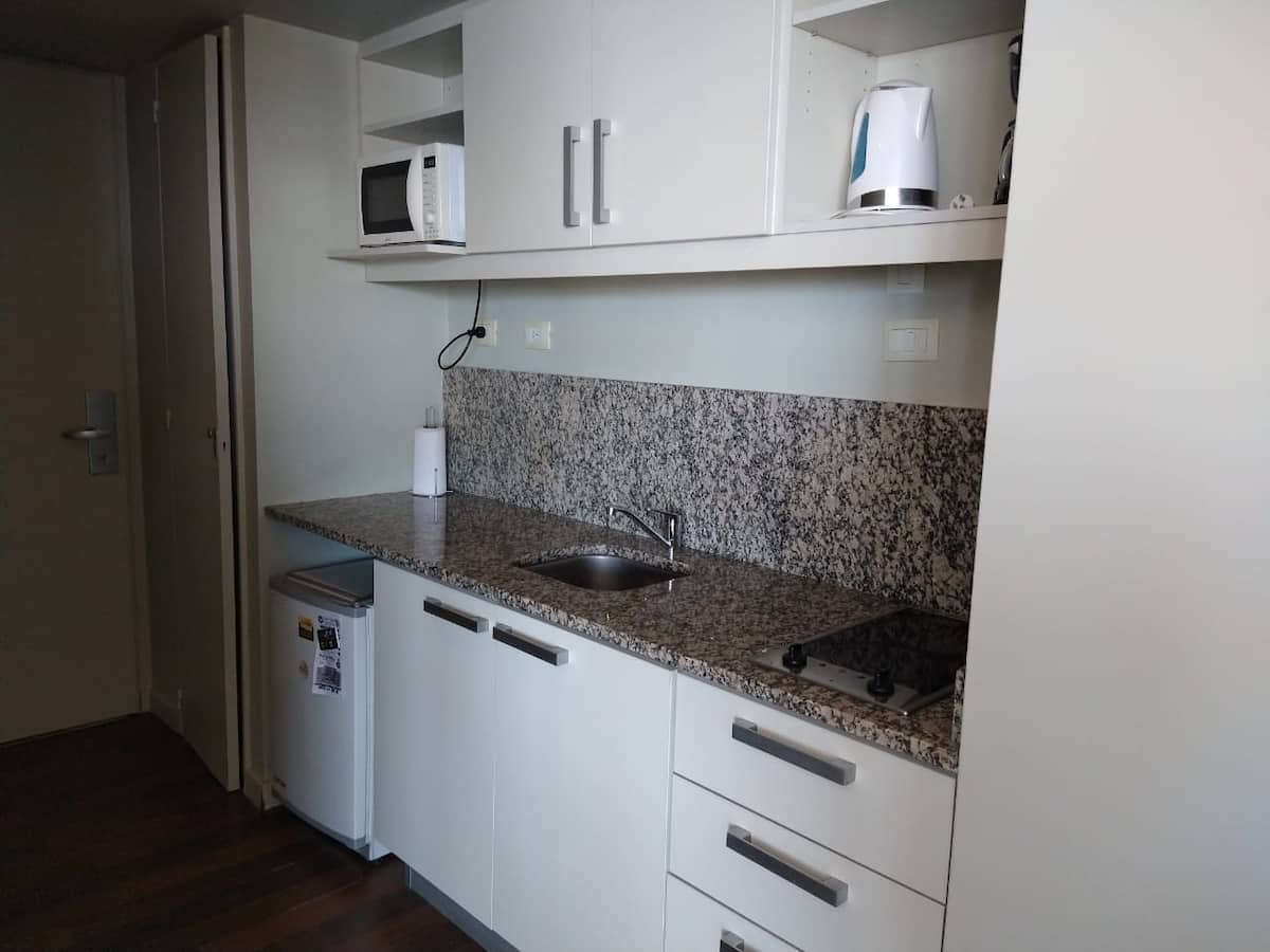 Studio apartment on the 15th floor in the Quartier San Telmo building, recently painted and fully equipped. Includes a king-size bed and a couch that can be used as a bed for one, plus a 43-inch Android smart TV and 300 Mbps WiFi. Air conditioning (cool/heat). Views from the apartment face the Puerto Madero buildings, and on clear days the river is visible. The building offers 2 pools, residents’ lounges, a gym, and 24-hour security, with 360-degree views from the 27th floor.