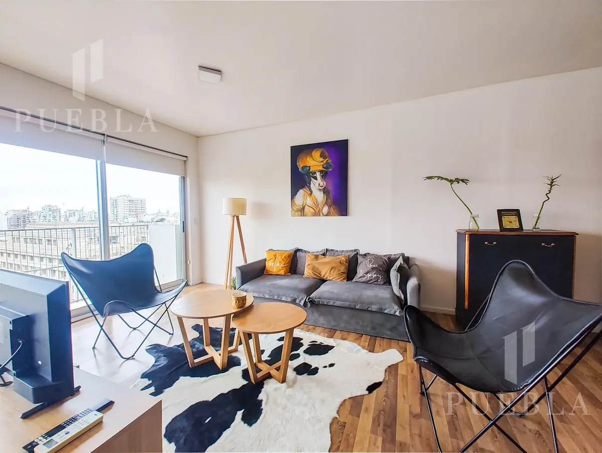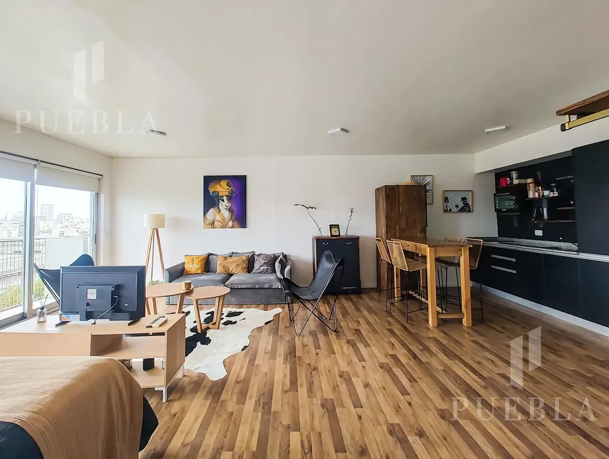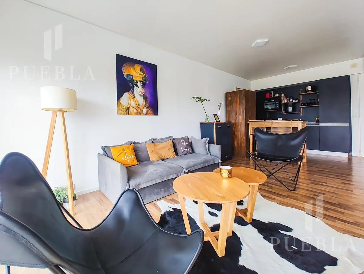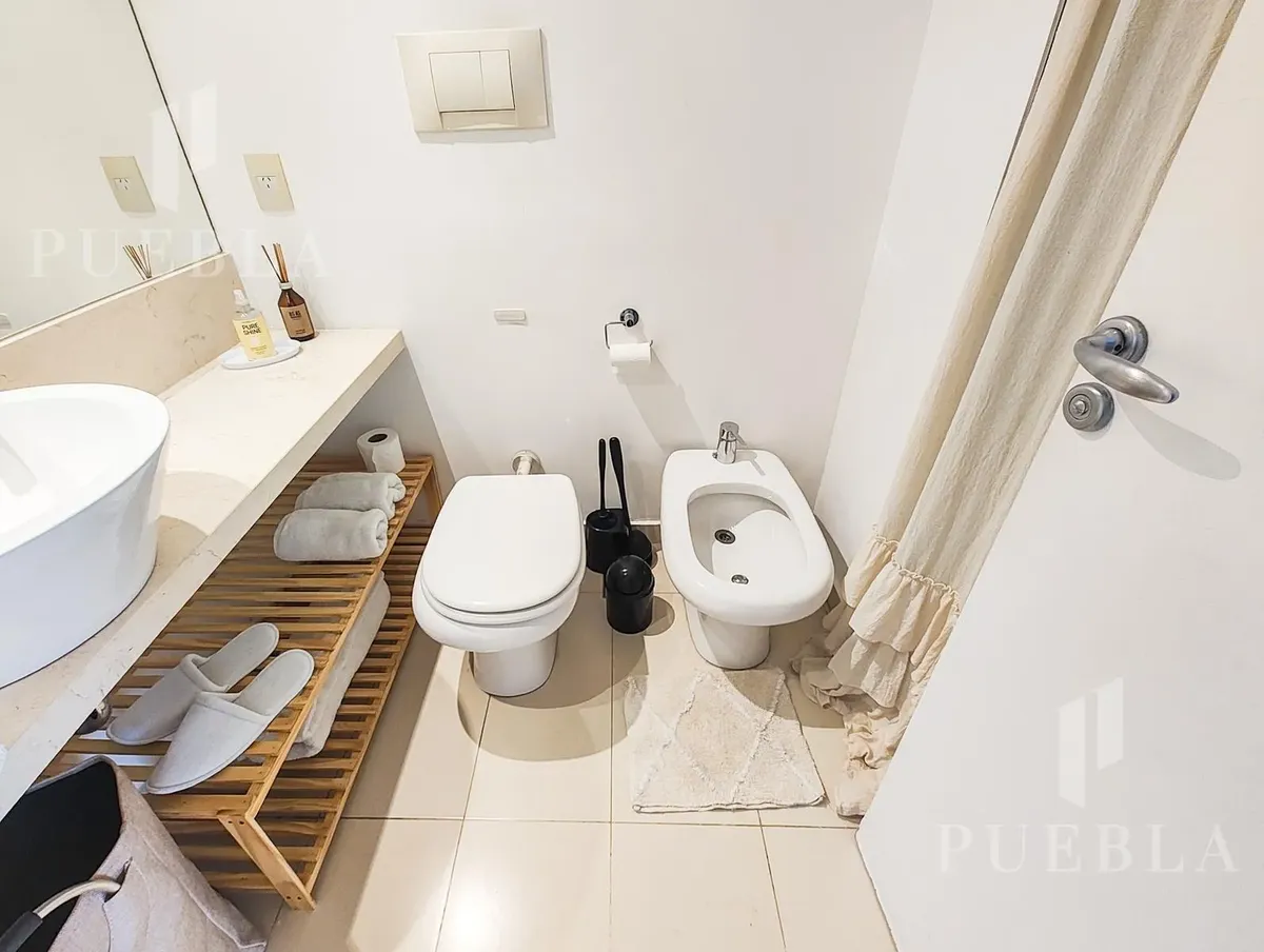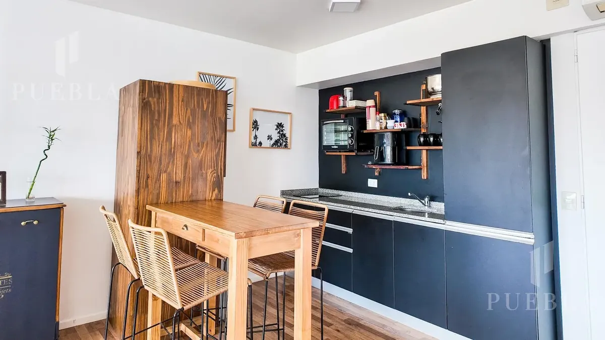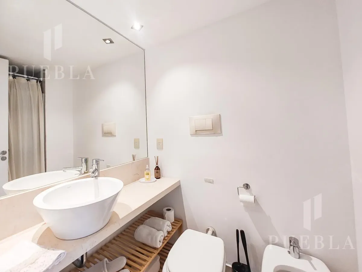 Furnished studio apartment for rent in Puerto Madero, 49 m². Double-glazed (DVH) floor-to-ceiling windows with open views of the river and the city. The building has a 25-metre pool, fully equipped gym, meeting room, jacuzzi, sauna, spa, laundry, on-site restaurant and 24-hour security. Rent is packaged at USD 1,250 per month, including building fees and services except electricity, billed via an individual meter (Edesur). An (assigned) parking space is optional for USD 100 per month.