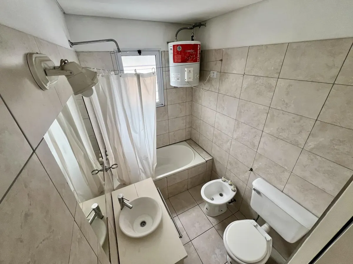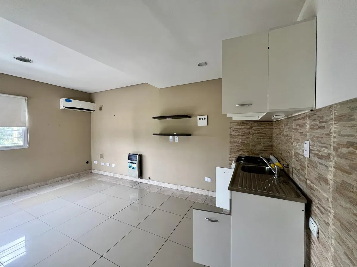 Studio apartment for rent in General Pacheco, Tigre. Located on the first floor accessed by stairs. Includes a split air conditioner and a gas heater, as well as a full bathroom.