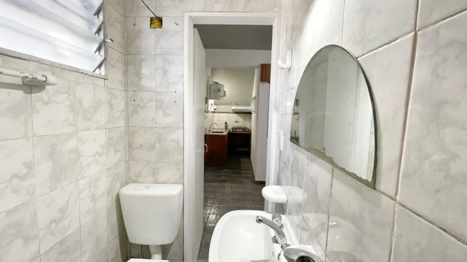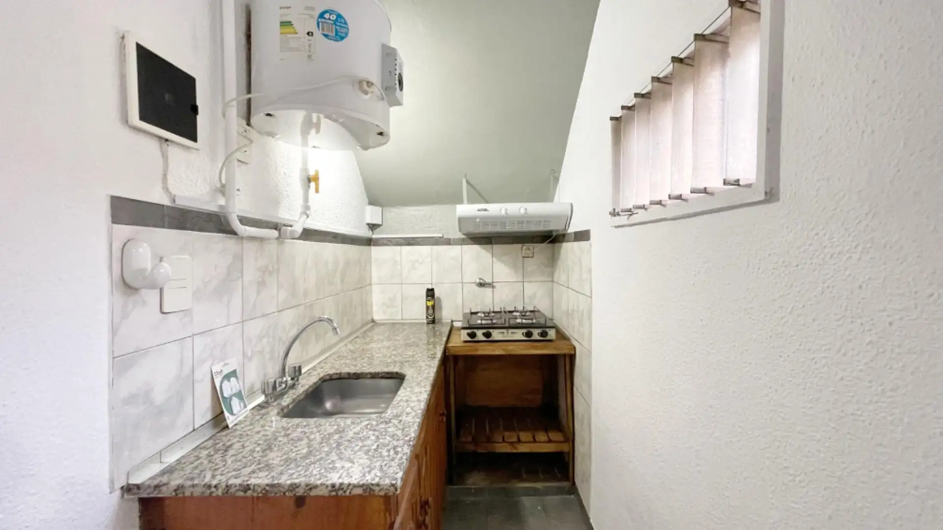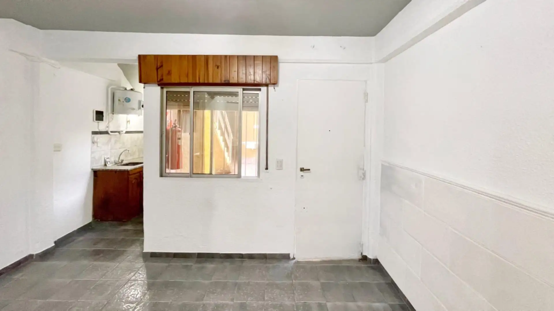 Two-room apartment in Rincón de Milberg, Tigre, located on Av. Santa María facing Club Hacoaj. Equipped kitchen with lower cabinets and pantry, plus a full bathroom. Cable TV is included and the rent includes $22,000 for security, water, ABL, electricity and cleaning of common areas; cloacas are also listed. One-month deposit required; pets not allowed. Guarantee via fianza systems (Garantina, Respaldar or similar). Taxes and water are stated as the owner’s responsibility.