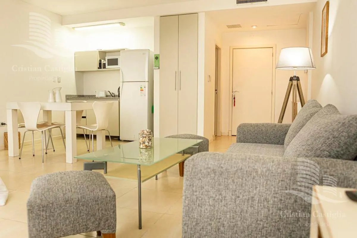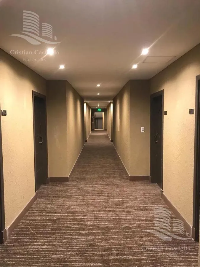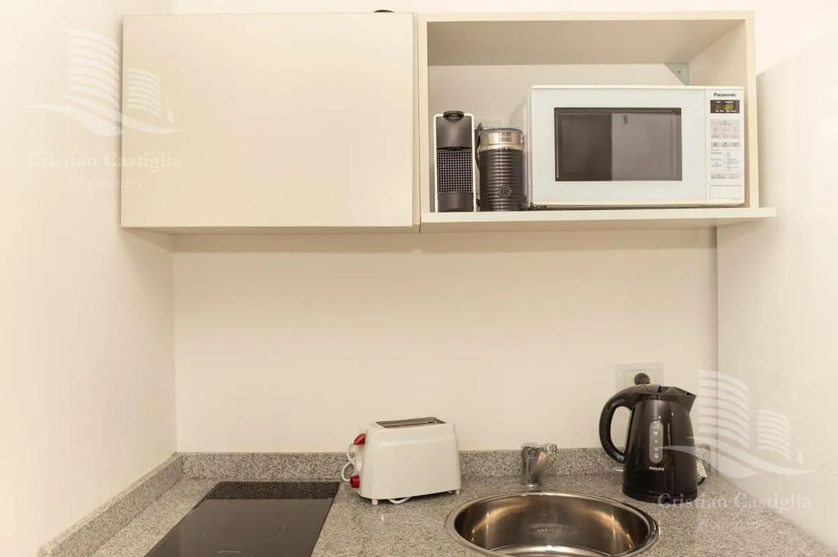 Studio apartment of 41 m² in Estudios de la Bahía, Bahía Grande, Nordelta. Furnished and brand new, with equipped kitchenette (hotplate, under-counter units, dining table and full set of dishes for 4), fridge with freezer, and Nespresso coffee machine. Features include a full bathroom, storage closet, central air conditioning, internet, 48-inch smart TV, and Bluetooth audio equipment. Covered (indoor) parking is included in the rental; the complex has 24-hour security, and the unit is located op