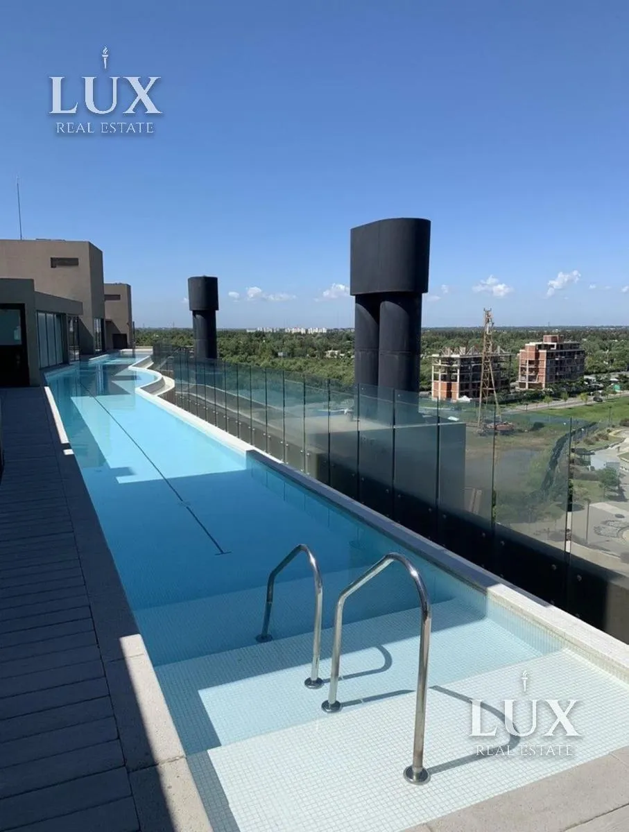Studio apartment in Zaduh Puerto Escondido, Nordelta. 44 m² on the second floor with an integrated, equipped kitchen, a full bathroom, underfloor radiant heating and air conditioning, plus a balcony with open views. Building amenities include an in/out pool on the top floor, a gym with spa and sauna, a communal room with a grill and views of the port, a solarium and a backup generator. Rental contract is for 12 months and requires either a property guarantee or a rental guarantee insurance. Suit