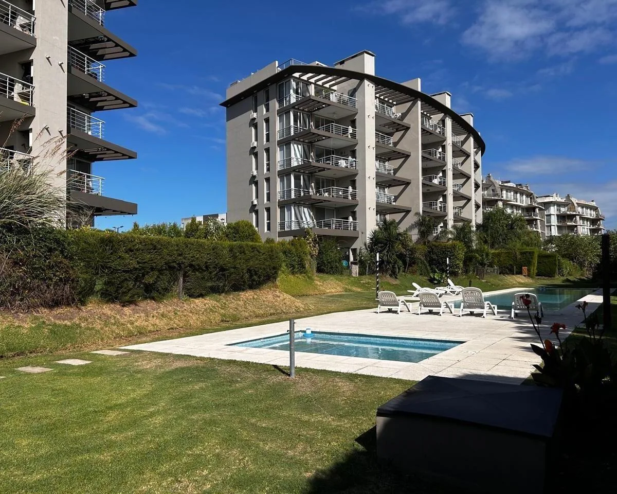 Studio apartment in El Palmar, Nordelta, with a view of the central lake. It is located in the Infinity complex and has an integrated kitchen with a breakfast bar, a full bathroom, porcelain tile flooring, and split air conditioning (cold/hot).