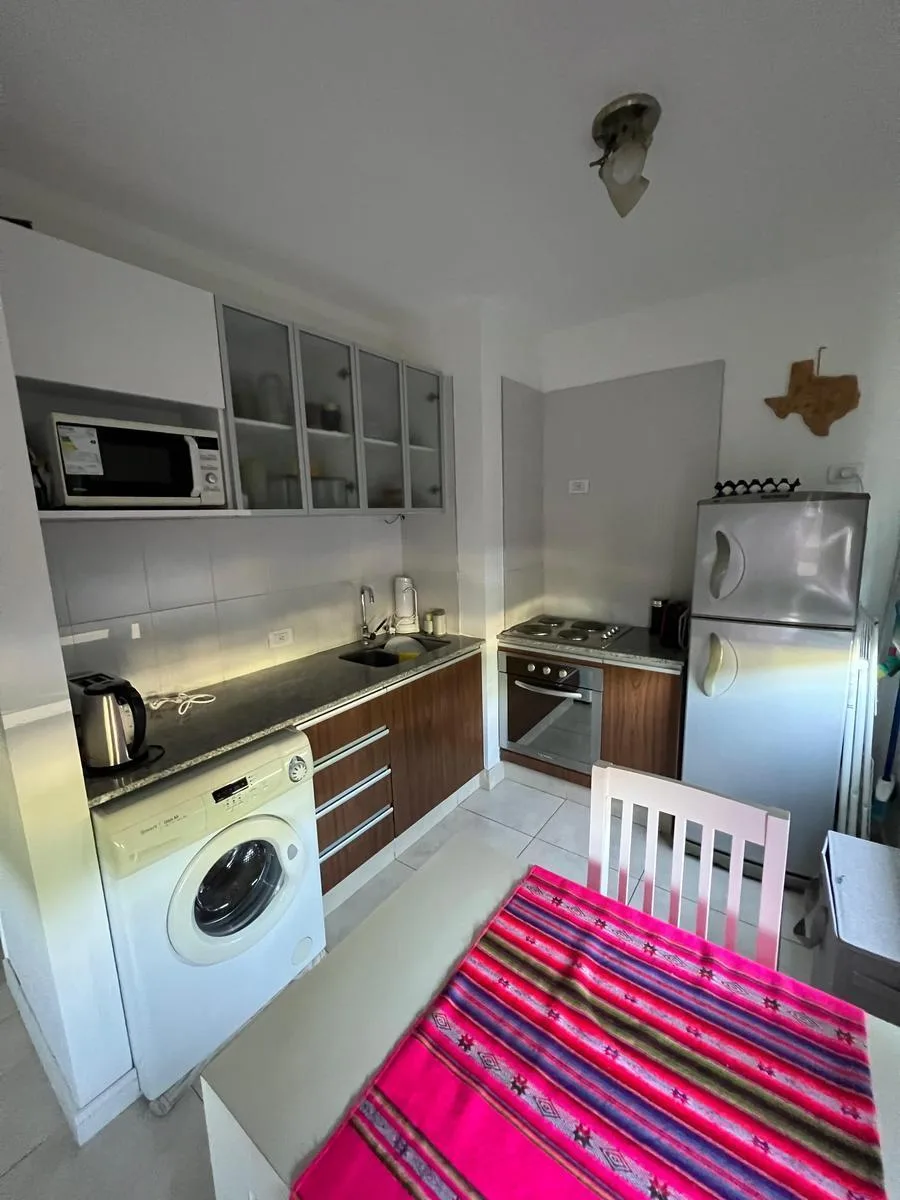 Studio apartment available from March 2026. Located on the first floor, fully furnished and equipped with a bed (1.5-seat), kitchen, fridge, and washing machine. Radiant floor heating and air conditioning. Includes a covered assigned parking space. The complex has a pool and a solarium with loungers.
