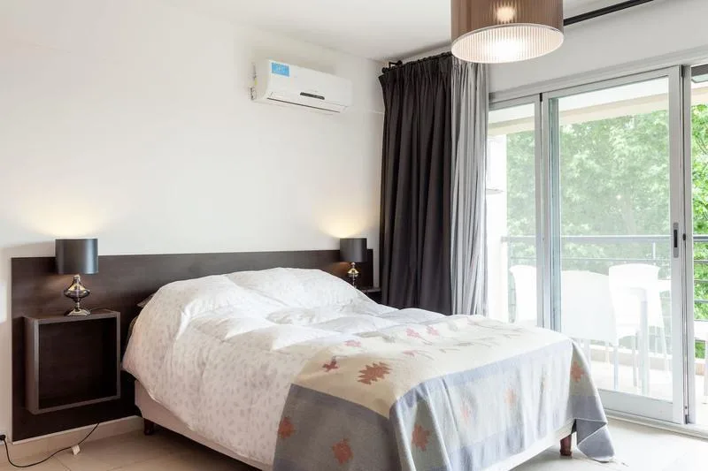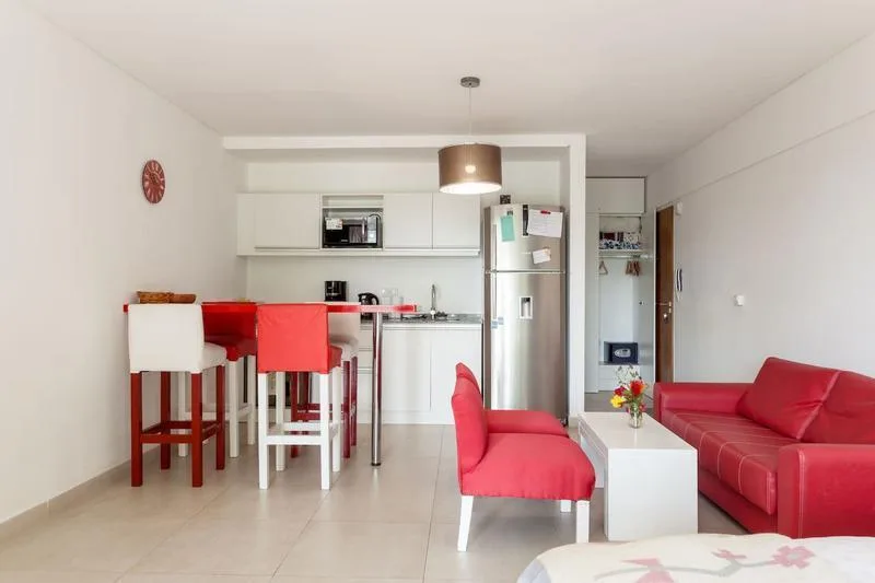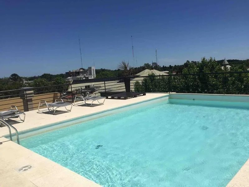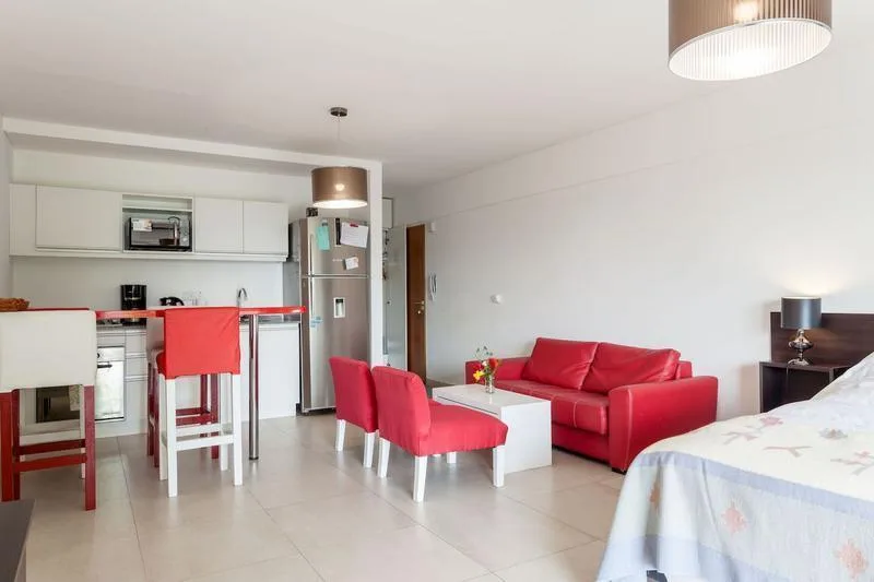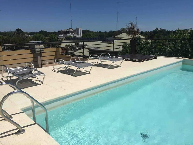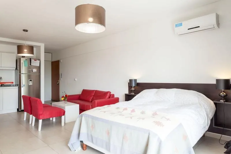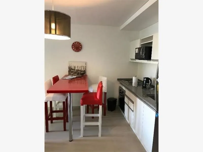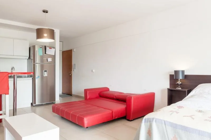 Studio apartment furnished and all-electric, with a balcony street-facing. Approximate size 3.80x8 m, with an integrated kitchen with breakfast-bar counter and a full bathroom. The building has a pool, a rooftop solarium and a shared BBQ area; rental terms start from 1 April, with expensas including the assigned parking space, pool and laundry. The lease is for 12 or 24 months with quarterly adjustments by IPC; short-term is available up to 6 months. No pets; rental guarantee bond accepted.