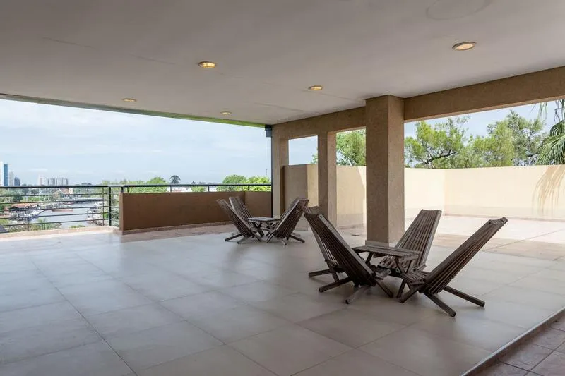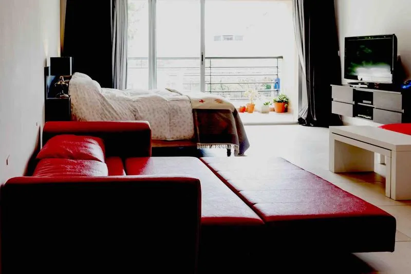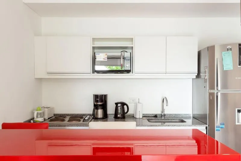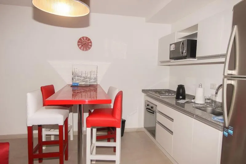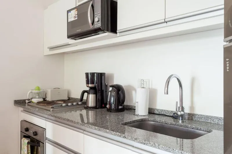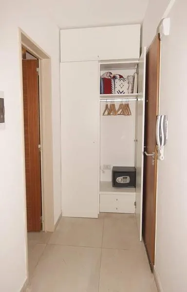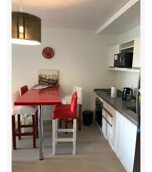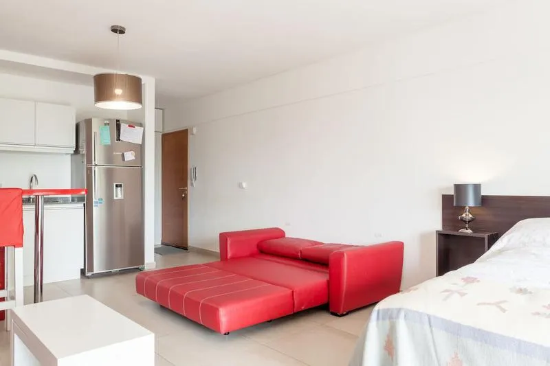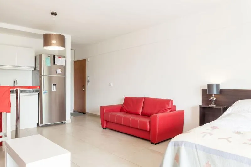 Studio apartment of approximately 3.80 x 8 m, furnished, with a balcony at the front. Street-facing toward the river, with an integrated kitchen and breakfast bar, a full bathroom, and all-electric appliances. The building has a pool, a solarium on the terrace, and a BBQ area. Building fees include the (assigned) parking space, pool, and laundry. Available from 1 April; rental terms of 12 or 24 months with quarterly adjustment by IPC; temporary stays up to 6 months. Accepts a rental guarantee bo