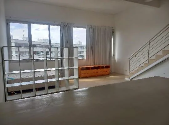 Loft studio apartment in Praia Portezuelo, Nordelta, Tigre, with a private terrace. The unit includes partial furnishings, a full bathroom, a kitchen with a breakfast bar, and an internal staircase leading to the private terrace with a pool, pergola and covered grill, plus a solarium. There is a semi-covered assigned parking space, and the complex has a pool, gym, residents' lounge (SUM) and laundry. Available from February 2026.