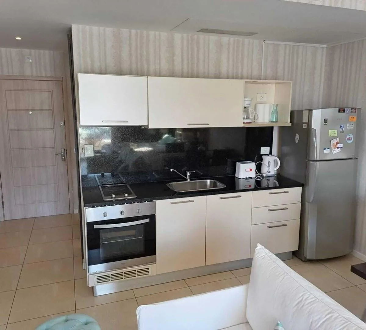 Studio apartment for rent in Nordelta, Bahía Grande, on Av. Del Puerto 200. 49 m² total (40 m² covered plus 9 m² terrace balcony), with open views towards Bahía Grande. Integrated kitchen and full bathroom; 10 years old. Building fees are ARS 250,000 and ABL is ARS 70,000; rent is USD 1300 (temporal rental available). Covered parking is available for USD 25,000.
