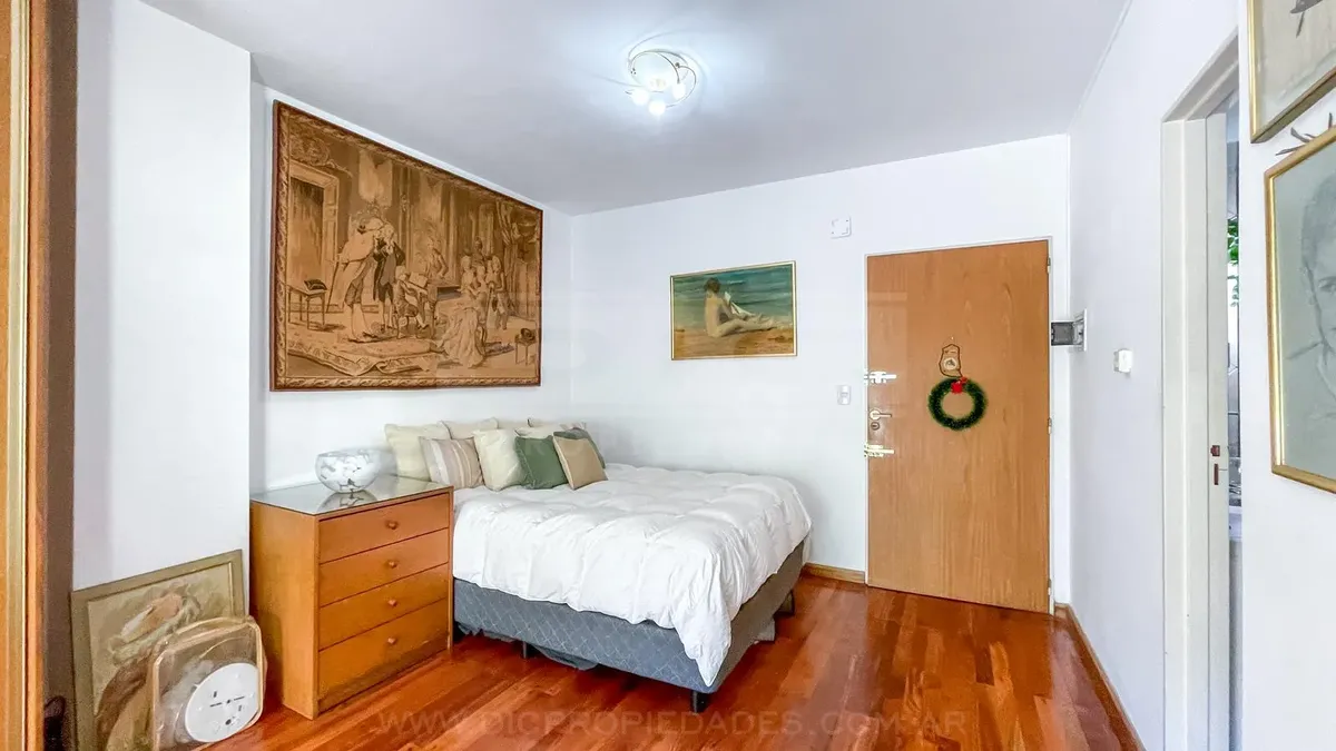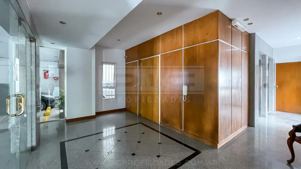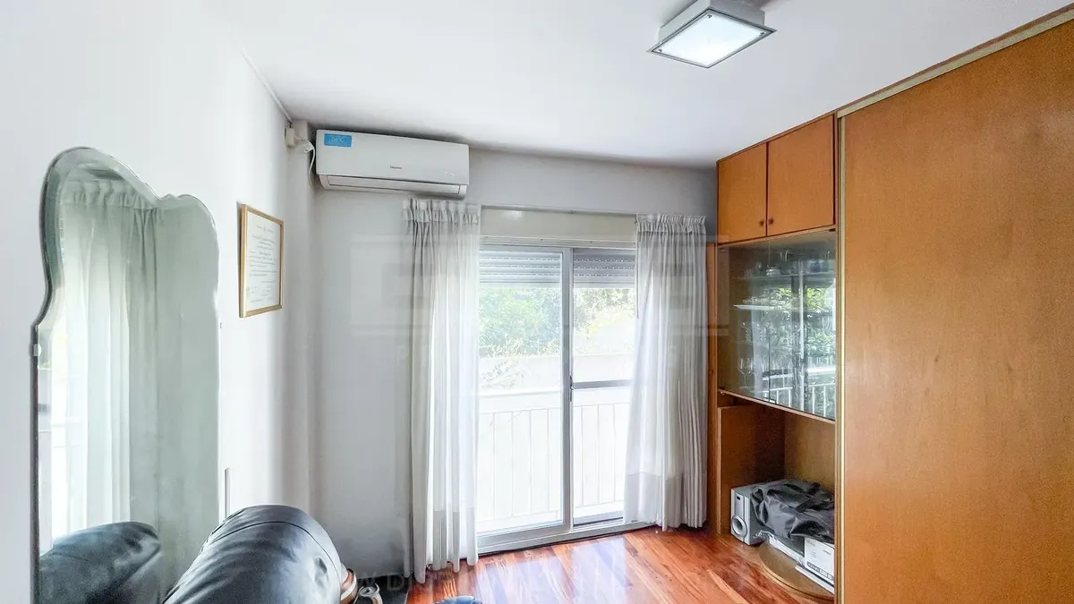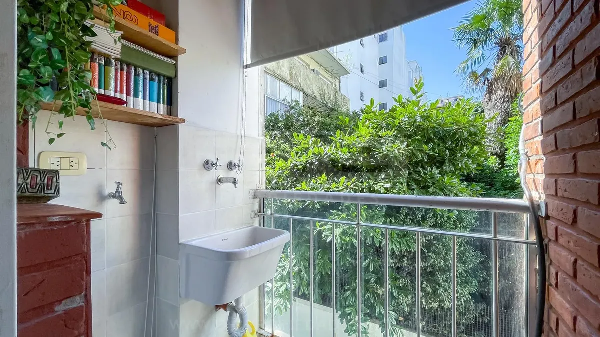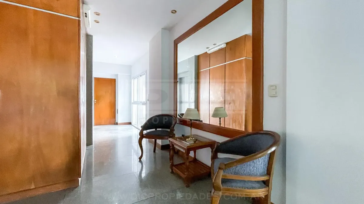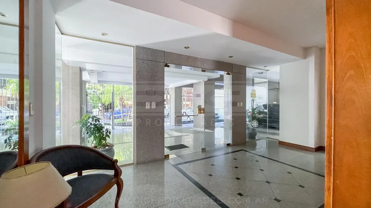 Studio apartment in Olivos with covered parking. Located on the courtyard-facing side (contrafrente). Includes a separate, fully equipped kitchen, laundry area (lavadero), and bathroom. The listing notes that the unit can also be rented without parking, subject to an updated price.