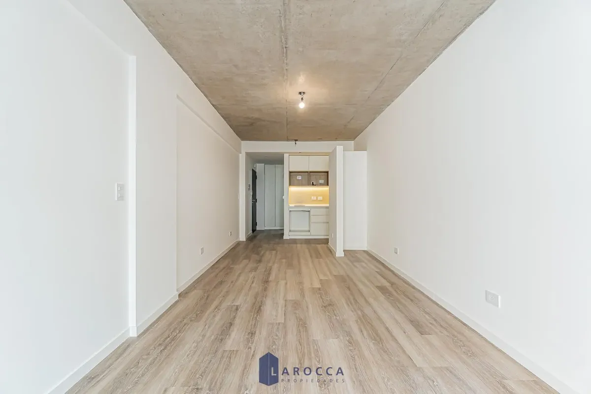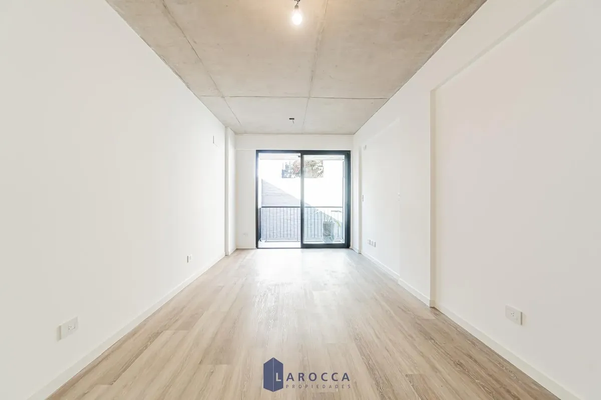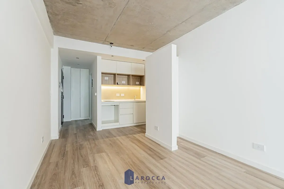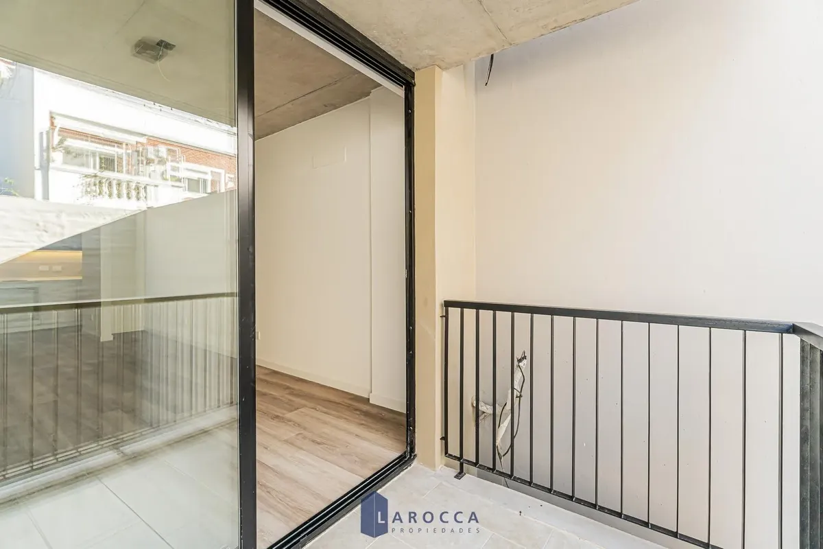 New studio apartment of 35 m² total, at the rear (contrafrente). It has a bathroom and an open-plan main room with access to a balcony. Fully electric unit.