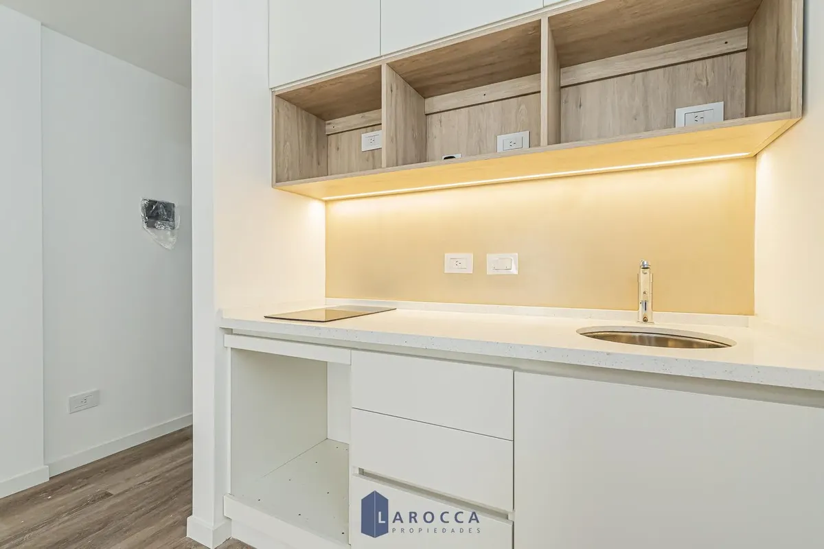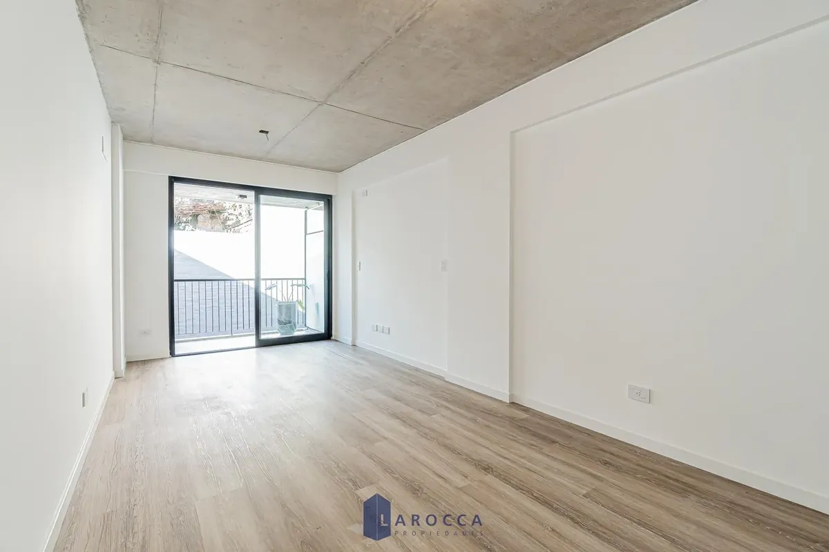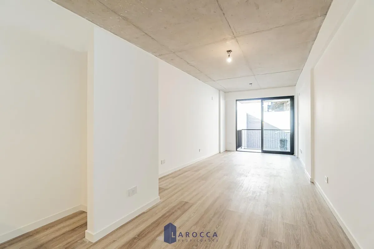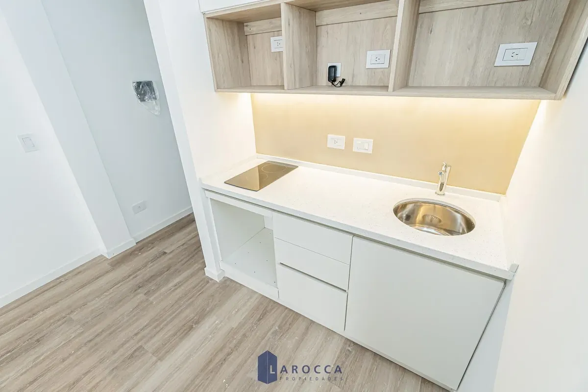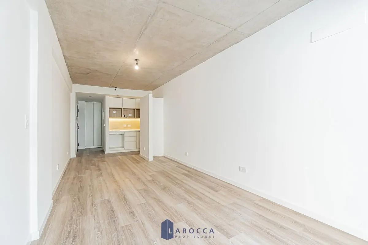 New studio apartment of 35 m² total, at the rear (contrafrente). It has a bathroom and an open-plan main room with access to a balcony. Fully electric unit.
