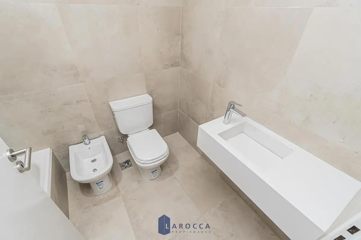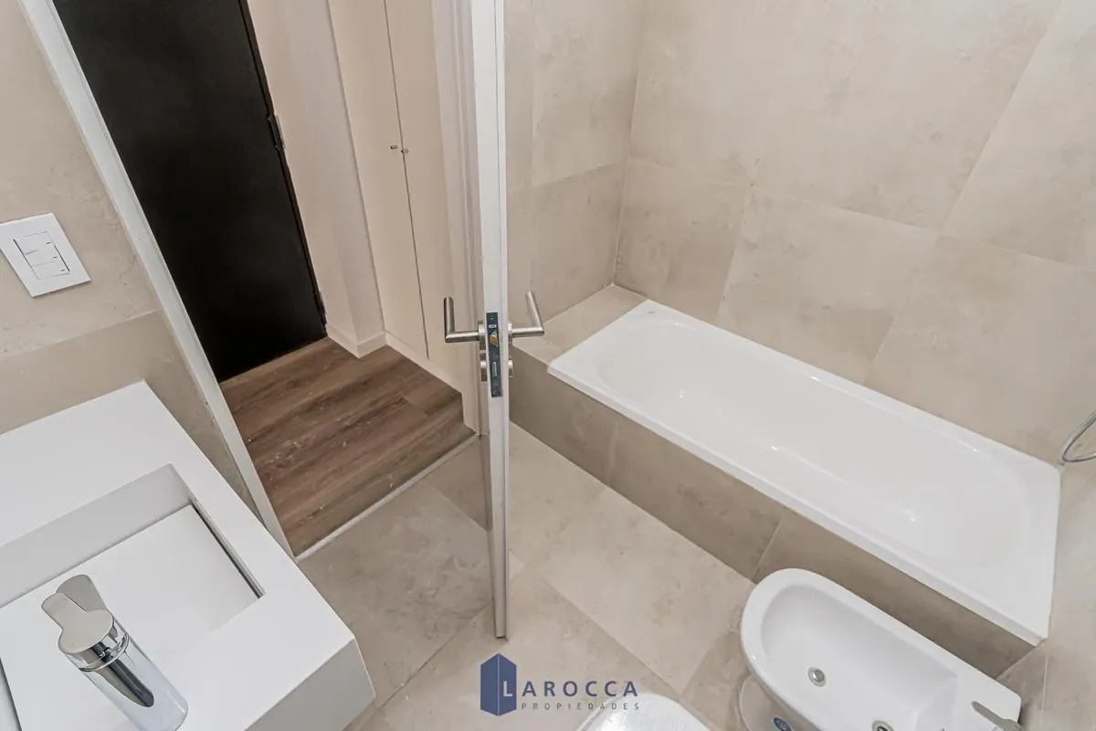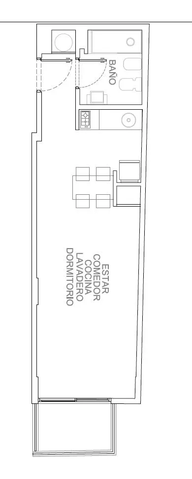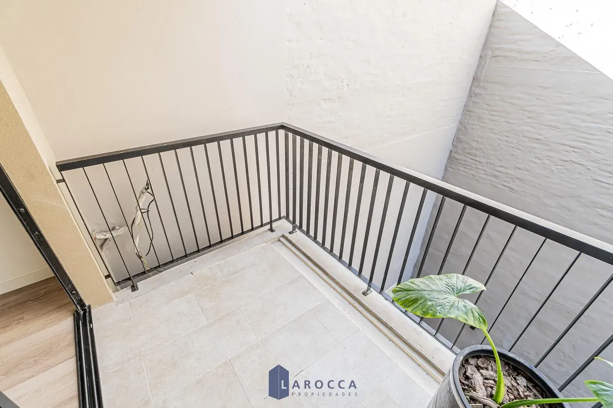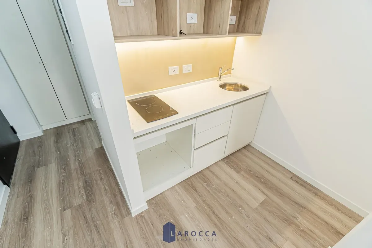 New studio apartment of 35 m² total, at the rear (contrafrente). It has a bathroom and an open-plan main room with access to a balcony. Fully electric unit.