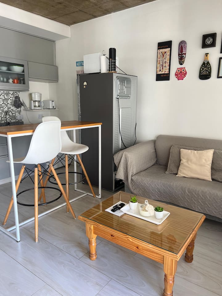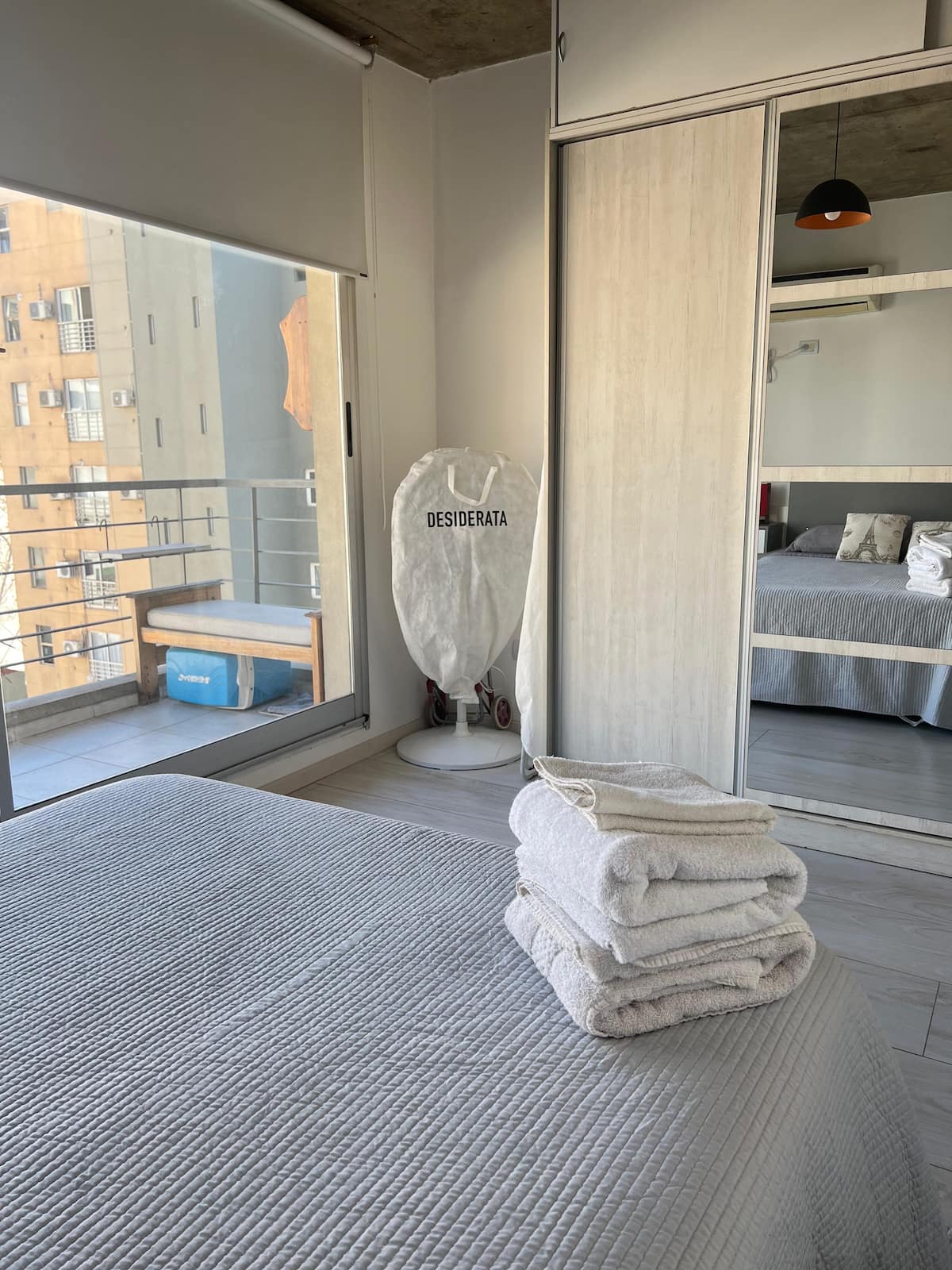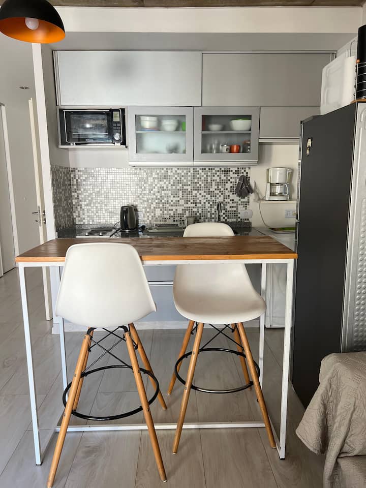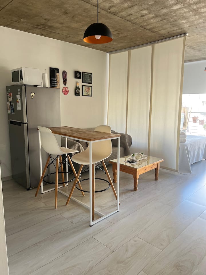 Modern studio apartment in Villa Crespo for up to 2 people. The building has common areas including a pool, laundry (available with token-based charges) and a terrace with grills for use with an additional cost.