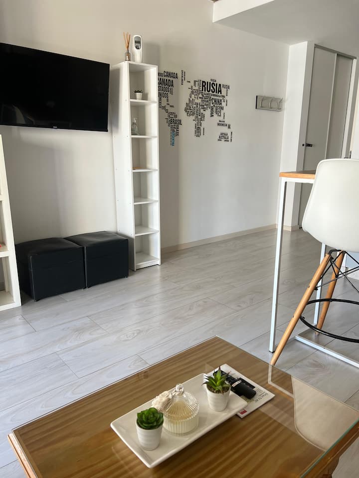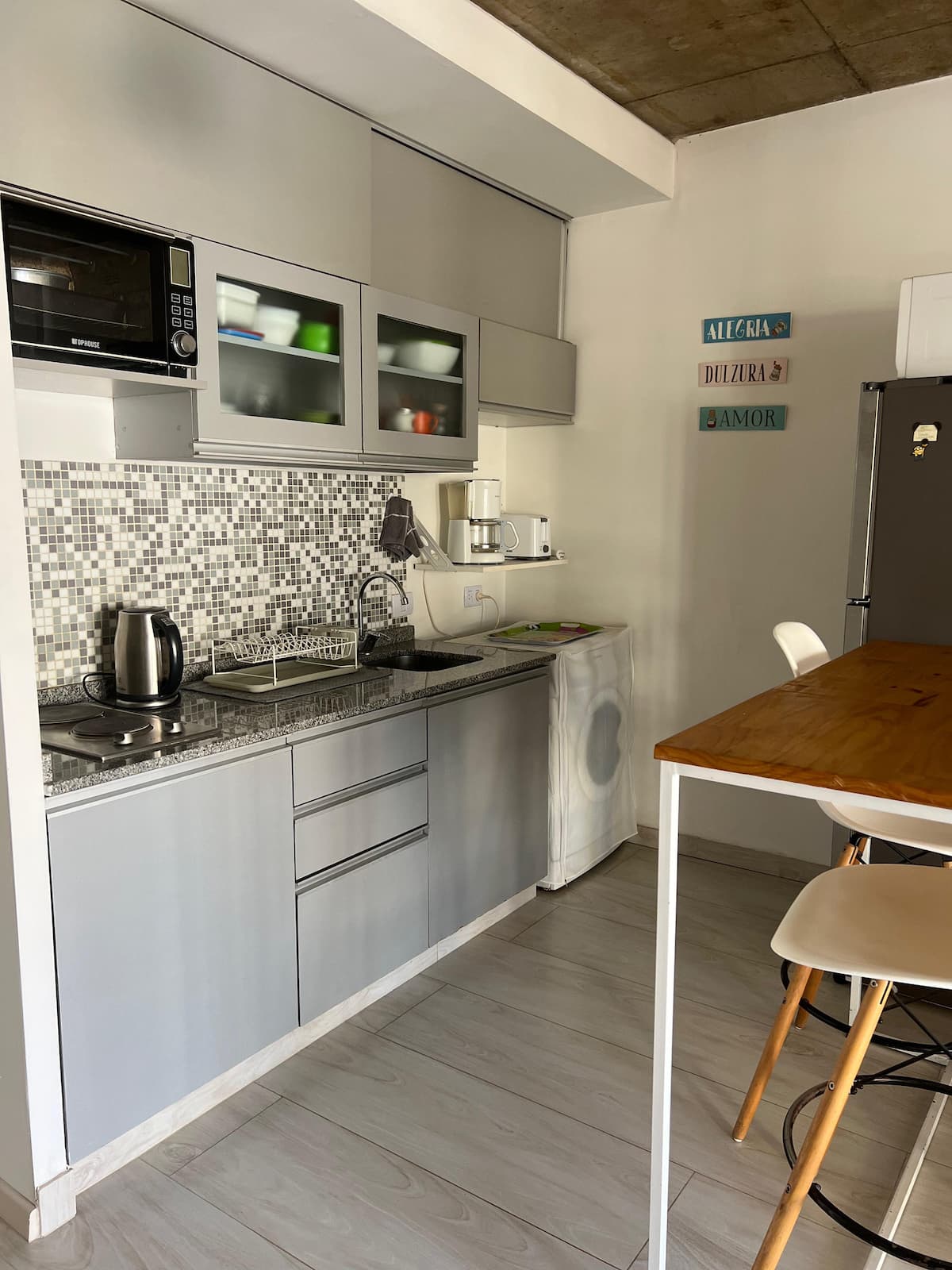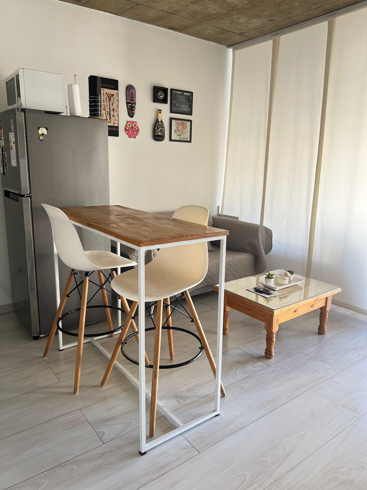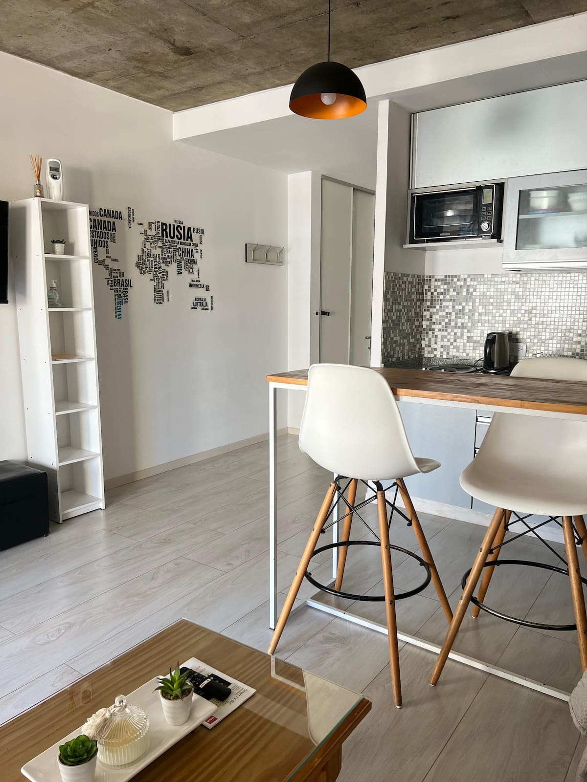 Modern studio apartment in Villa Crespo for up to 2 people. The building has common areas including a pool, laundry (available with token-based charges) and a terrace with grills for use with an additional cost.