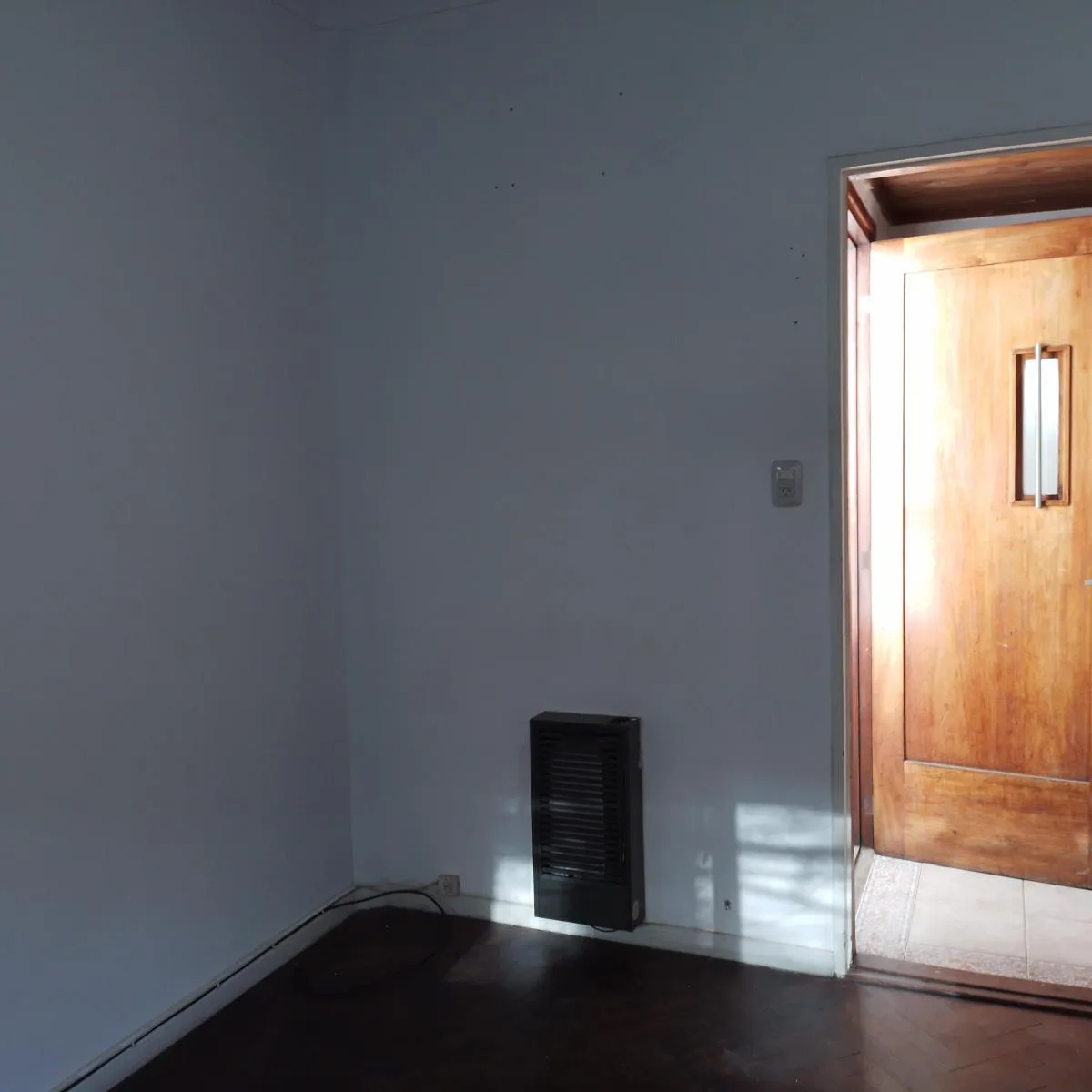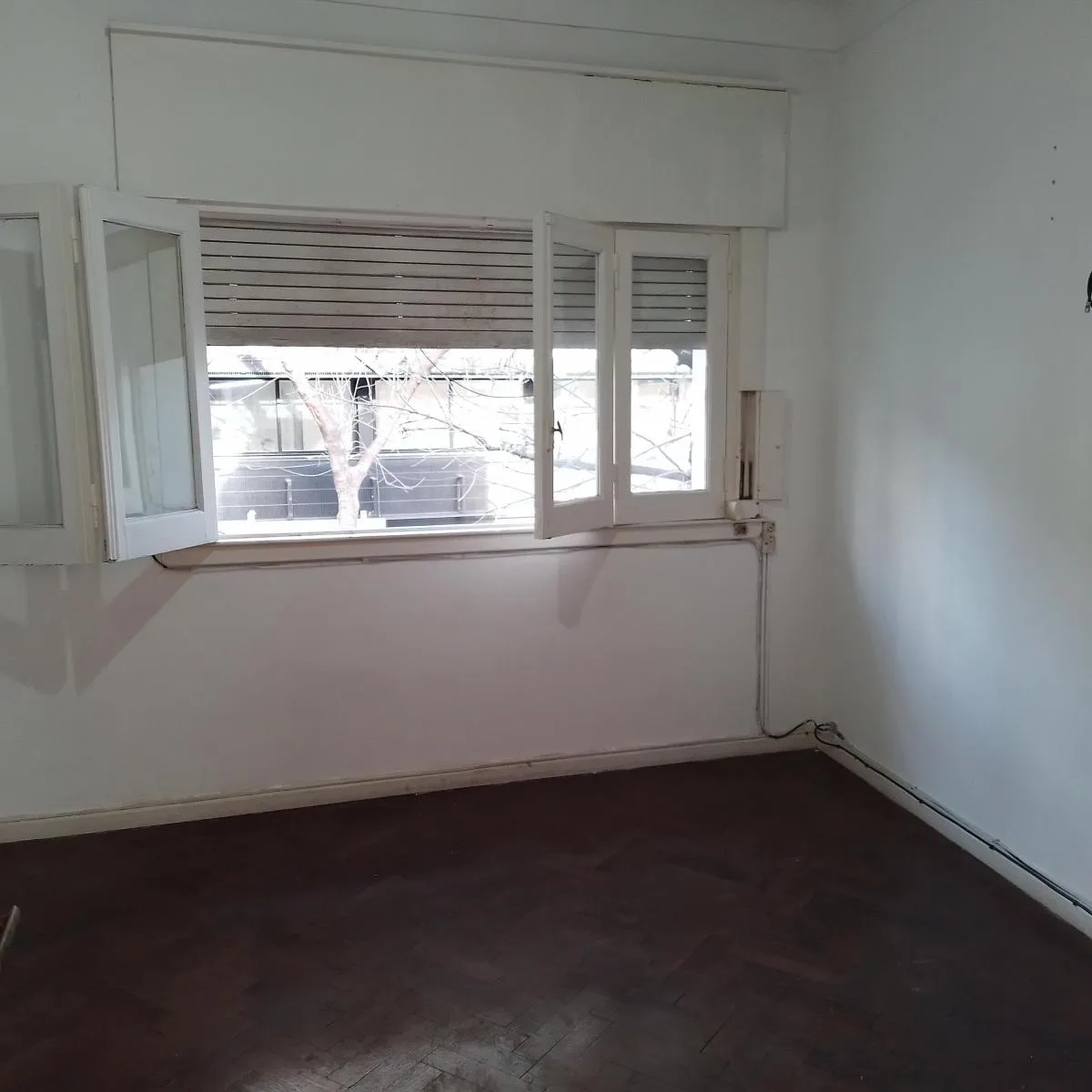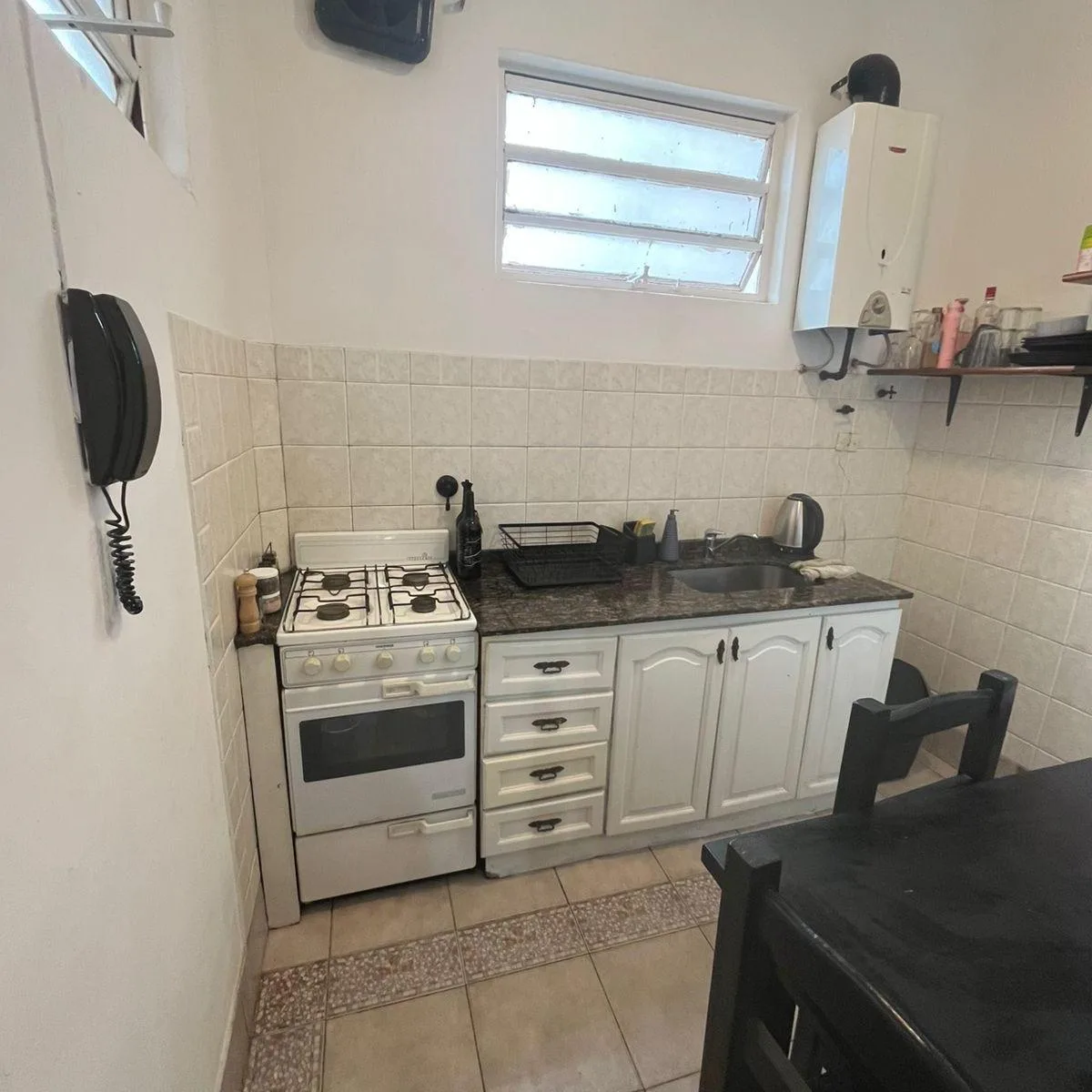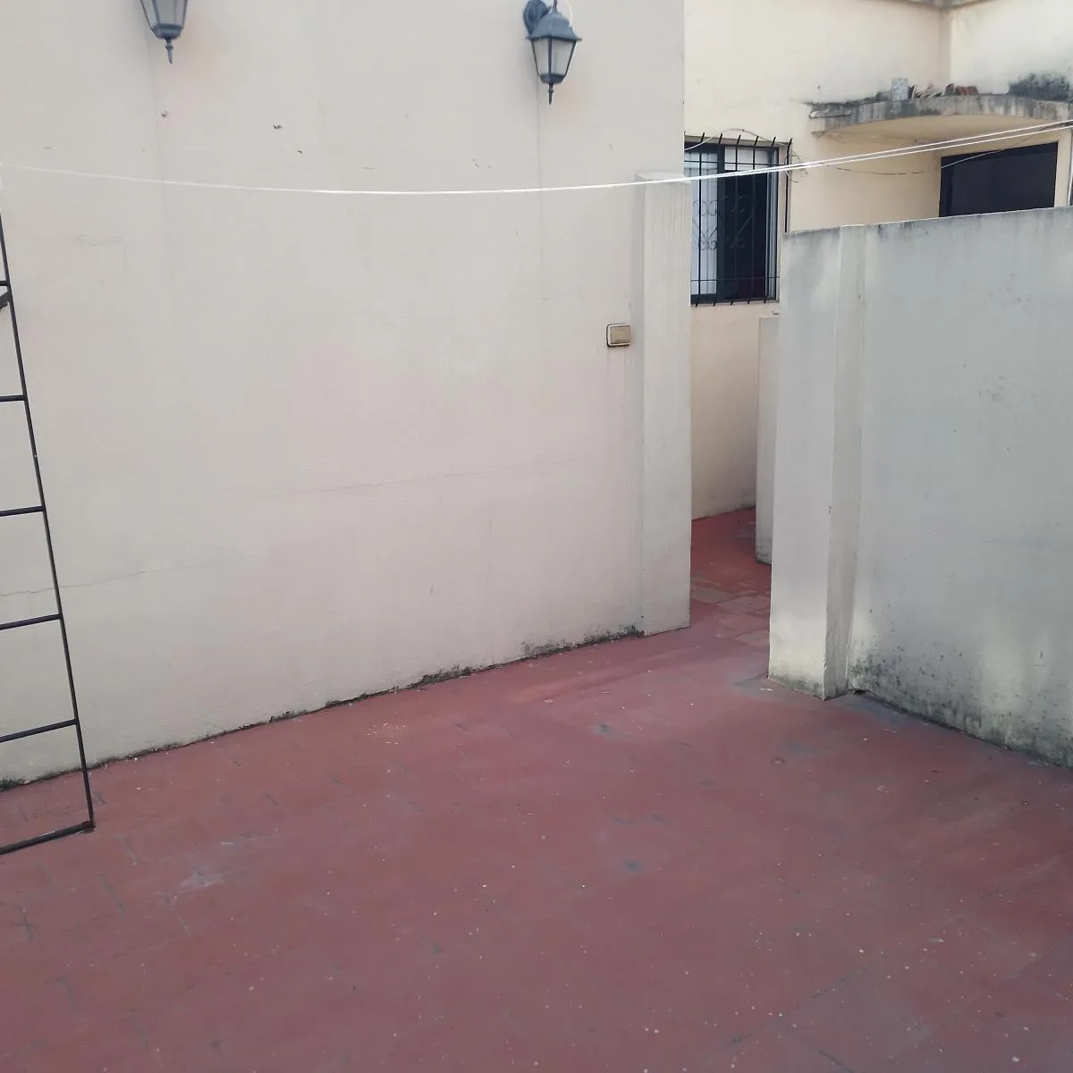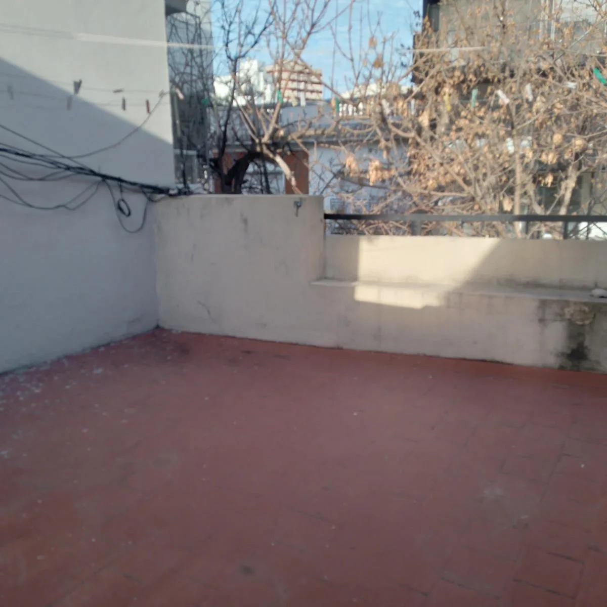 Studio street-facing unit on the 1st floor reached by stairs, set up as a PH-type layout. It includes a shared terrace used by 4 units out of the 12 that make up the complex. The listing states it is 20 metres from Plaza 24 de Setiembre, with access to public transport nearby. Rental terms listed include 1 month for deposit, 1 month paid in advance, and a CABA guarantee or a rental guarantee insurance, with quarterly rent adjustments according to IPC.