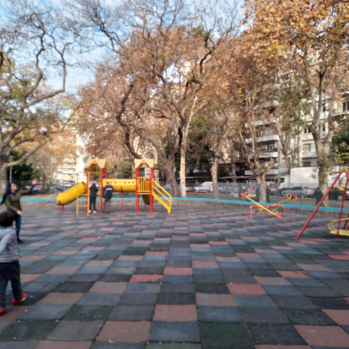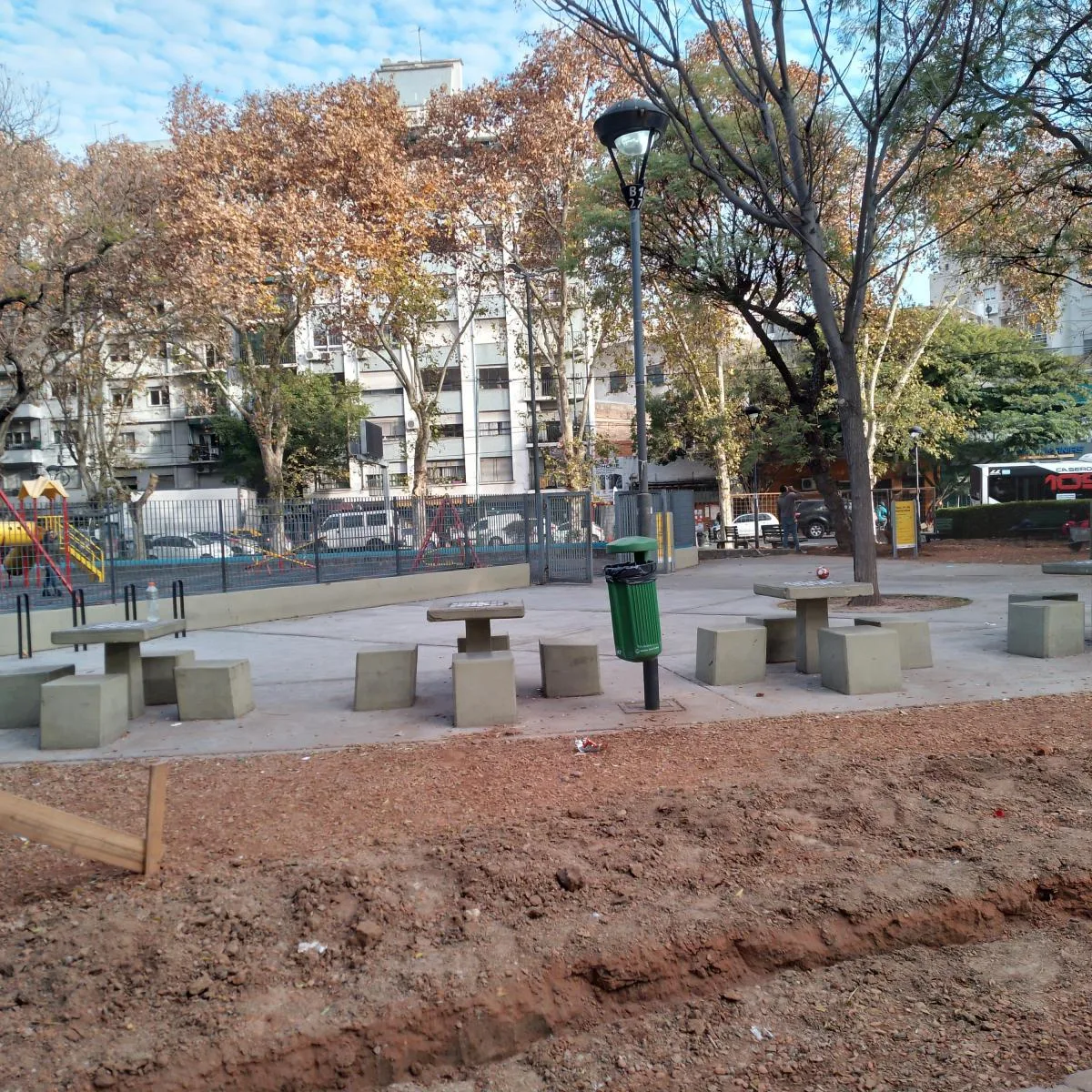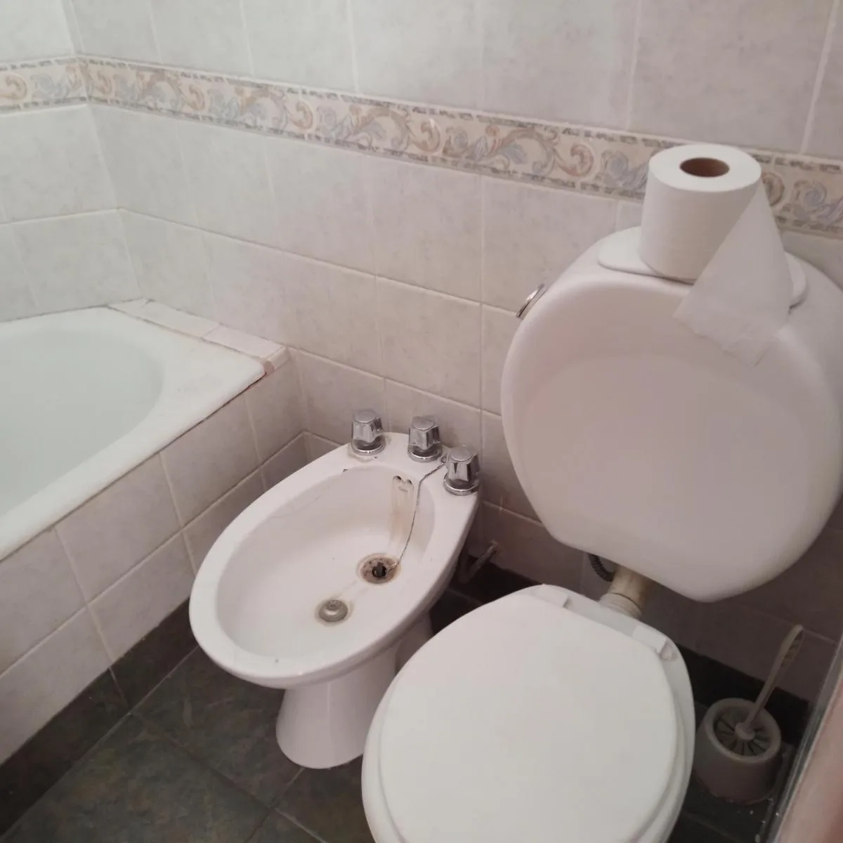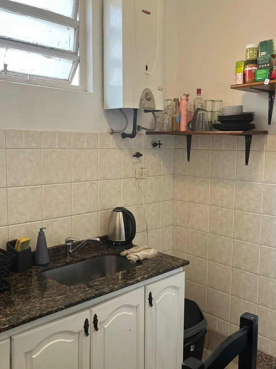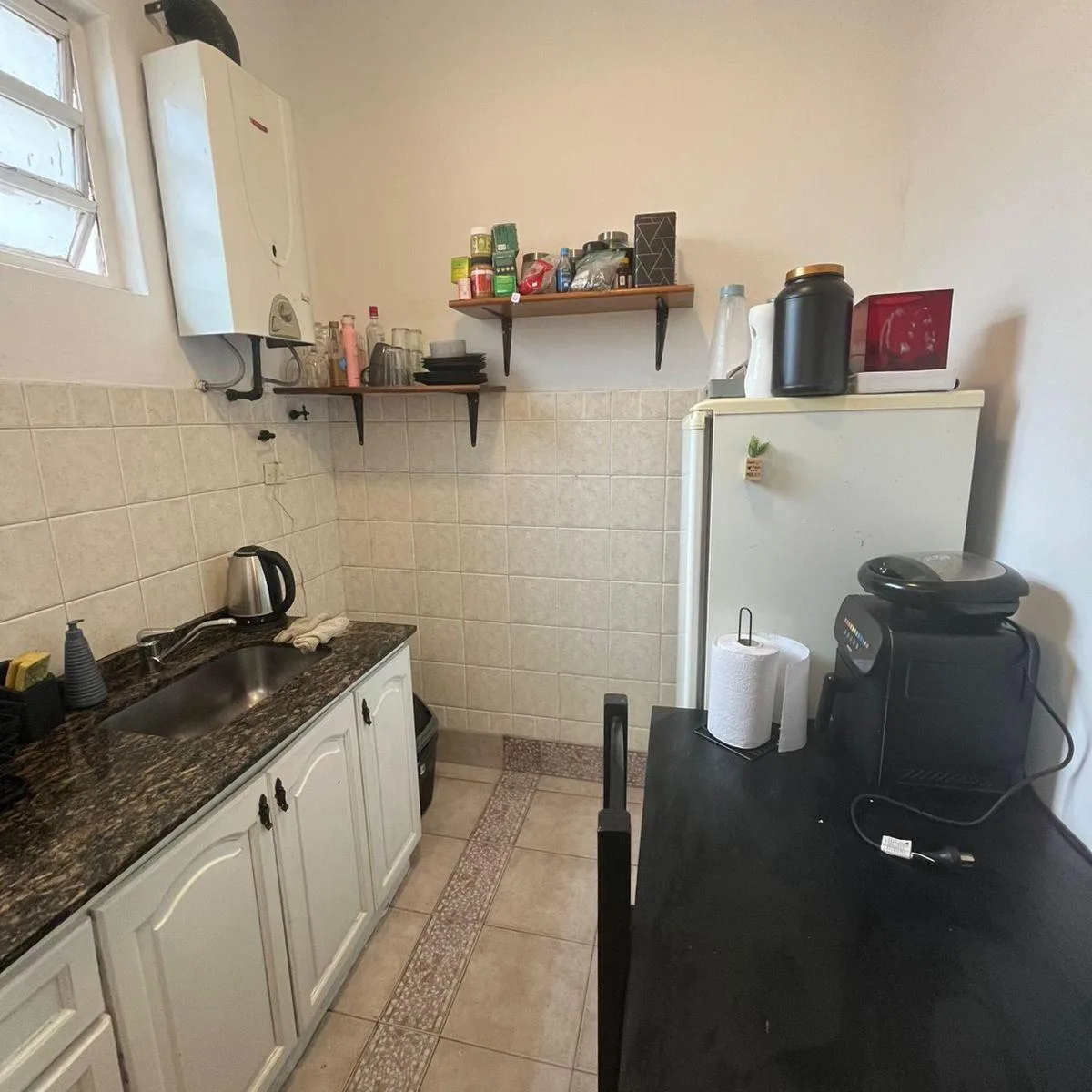 Studio street-facing unit on the 1st floor reached by stairs, set up as a PH-type layout. It includes a shared terrace used by 4 units out of the 12 that make up the complex. The listing states it is 20 metres from Plaza 24 de Setiembre, with access to public transport nearby. Rental terms listed include 1 month for deposit, 1 month paid in advance, and a CABA guarantee or a rental guarantee insurance, with quarterly rent adjustments according to IPC.