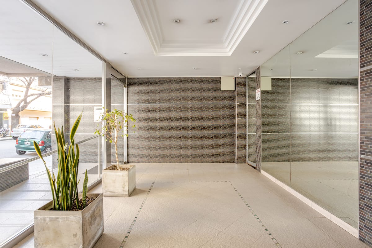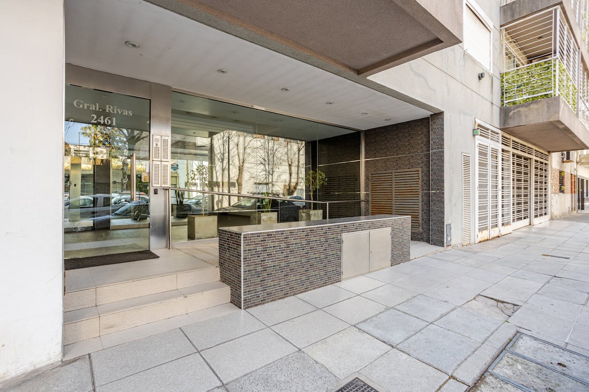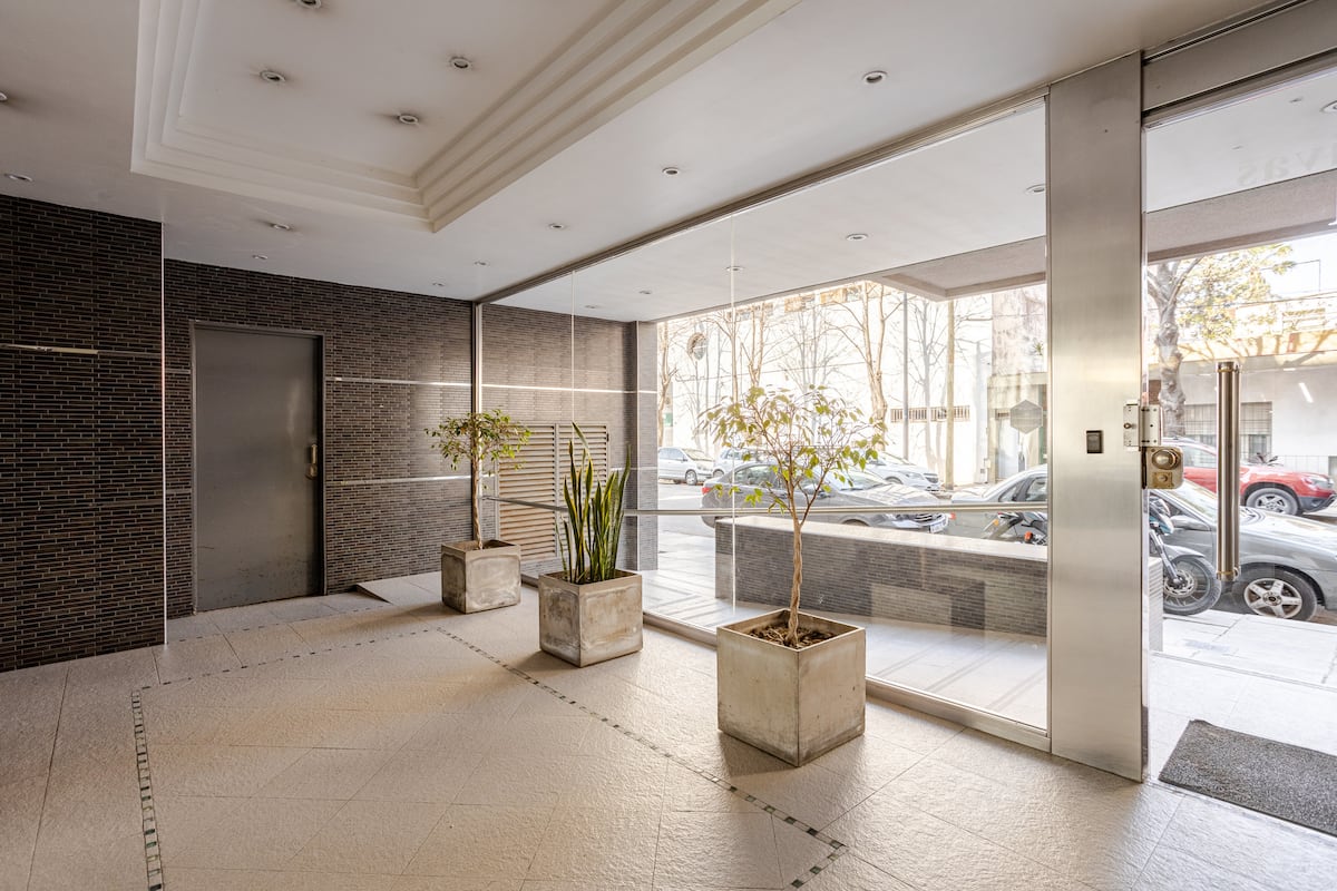 Studio apartment in Villa del Parque, described as luminous and quiet. The building has a swimming pool, a grill area and a gym. The listing places the property about 2 minutes from Facultad de Agronomía and about 5 minutes from Instituto Roffo Oncología and Club Comunicaciones, and notes Estadio Velez Sarsfield in roughly 10 minutes and Movistar Arena in roughly 12 minutes.