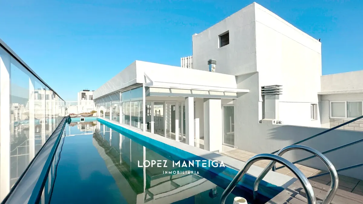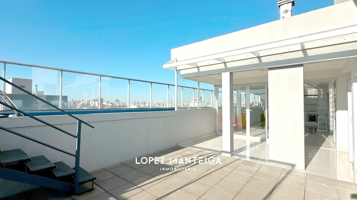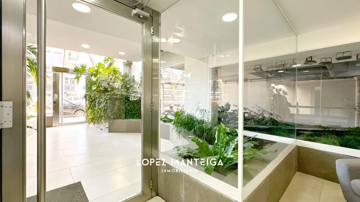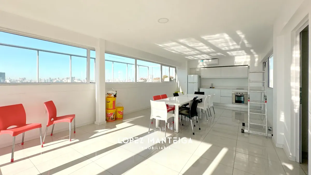 Studio apartment on the 6th floor, courtyard-facing with a balcony. Unfurnished unit with built-in base cabinetry including an electric oven and hotplate, a full bathroom, central hot water, and a floor-to-ceiling closet. The building has a rooftop pool, fully equipped communal room (SUM), laundry and an outdoor grill area. Monthly rent is $710,000, with building fees (expensas) of $200,000.