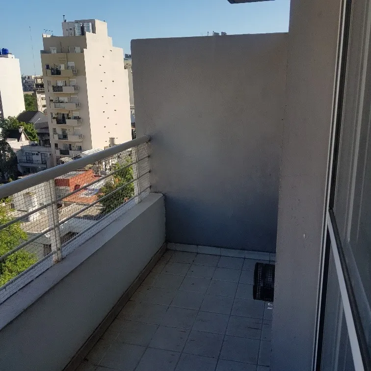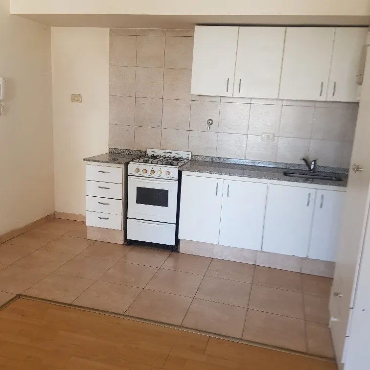 Studio apartment with a front-facing balcony, open view and lots of natural light. Gas cooking and hot water via an individual electric water heater (termotanque). Kitchen with upper cabinets and base units, full bathroom, and the option to set up a washing-machine connection.