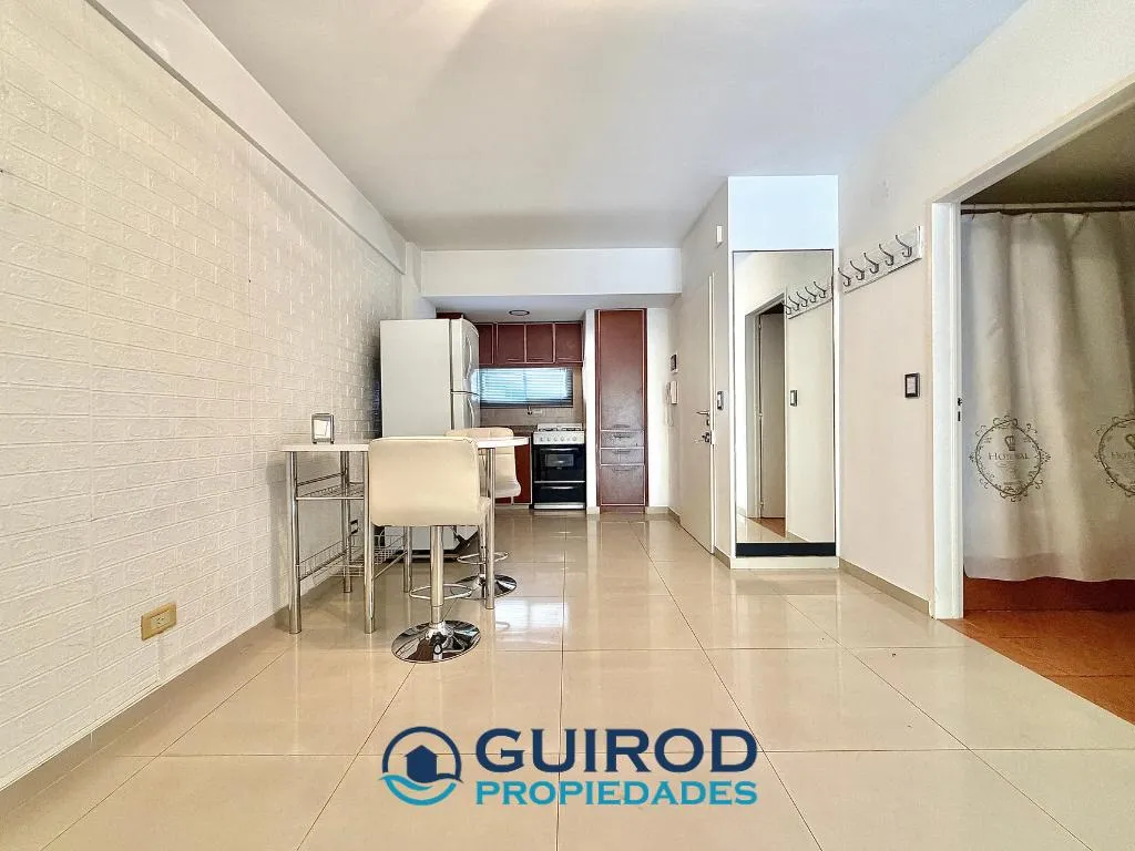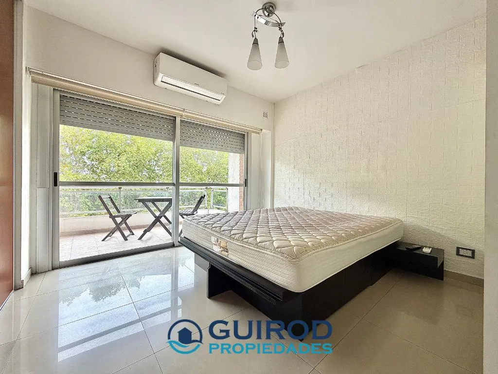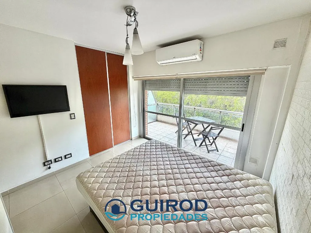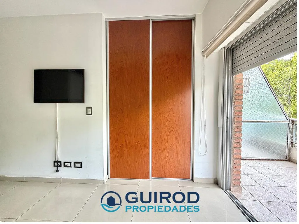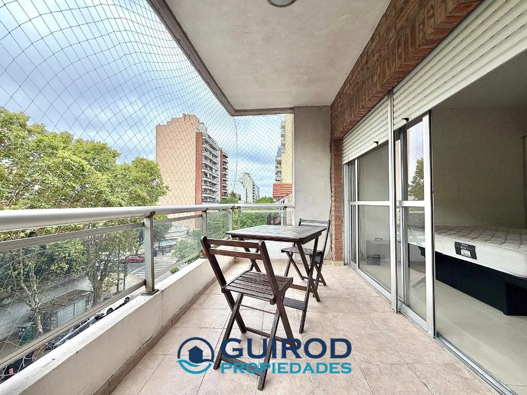 Furnished studio apartment offered for rent in Villa Pueyrredón, split as shown in the photos, with a large street-facing balcony. The building has a swimming pool, communal room (SUM) and gym. The rental contract is for 2 years with a quarterly rent increase by IPC. Building fees are ARS 140,000.