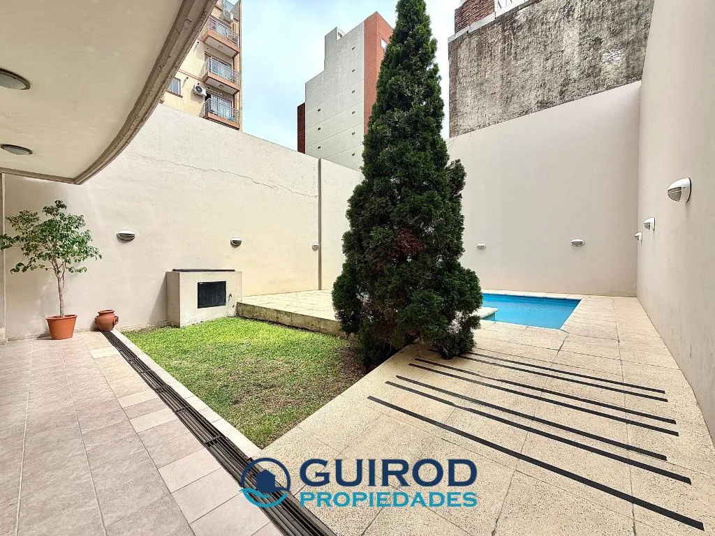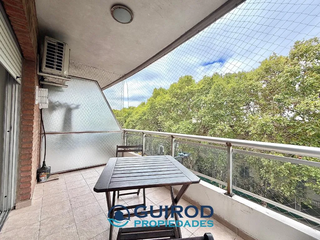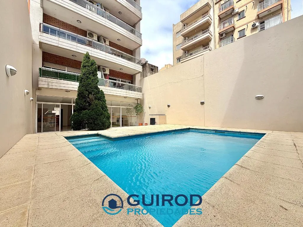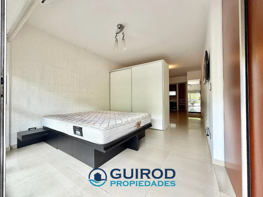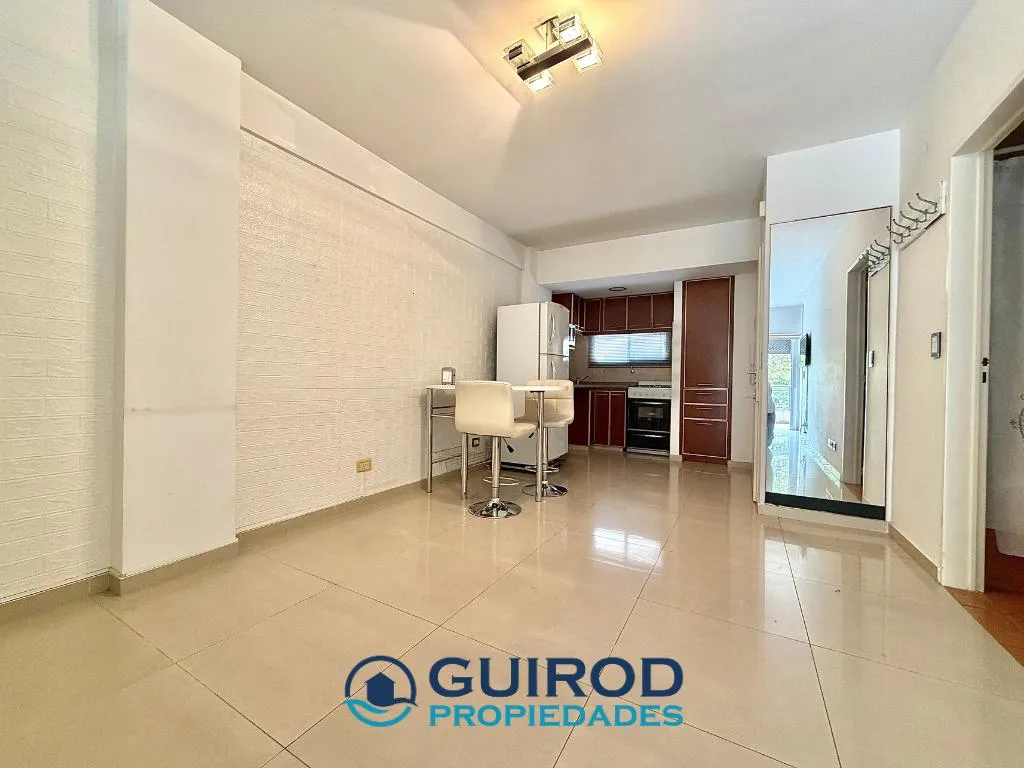 Furnished studio apartment offered for rent in Villa Pueyrredón, split as shown in the photos, with a large street-facing balcony. The building has a swimming pool, communal room (SUM) and gym. The rental contract is for 2 years with a quarterly rent increase by IPC. Building fees are ARS 140,000.