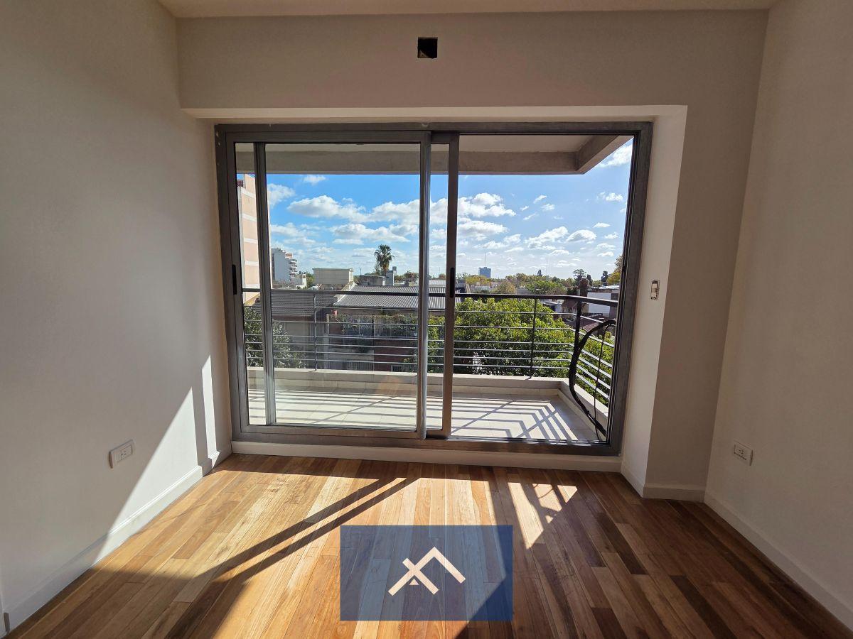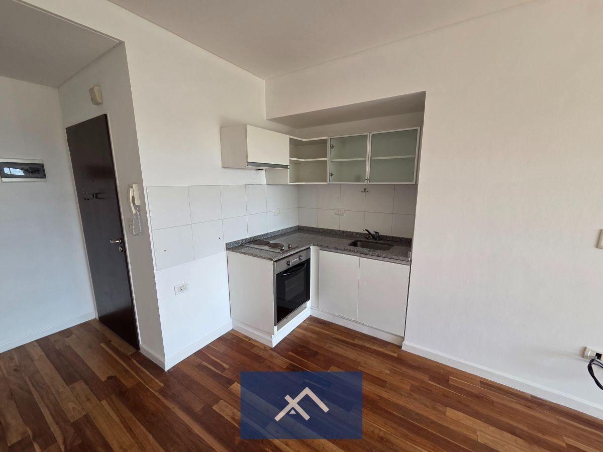 Studio apartment on the 4th floor, street-facing in Villa Pueyrredón, 31.40 m² covered with 6.21 m² semi-covered balcony and 37.61 m² total, west-facing. Integrated electric kitchen with upper and lower cabinets, parquet flooring, and two floor-to-ceiling wardrobes. Full bathroom with bathtub and window; covered balcony. Includes connection for air conditioning. Assigned uncovered parking is on the ground floor and a storage room is on the 1st basement level. The building has 2 blocks, 2 units p