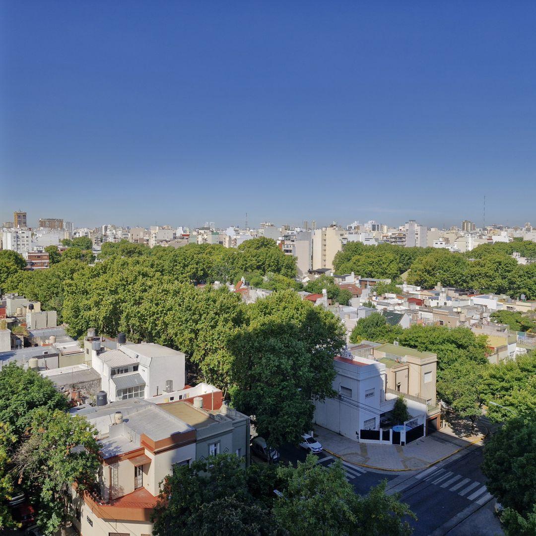 Studio apartment with 24-hour security and a balcony. Rent is $400.000, with a rental guarantee bond of $400.000. Building fees are $110.000 and include AYSA; ABL is not specified.