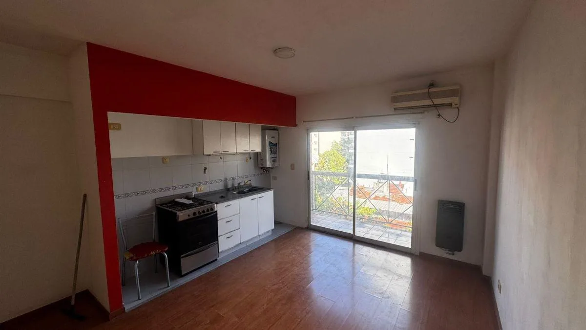 Studio apartment on the 5th floor, street-facing, with a balcony. Air conditioning and a wall-mounted balanced flue heater are installed. Integrated kitchen with upper and lower cabinetry; cooking is gas. Full bathroom with all fixtures. Building fees are $204,000 and include AYSA. Contract for 2 years, with rent adjustments every 4 months under the ICL index.
