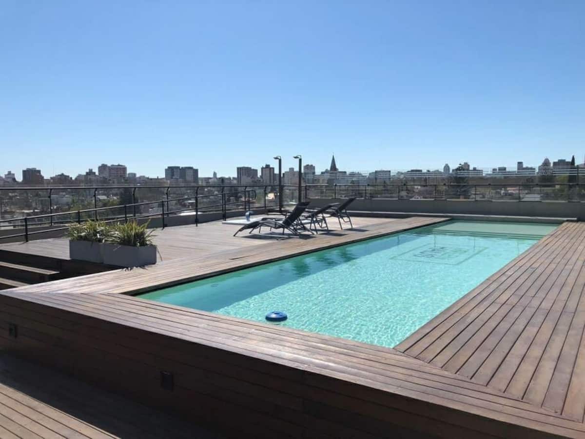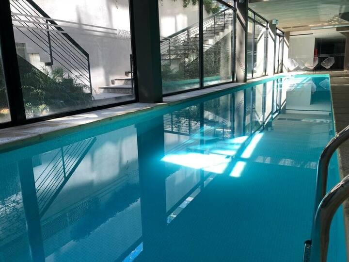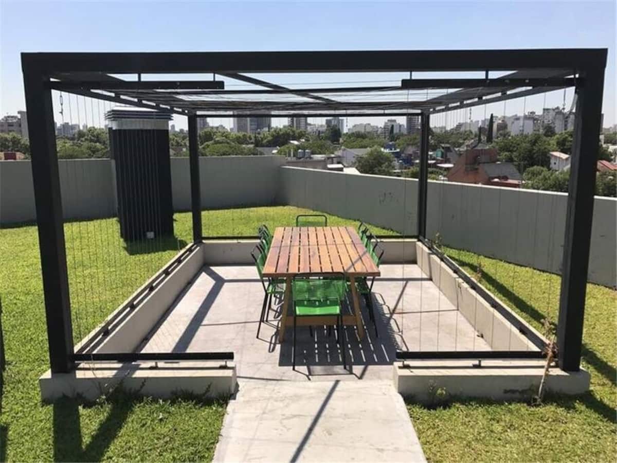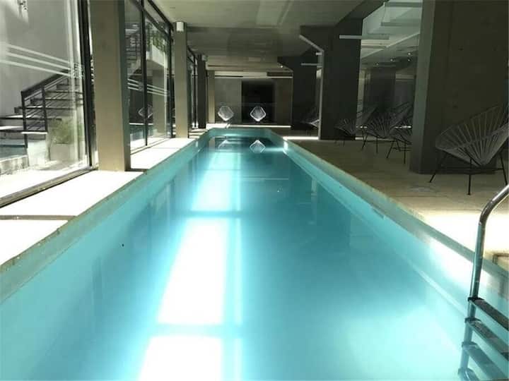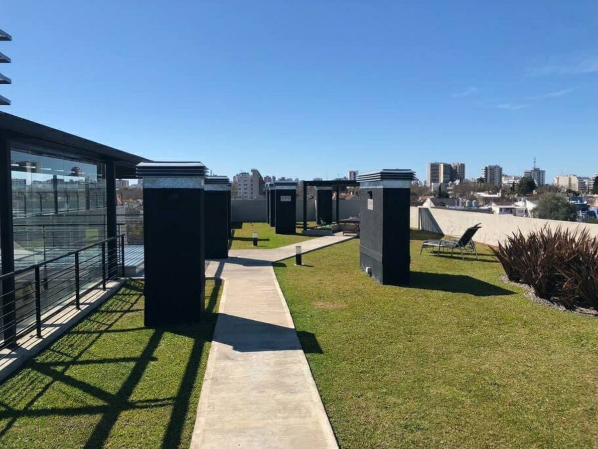 Studio apartment in the Green Haus complex, located above the DoHo corridor in Villa Urquiza. The complex offers an outdoor pool with a terrace, deck and solarium, and a heated indoor pool, plus a gym, sauna, jacuzzi, and changing rooms. Other amenities include a grill with quincho, SUM, garden, meeting rooms, reading and games areas, a residents’ lounge with a large-screen cinema, children’s outdoor play area, and a laundry with a washer/dryer.