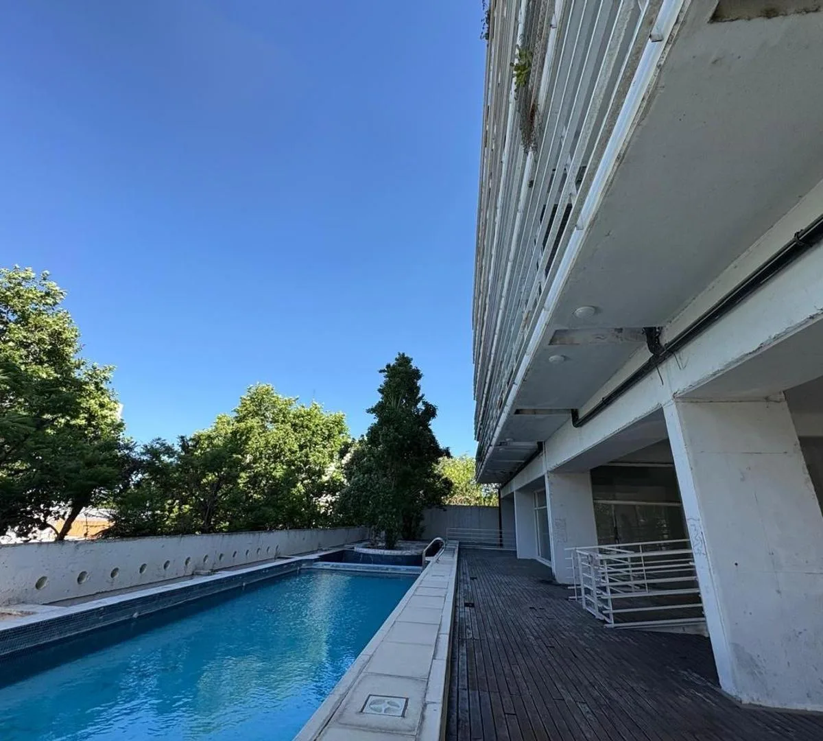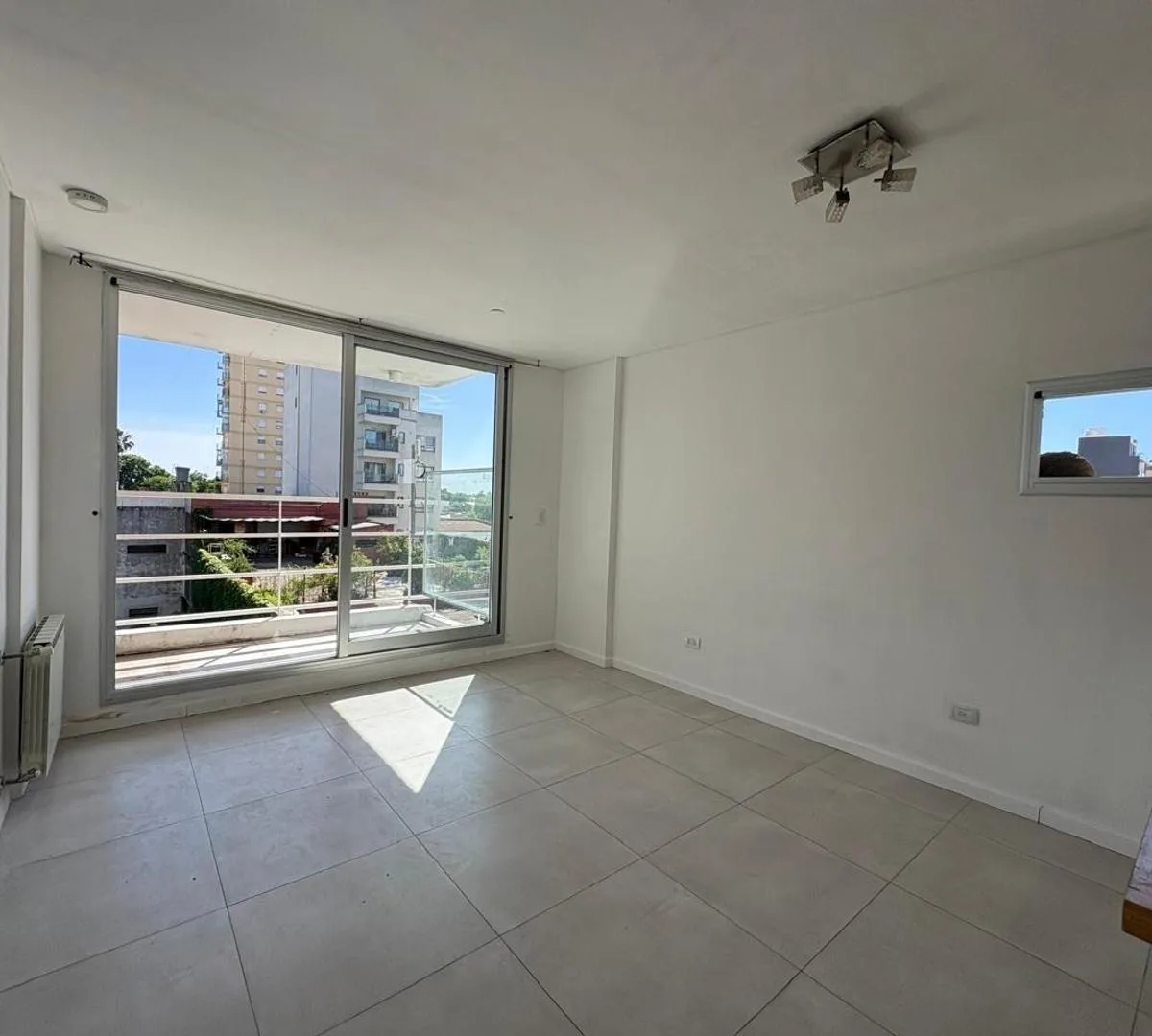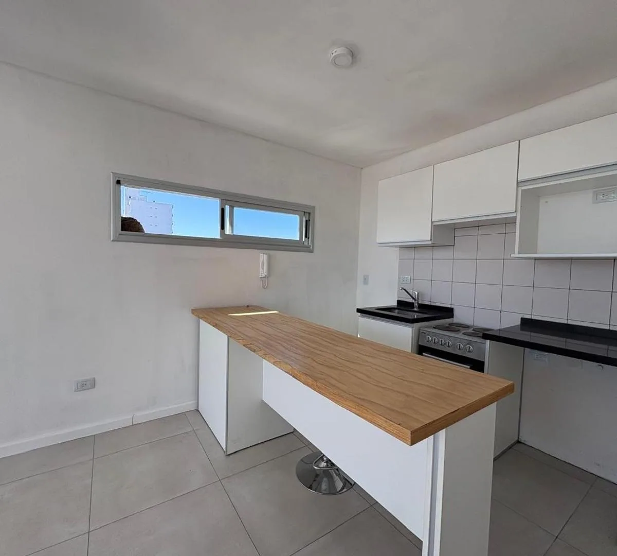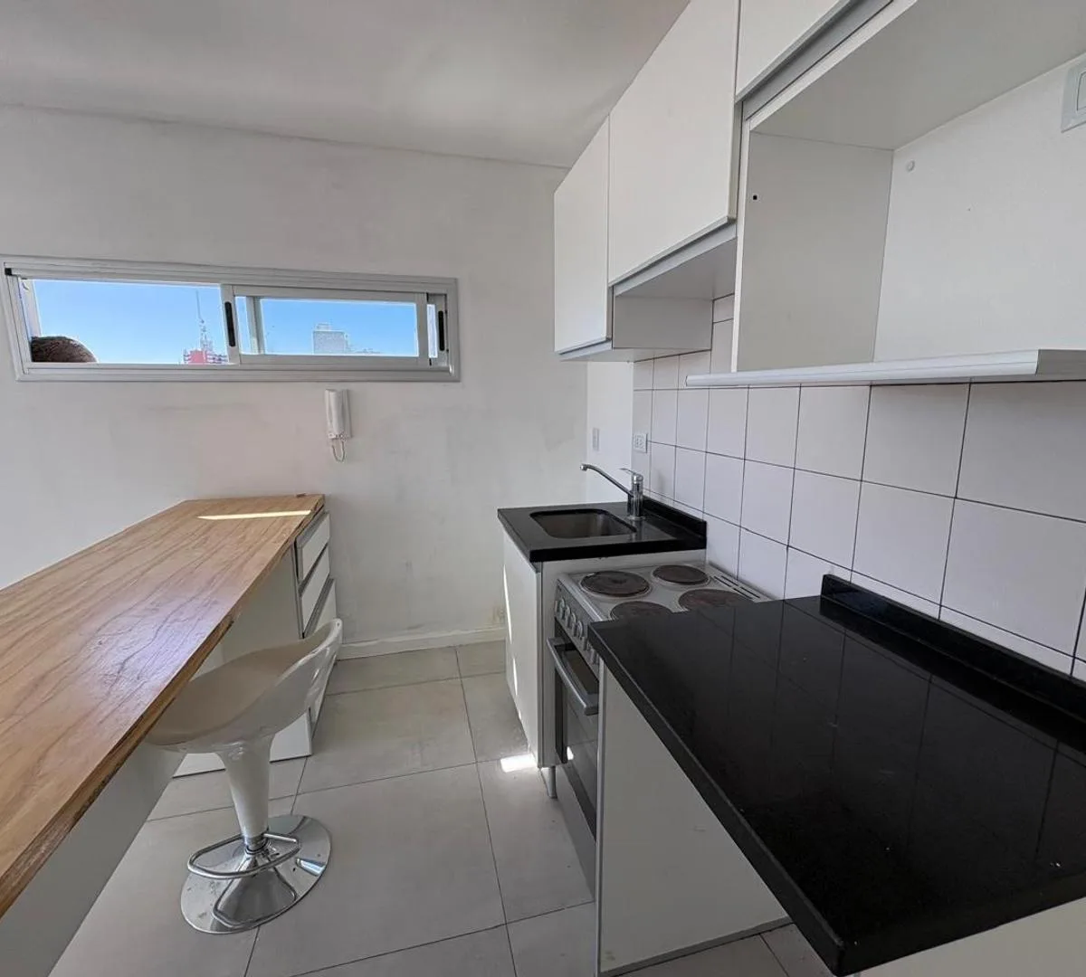 Studio apartment for rent in Zárate, in the Horizonte building. 35 m² total, courtyard-facing (contrafrente), with a main room, integrated kitchen with a breakfast bar, a full bathroom, and access to a balcony. Electric service, with heating via radiators. Building amenities include a pool, gym, laundry, sauna, rooftop terrace, communal room (SUM) and a covered grill area, with availability from 04 May 2026.