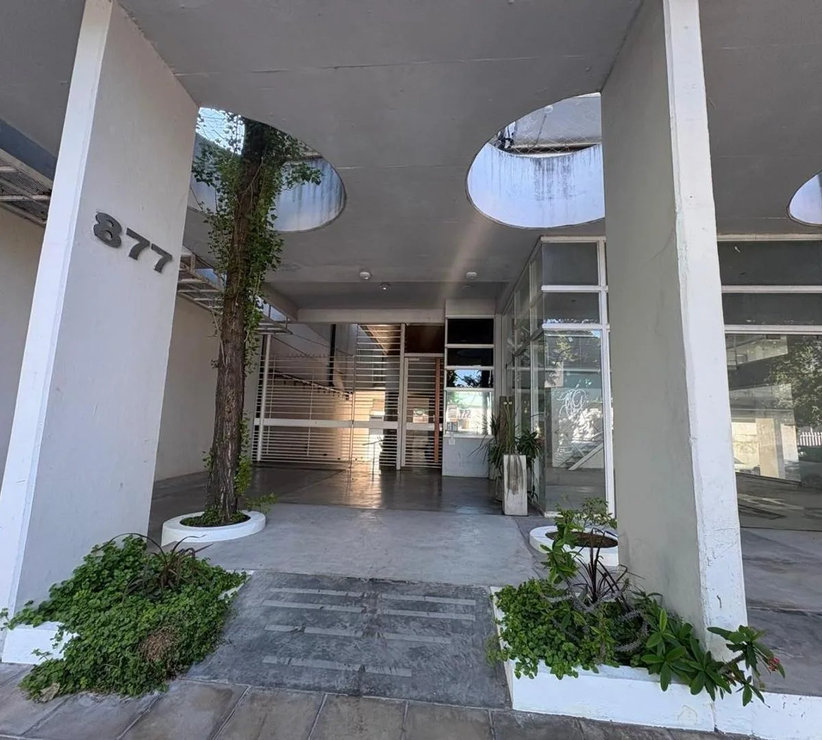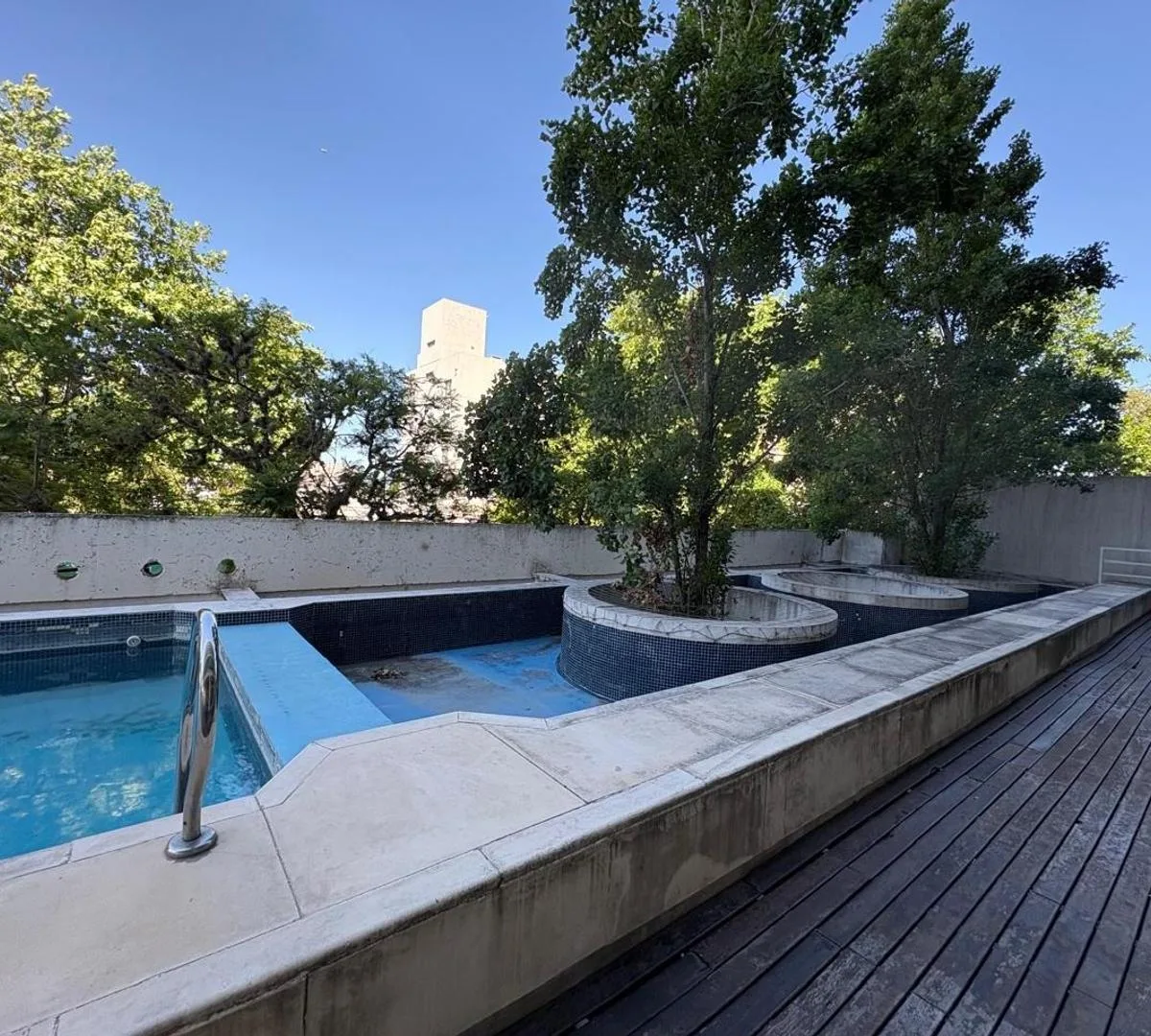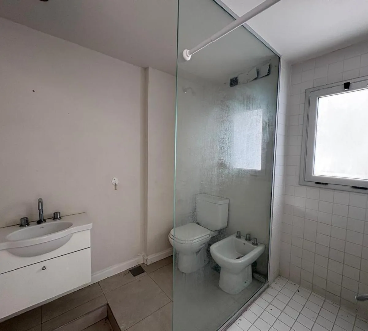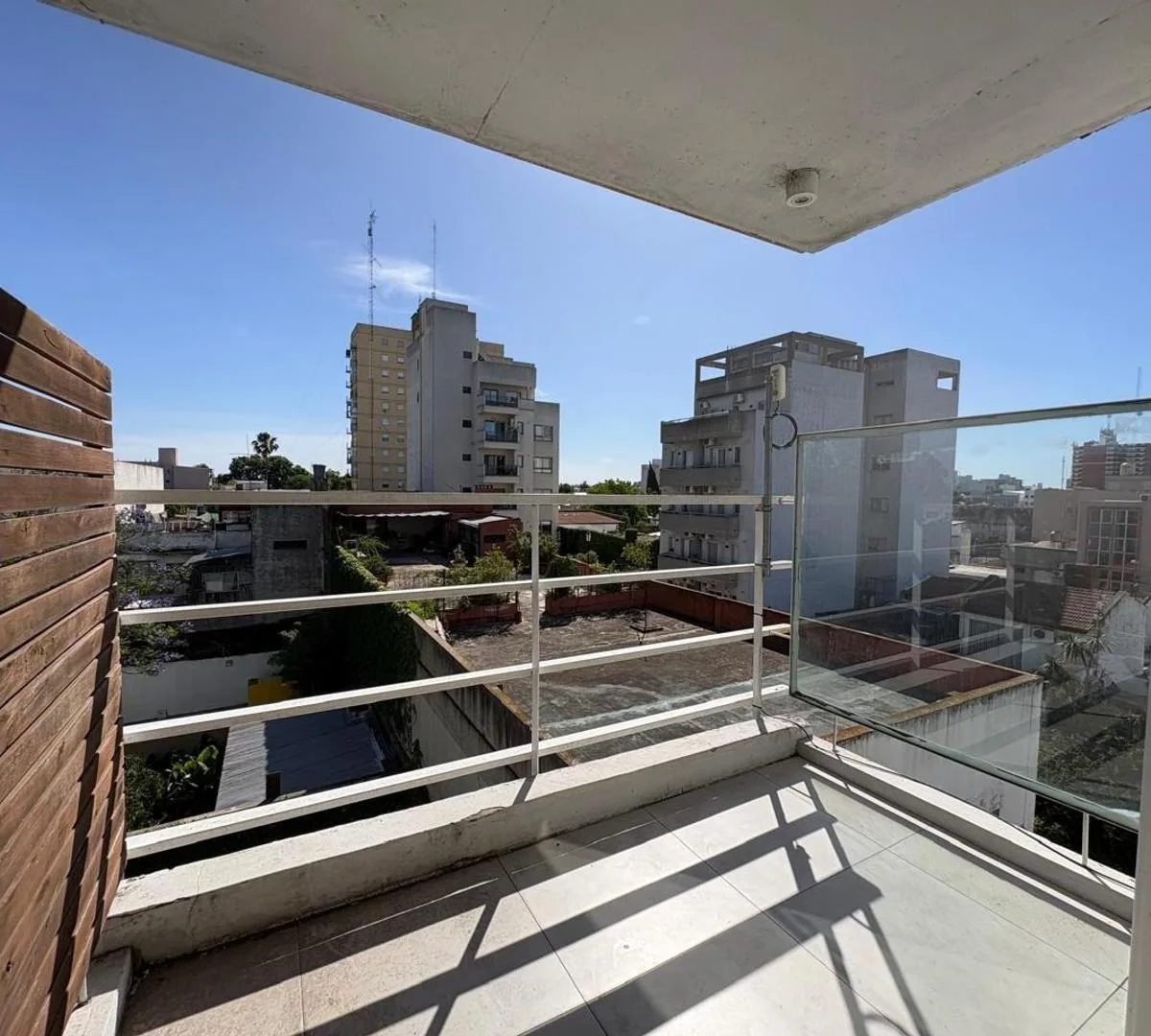 Studio apartment for rent in Zárate, in the Horizonte building. 35 m² total, courtyard-facing (contrafrente), with a main room, integrated kitchen with a breakfast bar, a full bathroom, and access to a balcony. Electric service, with heating via radiators. Building amenities include a pool, gym, laundry, sauna, rooftop terrace, communal room (SUM) and a covered grill area, with availability from 04 May 2026.