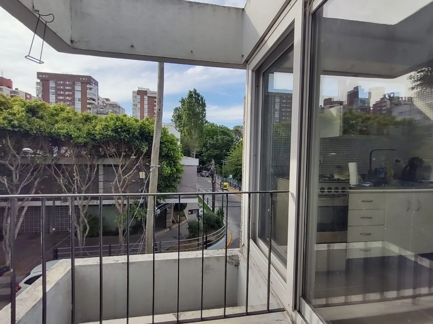 Apartamento de dois ambientes para aluguel em Acassuso, com varanda e terraço. Possui sala de estar e jantar com saída para a varanda, cozinha com armários superiores e inferiores, quarto com ar-condicionado frio/quente e um ambiente para escritório anterior ao quarto, além de banheiro completo. O apartamento tem orientação norte, janelas de PVC com vidro duplo e ar-condicionado no living e no dormitório. Está sem mobília e ocupa dois pisos por escada; o imóvel não dispõe de acessibilidade para