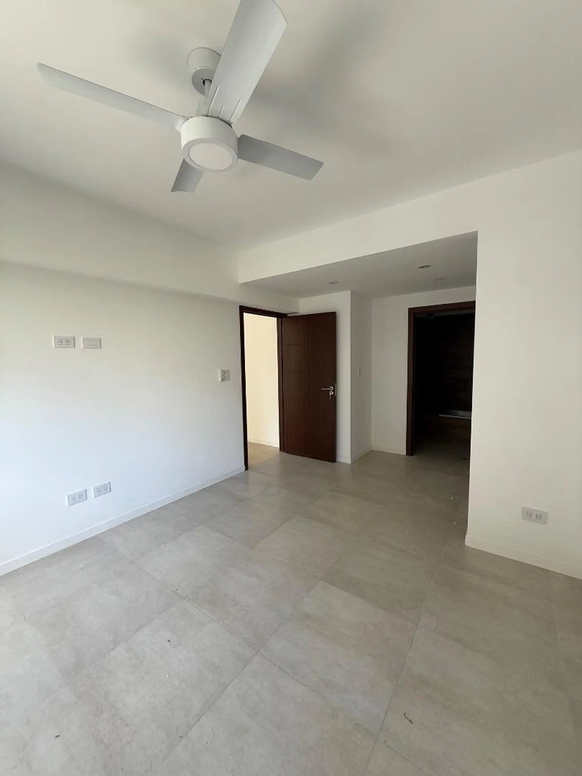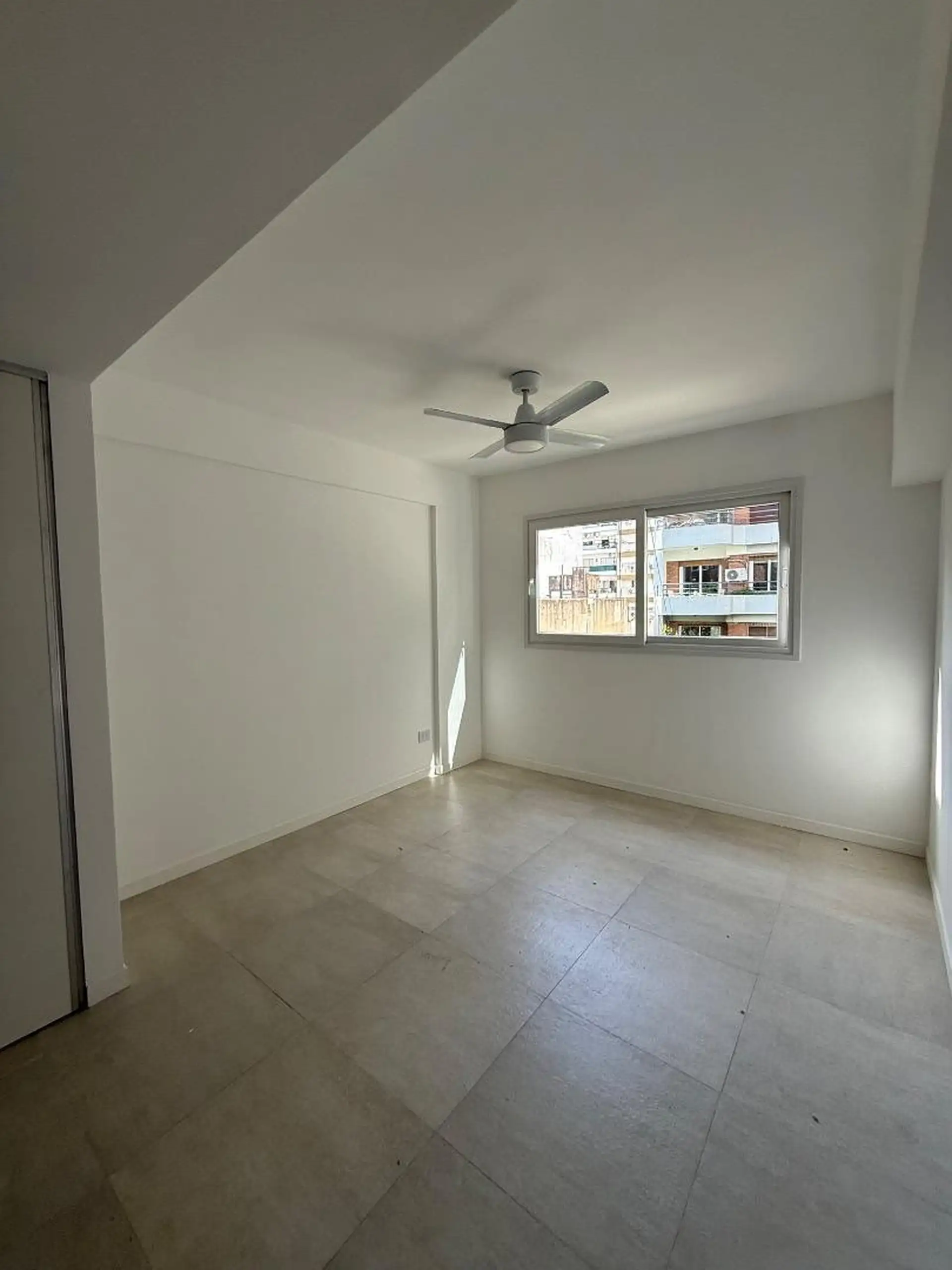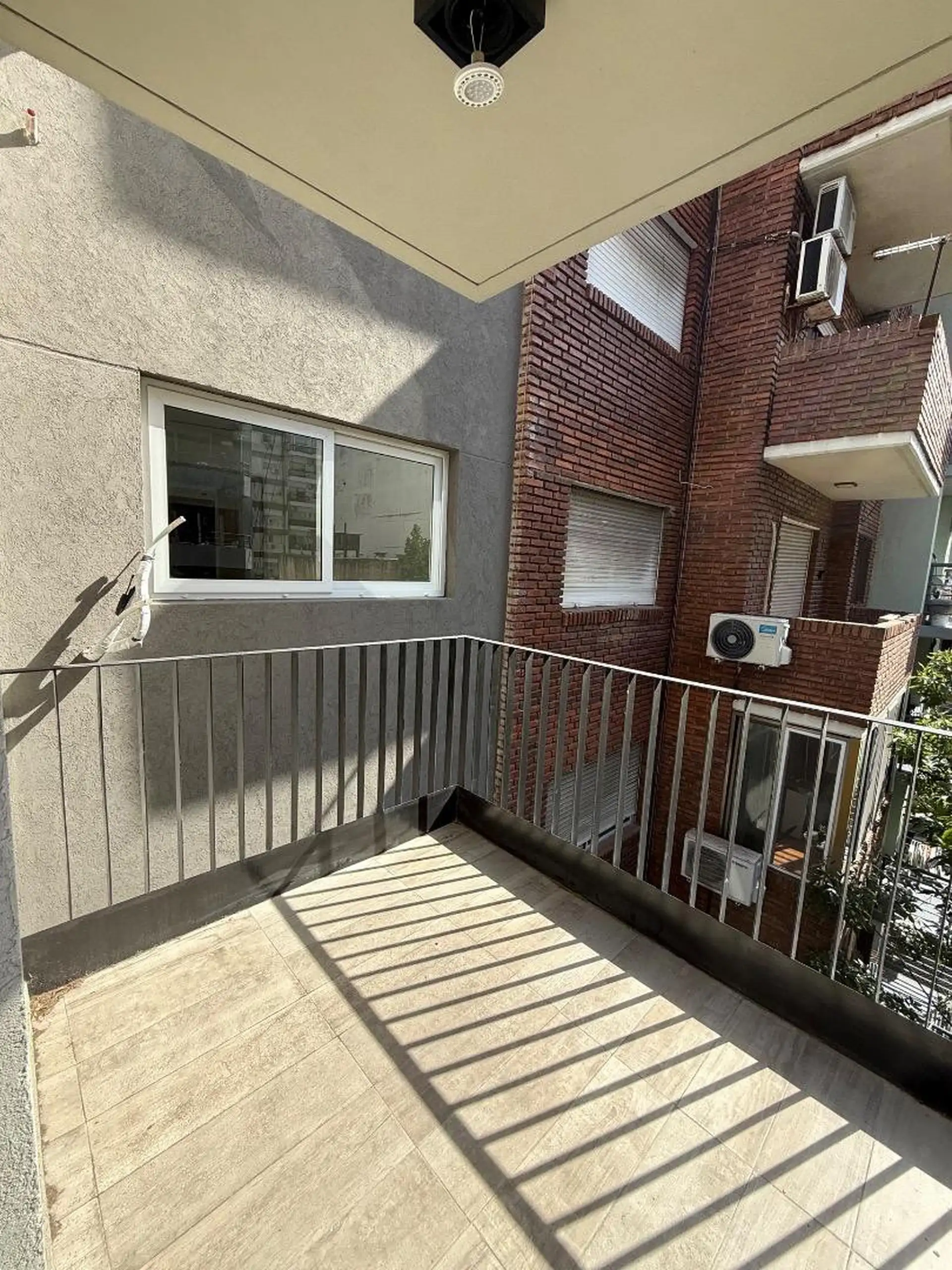 Apartamento de dois ambientes novo, de frente para a rua, no 4º andar, em Almagro Norte, com 58 m² cobertos e 68 m² totais. Inclui varanda em L na frente, sala de estar e jantar com saída para a varanda, cozinha integrada, 1 dormitório em suíte com banheiro completo e lavabo. Possui ar-condicionado na sala e ventilador de teto no dormitório.