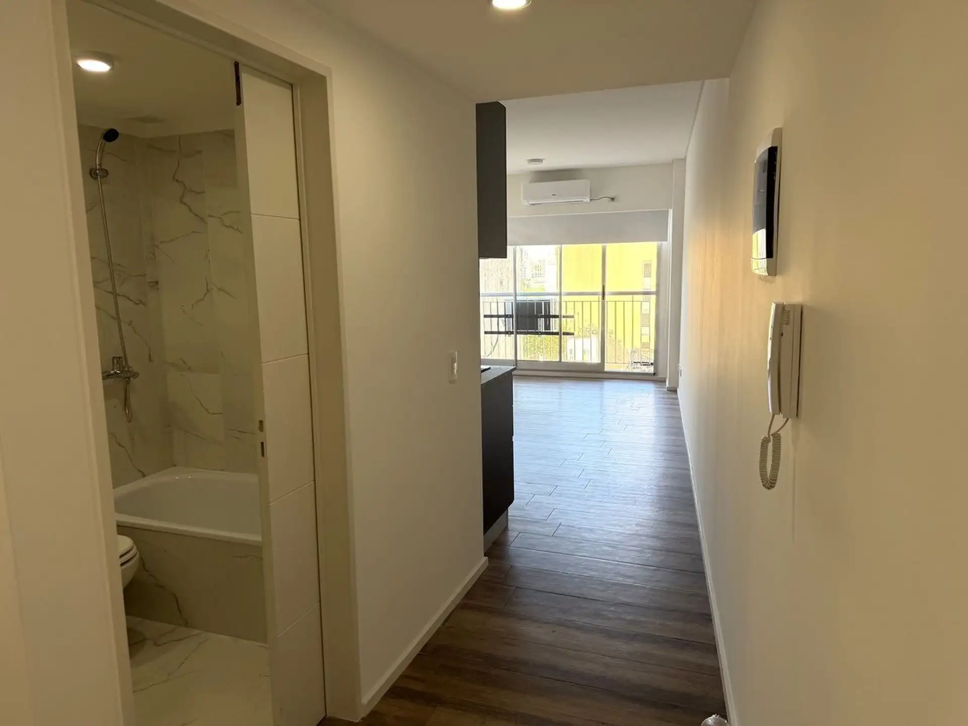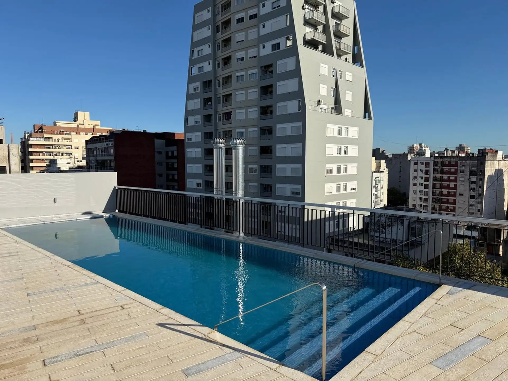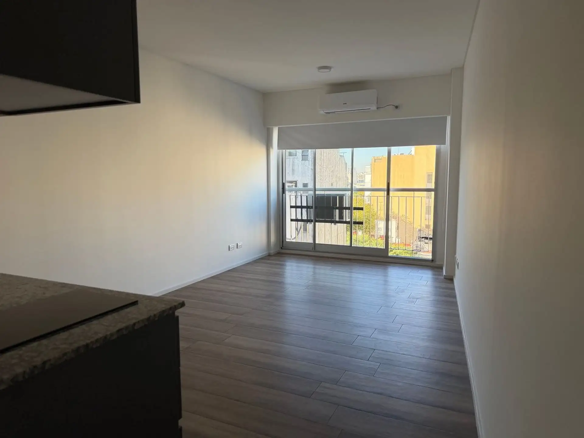 Kitnet novo com 1 ambiente em Almagro, no 8º andar, voltado para os fundos, com janelas amplas. Unidade totalmente elétrica com fogão de apoio elétrico (anafe), ar-condicionado instalado, aquecimento por piso radiante (losa radiante) e cortinas roller, com luminárias incluídas. O edifício tem piscina no último piso com vista aberta, solário, academia, lavanderia e salão de festas amplo com área de churrasco e cozinha completa, além de espaço para guardar bicicletas. Contrato de locação de 24 mes
