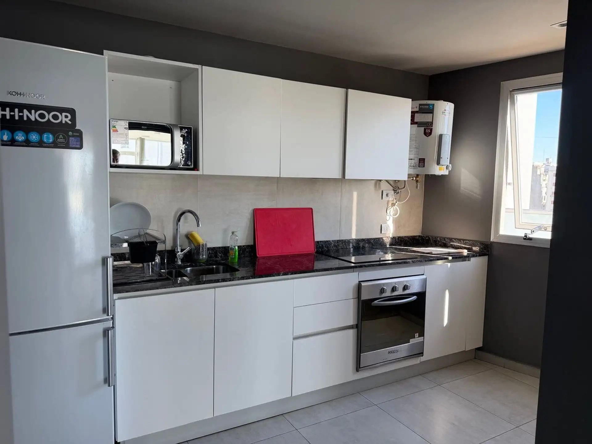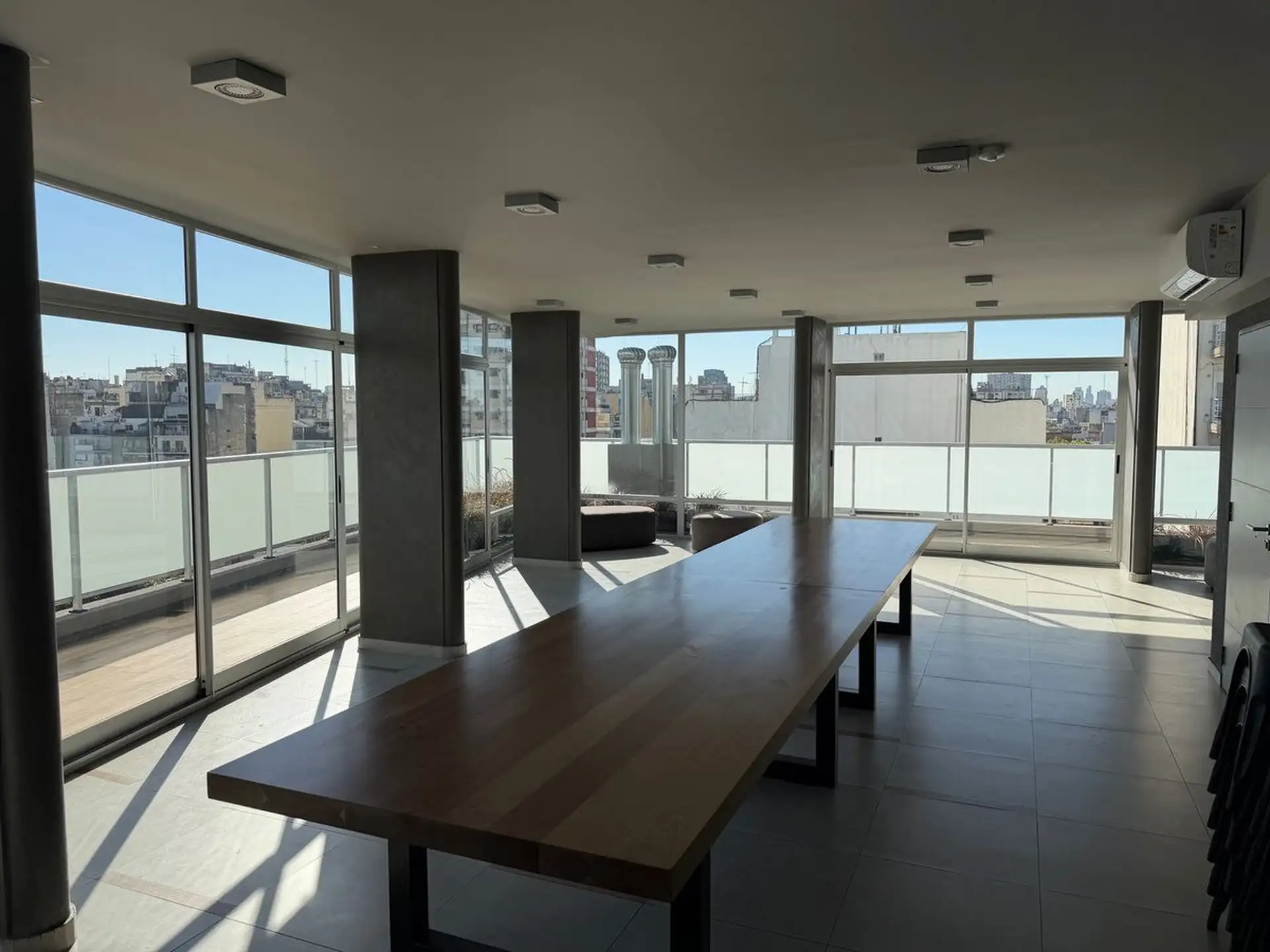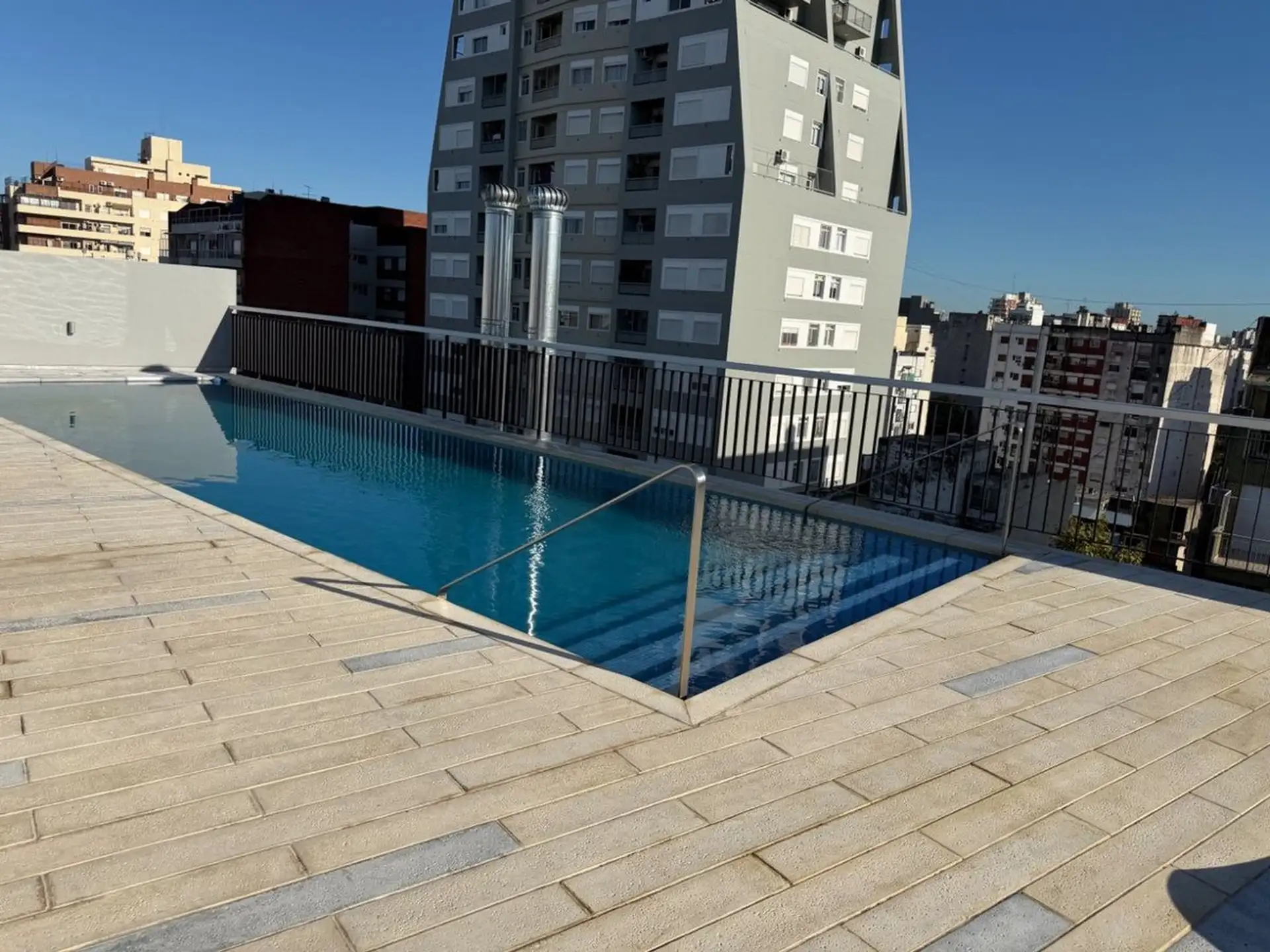 Kitnet novo com 1 ambiente em Almagro, no 8º andar, voltado para os fundos, com janelas amplas. Unidade totalmente elétrica com fogão de apoio elétrico (anafe), ar-condicionado instalado, aquecimento por piso radiante (losa radiante) e cortinas roller, com luminárias incluídas. O edifício tem piscina no último piso com vista aberta, solário, academia, lavanderia e salão de festas amplo com área de churrasco e cozinha completa, além de espaço para guardar bicicletas. Contrato de locação de 24 mes