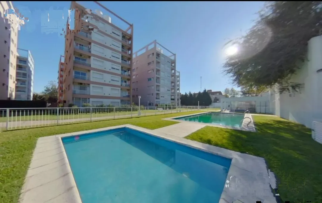 Apartamento no primeiro andar, com elevador, 1 quarto, banheiro completo, cozinha, sala de jantar e living. Varanda com vista para a piscina e o parque. O condomínio fechado Pinar de Wilde tem segurança monitorada e gravação 24 horas, com área externa que inclui 2 piscinas (uma para adultos e outra para crianças), solário, área de churrasco, salão comunitário fechado, praça interna com jogos infantis, campo de futebol e trilhas para caminhada. O aluguel anunciado é de ARS 600.000, com condomínio