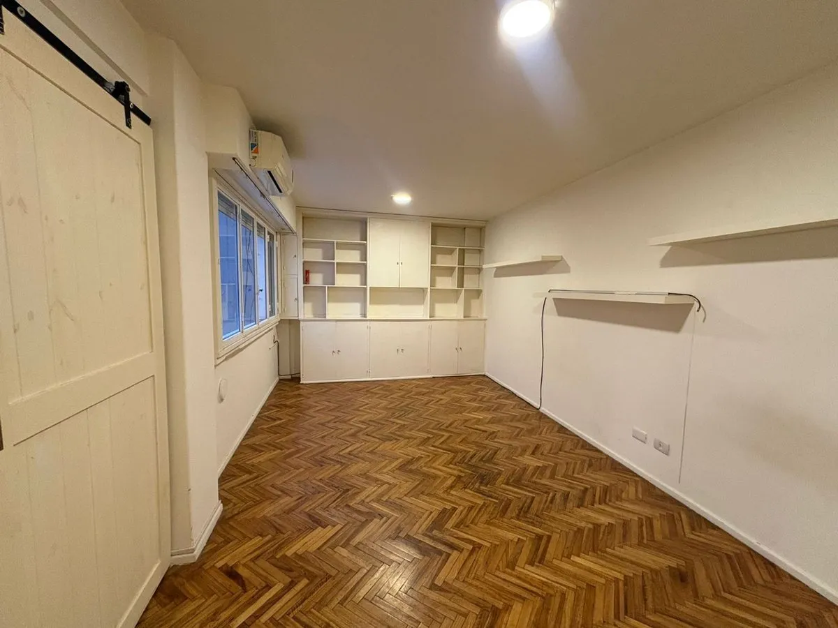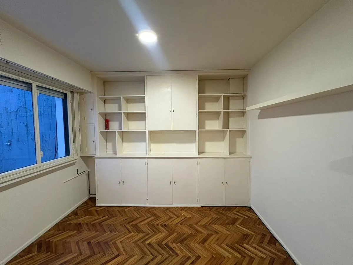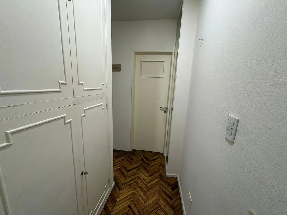 Kitnet de 1 ambiente para aluguel em Balvanera, com 33 m² no 2º andar de um prédio com elevador. A unidade fica na Calle Viamonte e tem ambiente integrado com área de dormir e estar. O imóvel não tem gás; os aparelhos são elétricos, incluindo fogão/anafe, aquecedor de água (termotanque) e forno, além de banheiro completo. Condições de locação: 1 mês de adiantamento, 1 mês de depósito, seguro-fiança (a consultar) e reajuste trimestral pelo IPC, com prazo de 24 meses.