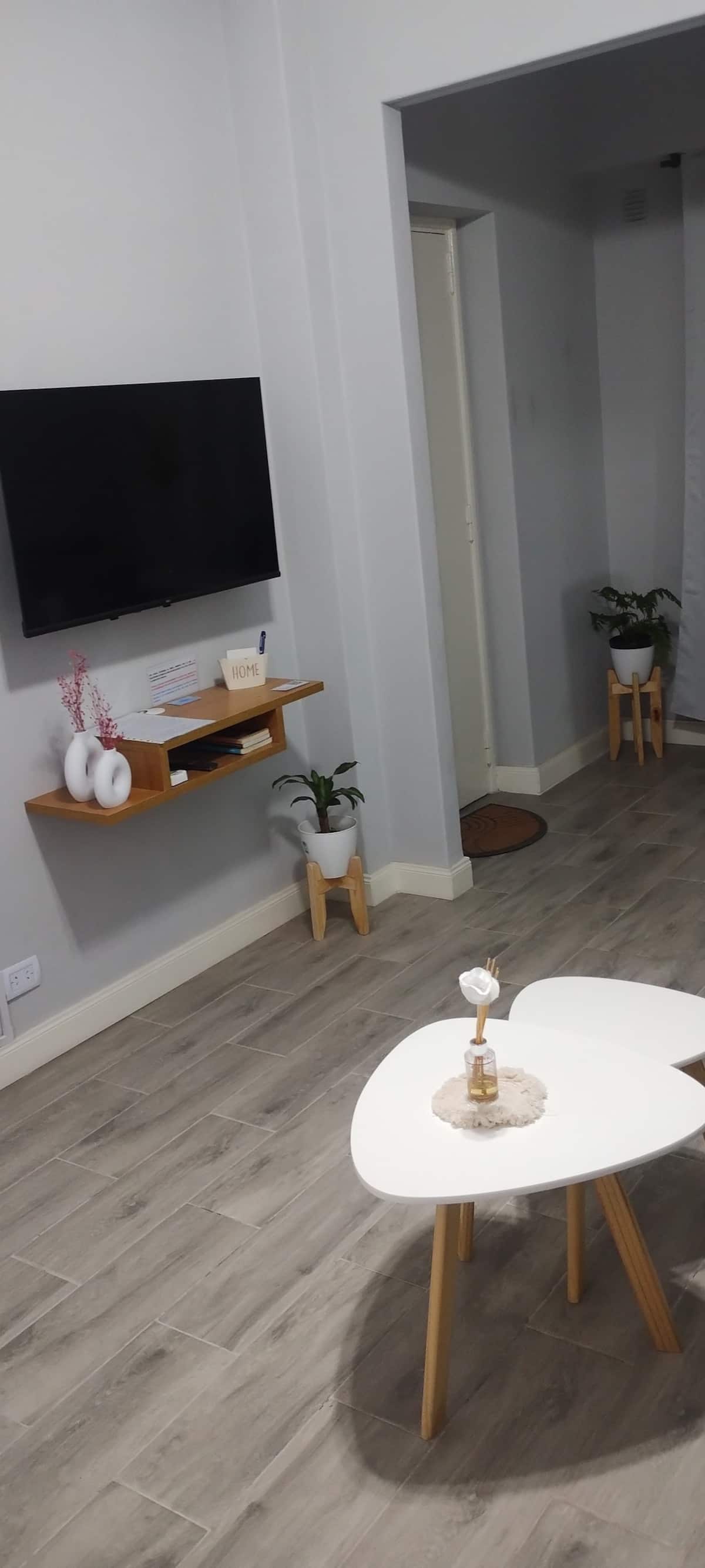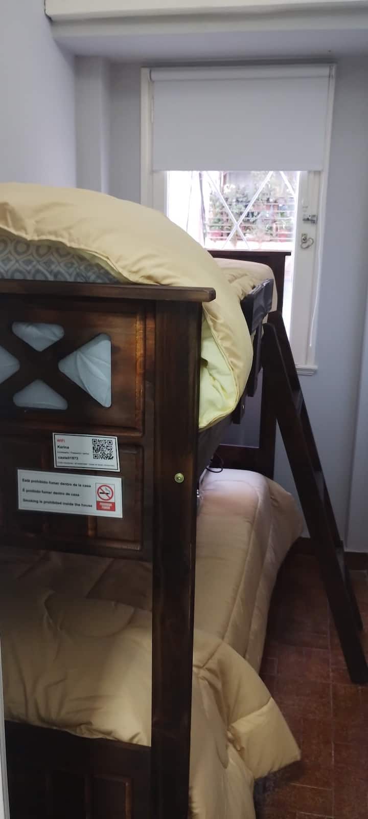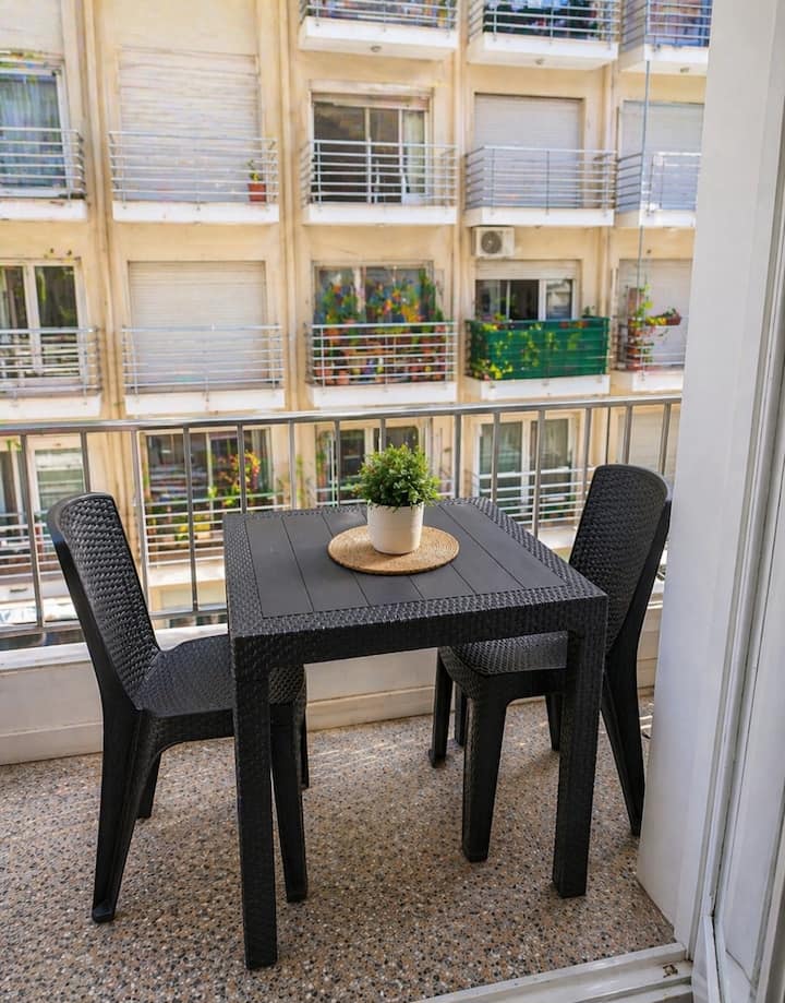Apartamento em Balvanera no 3º andar, reformado, com iluminação natural. Quarto com cama queen e armário, além de banheiro completo com água quente e fria potável, banheira com chuveiro, sanitário e bidê, e máquina de lavar. Cozinha com chaleira elétrica, torradeira, micro-ondas, forno a gás e geladeira, com área de lavanderia acessada pela cozinha, também com máquina de lavar e varal. Wi-Fi com sinal de 300 Mb; apartamento com sala de estar e TV.